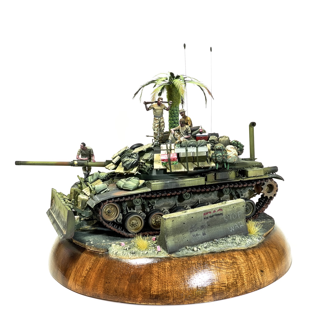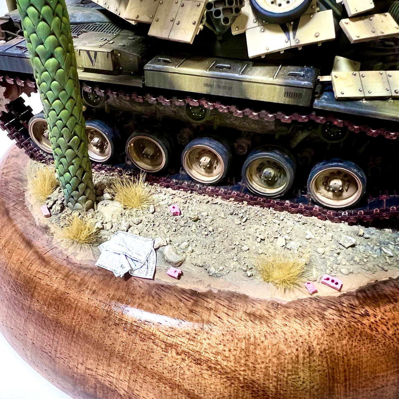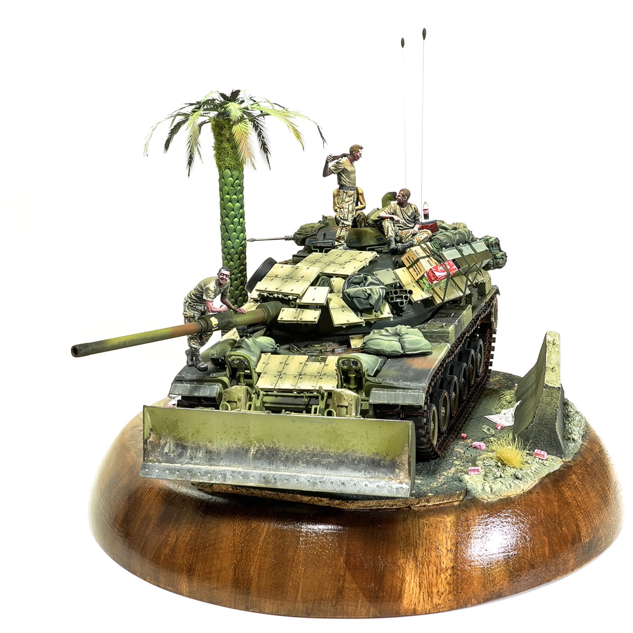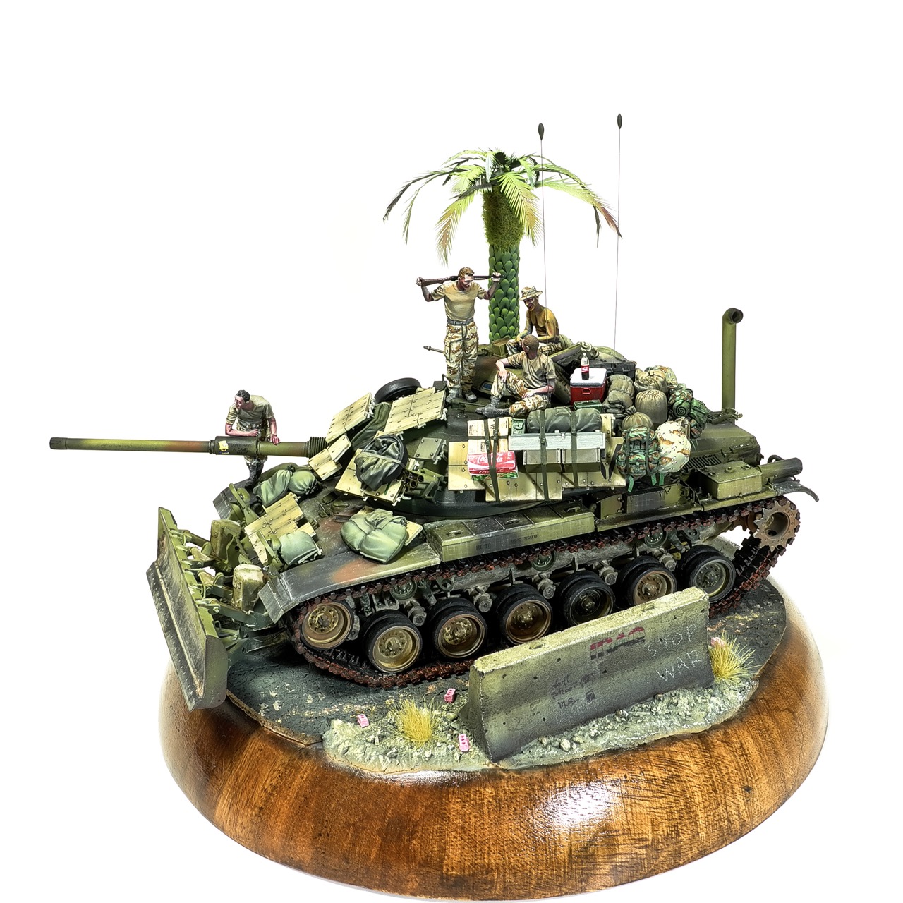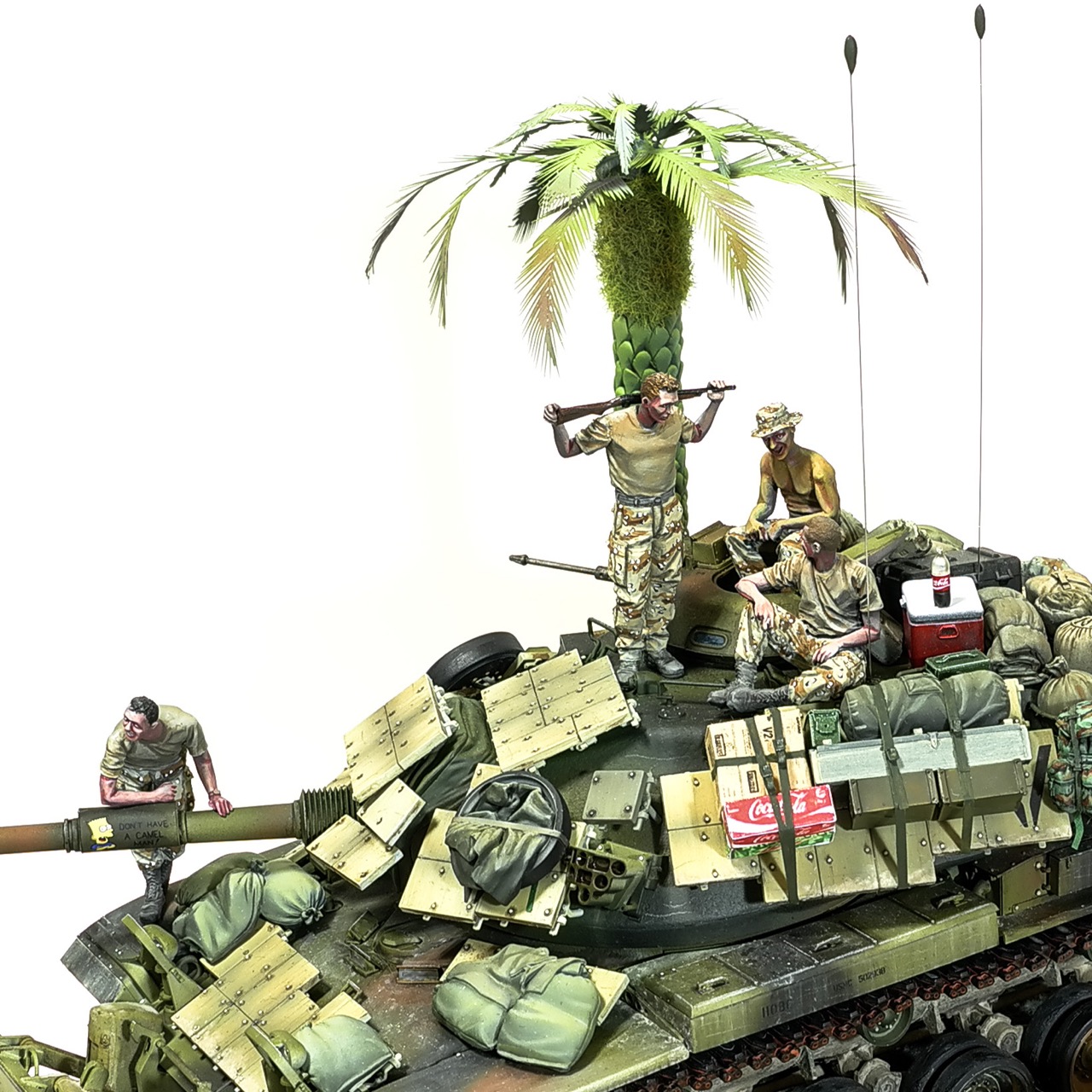 얼마전 완성한 M60A1을 이용한 1991년 걸프전 비넷입니다. Takom사의 제품에 Bravo6사의 인형들을 올렸습니다. 야자수 기둥은 스컬피를 이용해서 만든 후에 에칭 야자수잎을 붙여주었습니다.