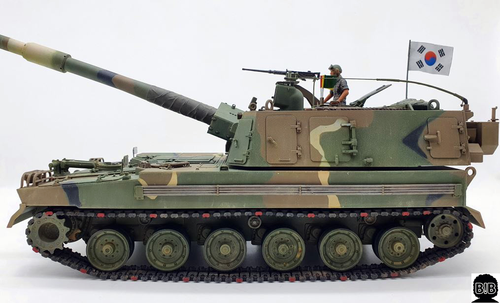 아카데미 K9에 먼저 발매된 B사의 컨버전킷,포신,안테나,궤도 그리고 M사의 .50용 탄통 마운트를 적용했습니다.