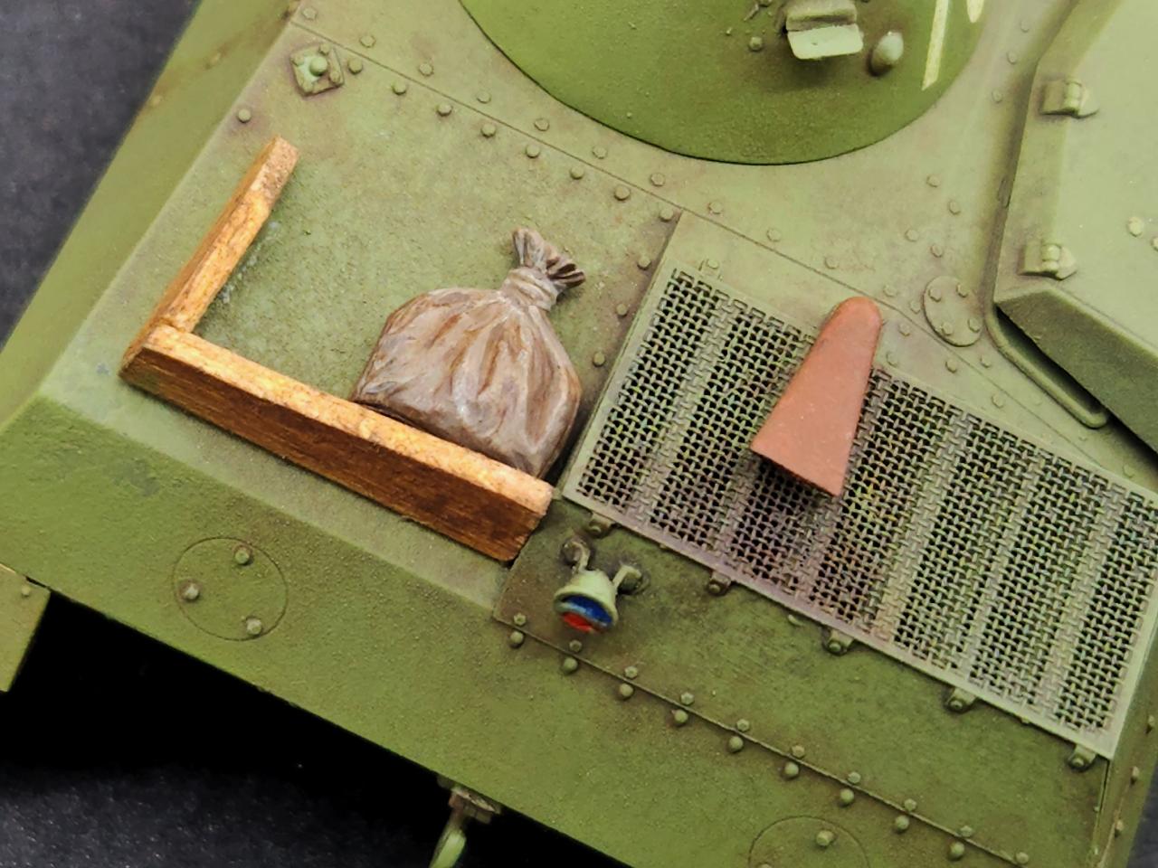 이번에는 특별히 차체 후부 상체 부분이 너무 썰렁하여~~~ 발사나무로 적재함을 자작해보았습니다. 그 안에 소련군인의 기본장구인 소련배낭(?)을 배치해보았습니다.