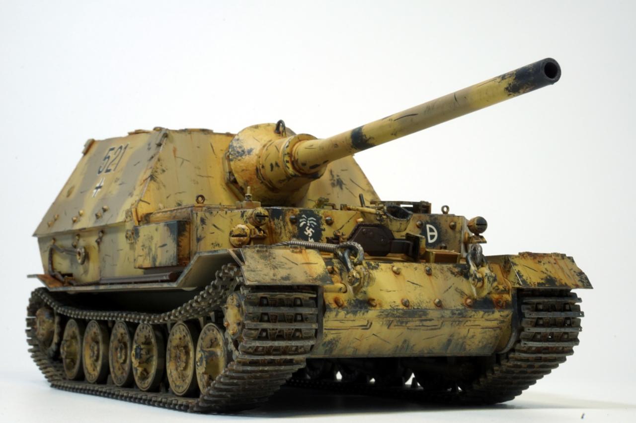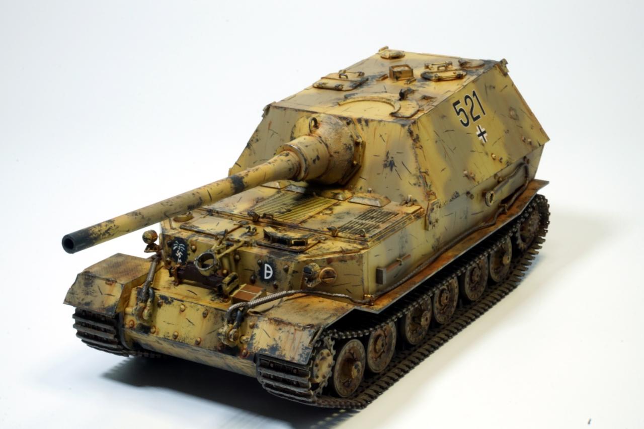 처음부터 아프리카군단 소속을 상정하고 제작하지는 않았습니다. 거대한 차체에 비해 주포가 너무 가냘퍼 보여 야크트티거의 12.8cm짜리 주포로 교체한 것이 화근이었습니다.