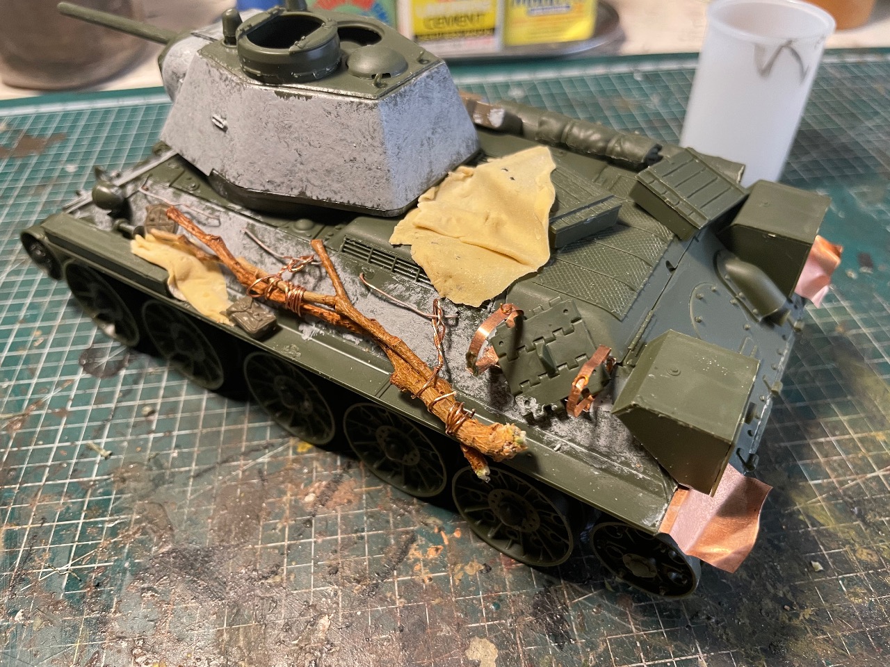 앞쪽 펜더는 잘라내고 전면,옆면,포탑에 퍼티와 무수지로 질감 표현을 했고 에폭시 퍼티로 방수포도 만들었습니다