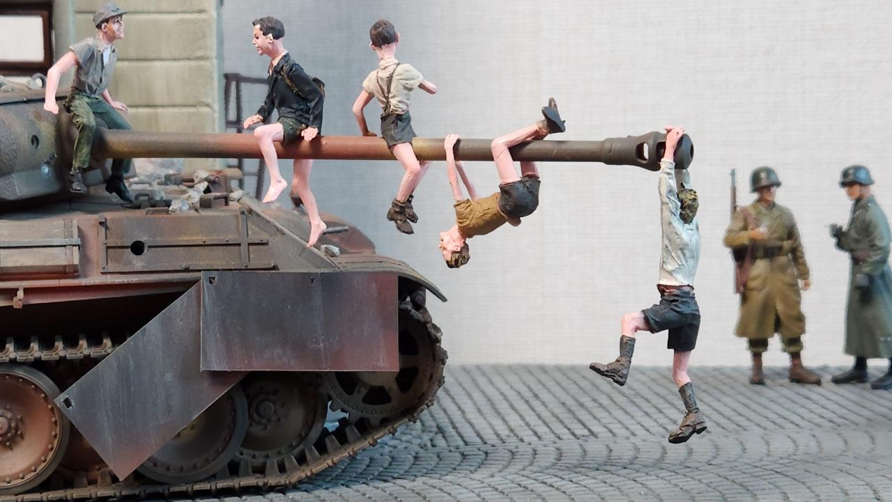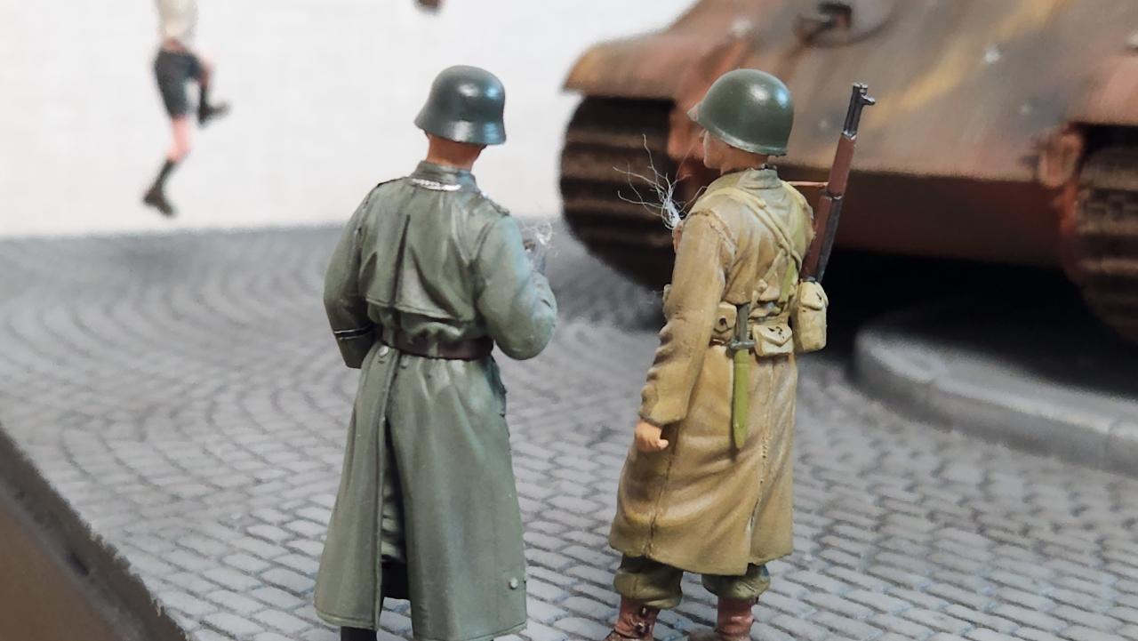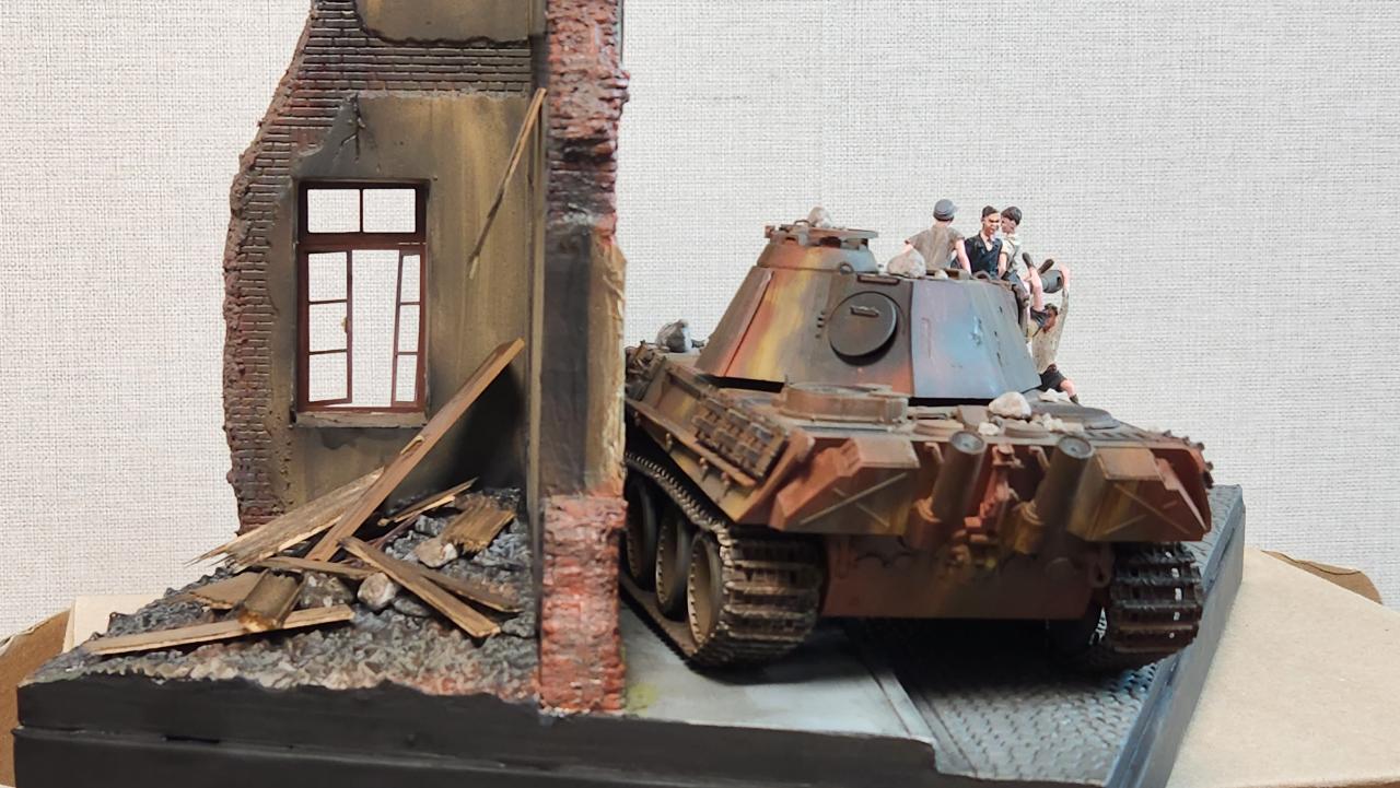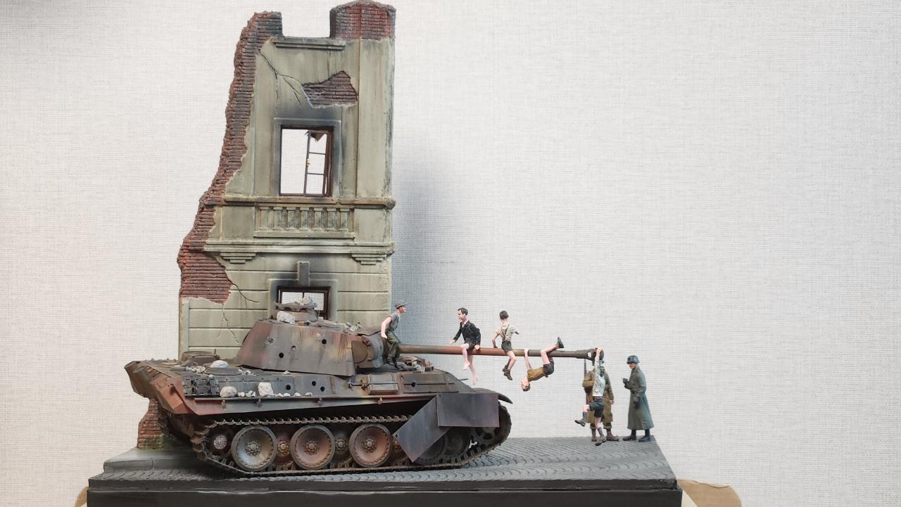 처음 만들땐 이 디오라마를 상정한게 아니라서...ㅠ.ㅠ 피탄자국이 소련군과 교전처럼 생겼네요...