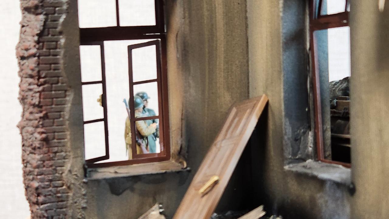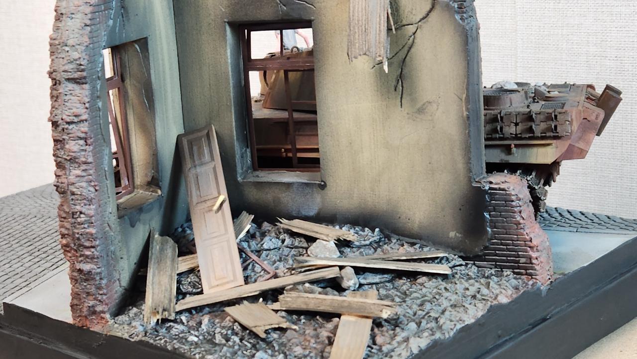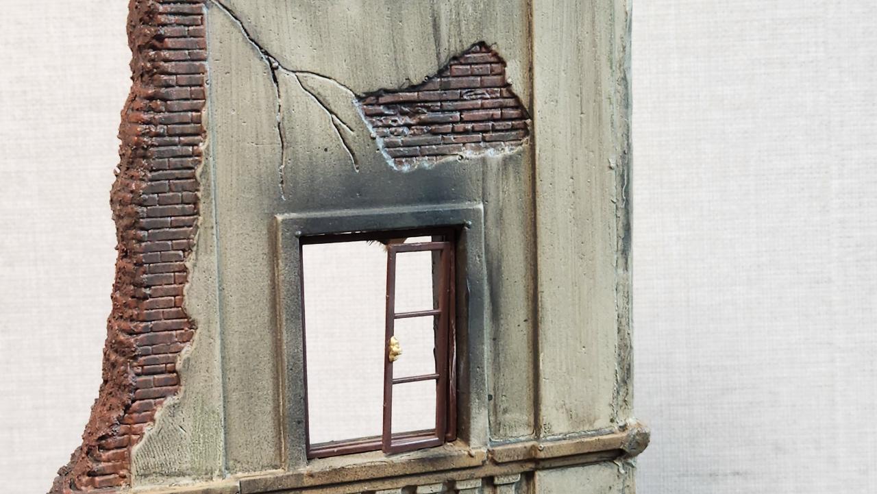 폭격에 의해 부서지고 불탄 느낌을 주기위해서 그을음을 많이 내주고 워싱으로 색을 많이 눌렀습니다...