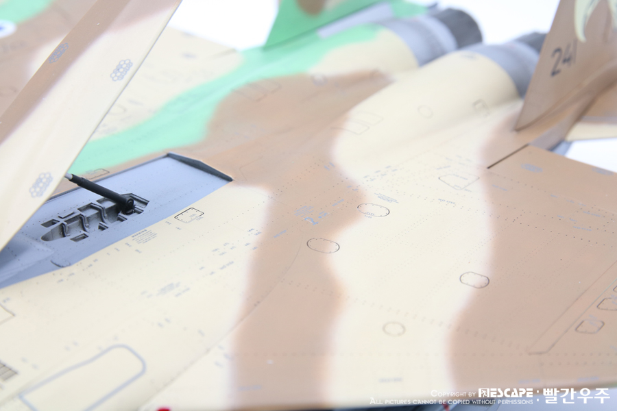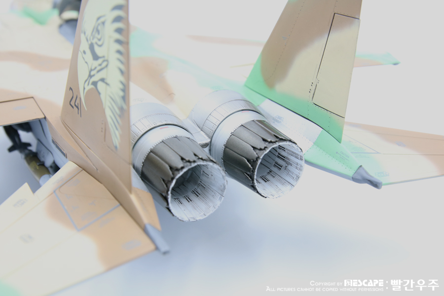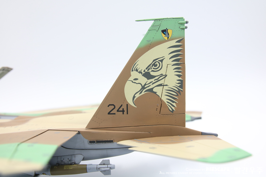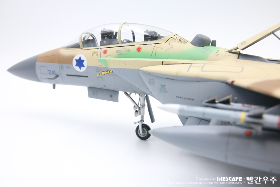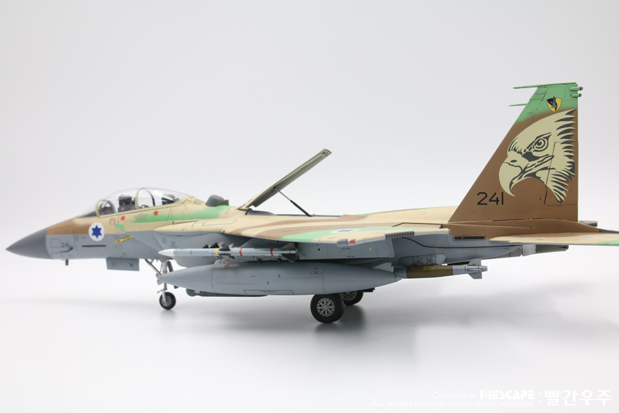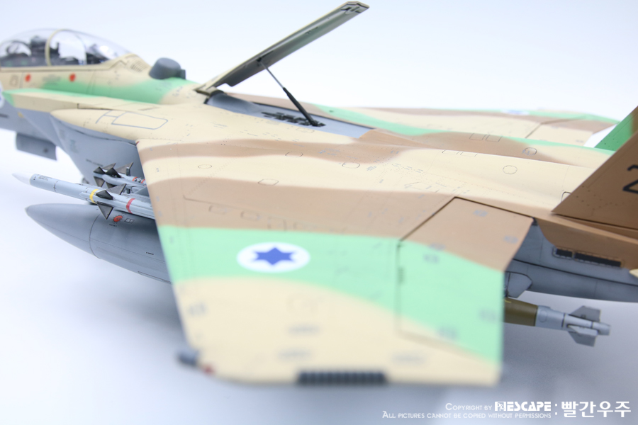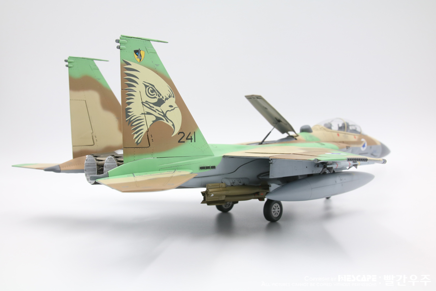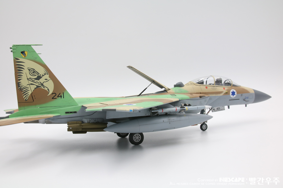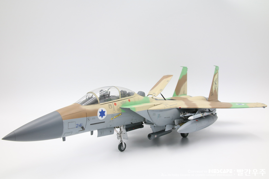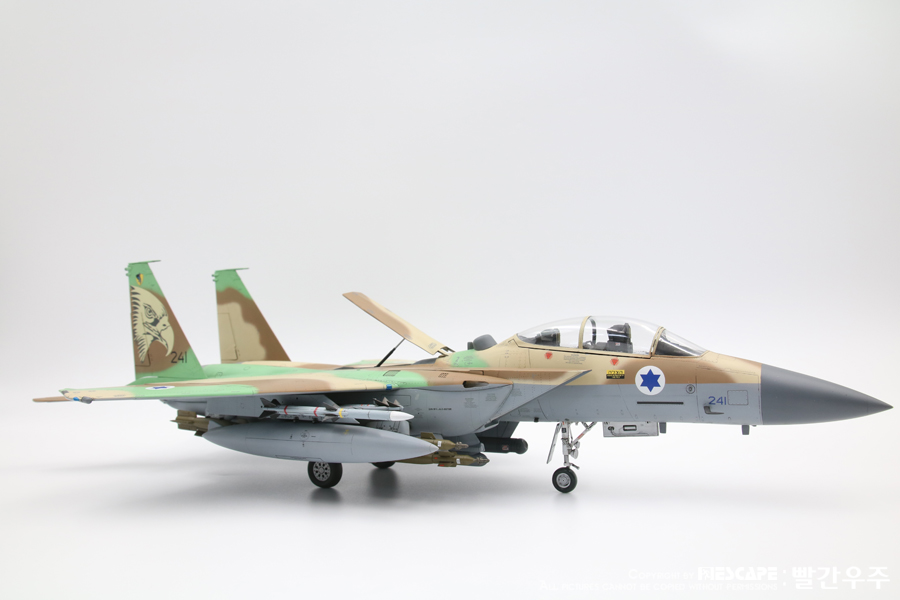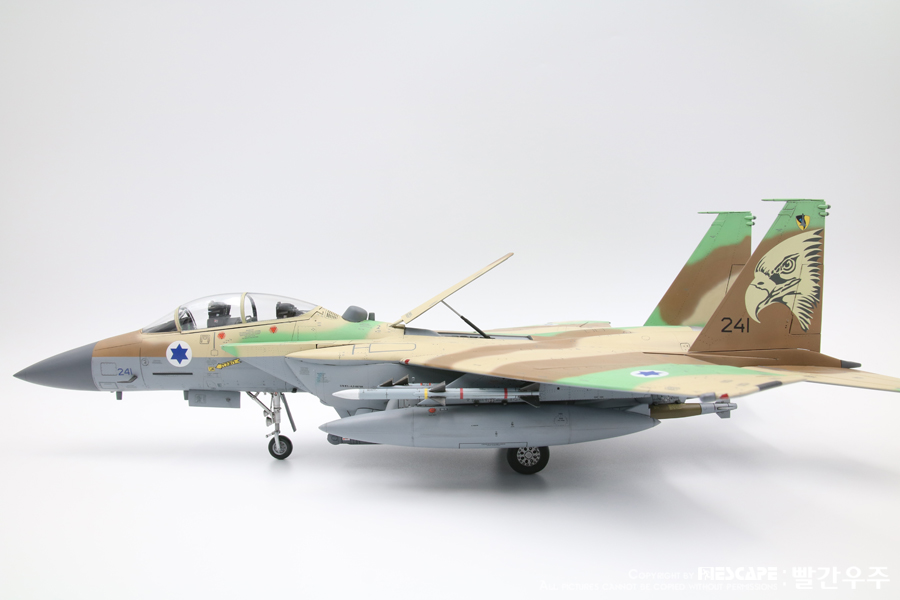 안녕하세요. 이스케이프 소속으로 활동하고 있는 빨간우주라고 합니다. 이번에 GWH사의 F-15I 를 제작하게 되어 사진을 올립니다. 제작하는데 큰 어려움은 없었는데, 다만 위장무늬 색상을 정하는데 조금 애를 먹었습니다. 색깔 감각이 그다지 좋지를 못한 편인데, 그러다보니 초록색 색상을 조색해 보겠다고 하면서 도료를 엄청나게 소모해 버렸습니다. ㅠㅠ 그런데도 결국 만들어낸 색상 역시 그다지 맘에 들지는 않는 상태이구요. 원래 저는 제조사에서 지정해 주는 지정색으로 군말없이 도색하는 편인데, 이번에는 뭔 바람으로 조색을 한 번 해보겠다고 했다가 낭패를 보았네요. ㅎㅎ 암튼 괜찮은 손 맛에 디테일도 괜찮은 킷입니다. 국내에서는 구하기 어렵지만, 알리 같은 곳에는 지금도 재고가 충분히 있는 것 같으니 한 번 쯤 구하셔서 제작해보시는 것도 좋을 것 같습니다.
