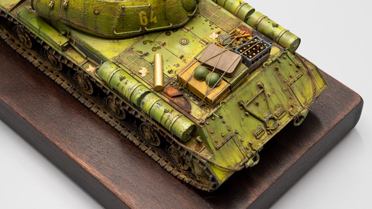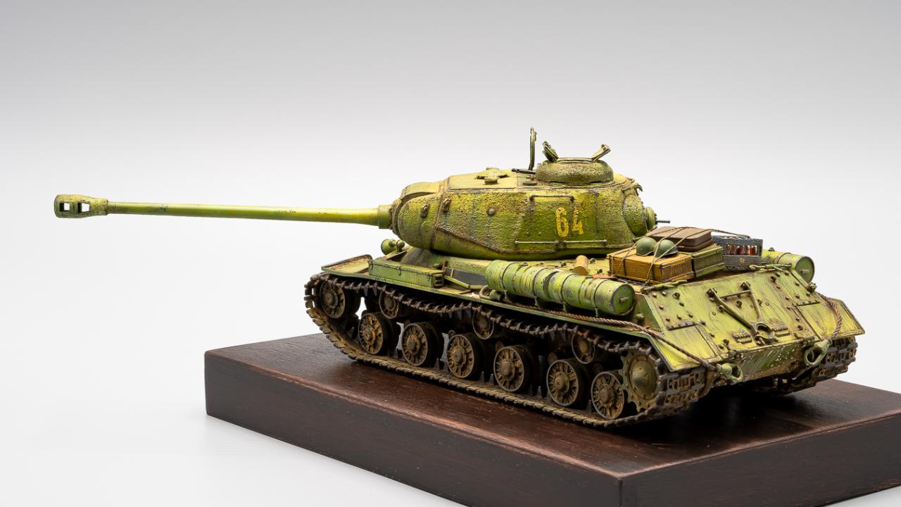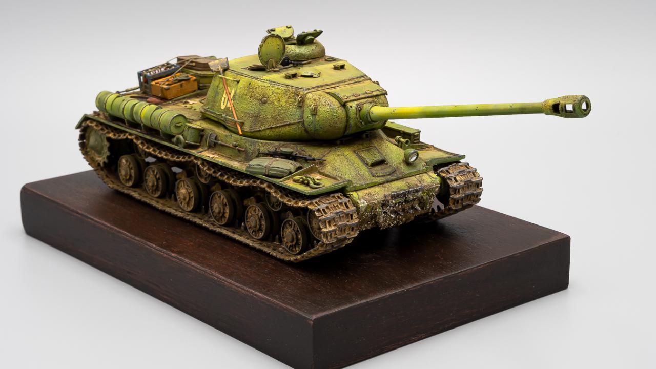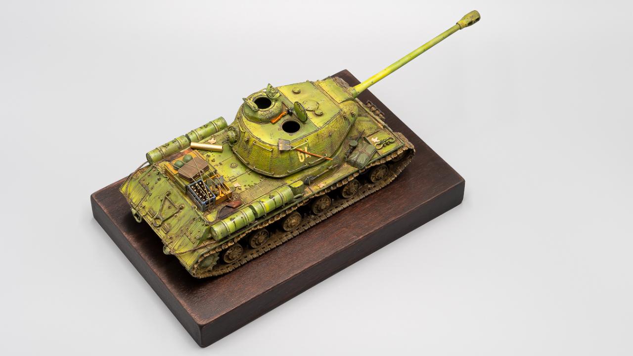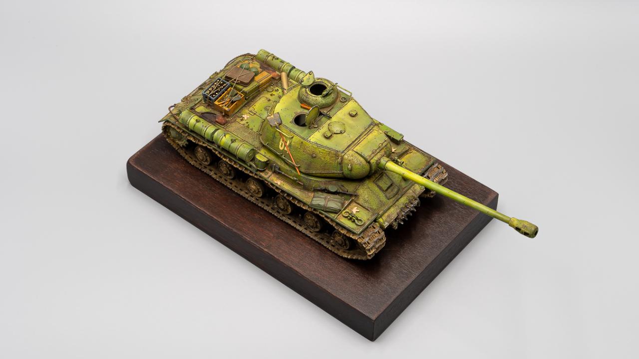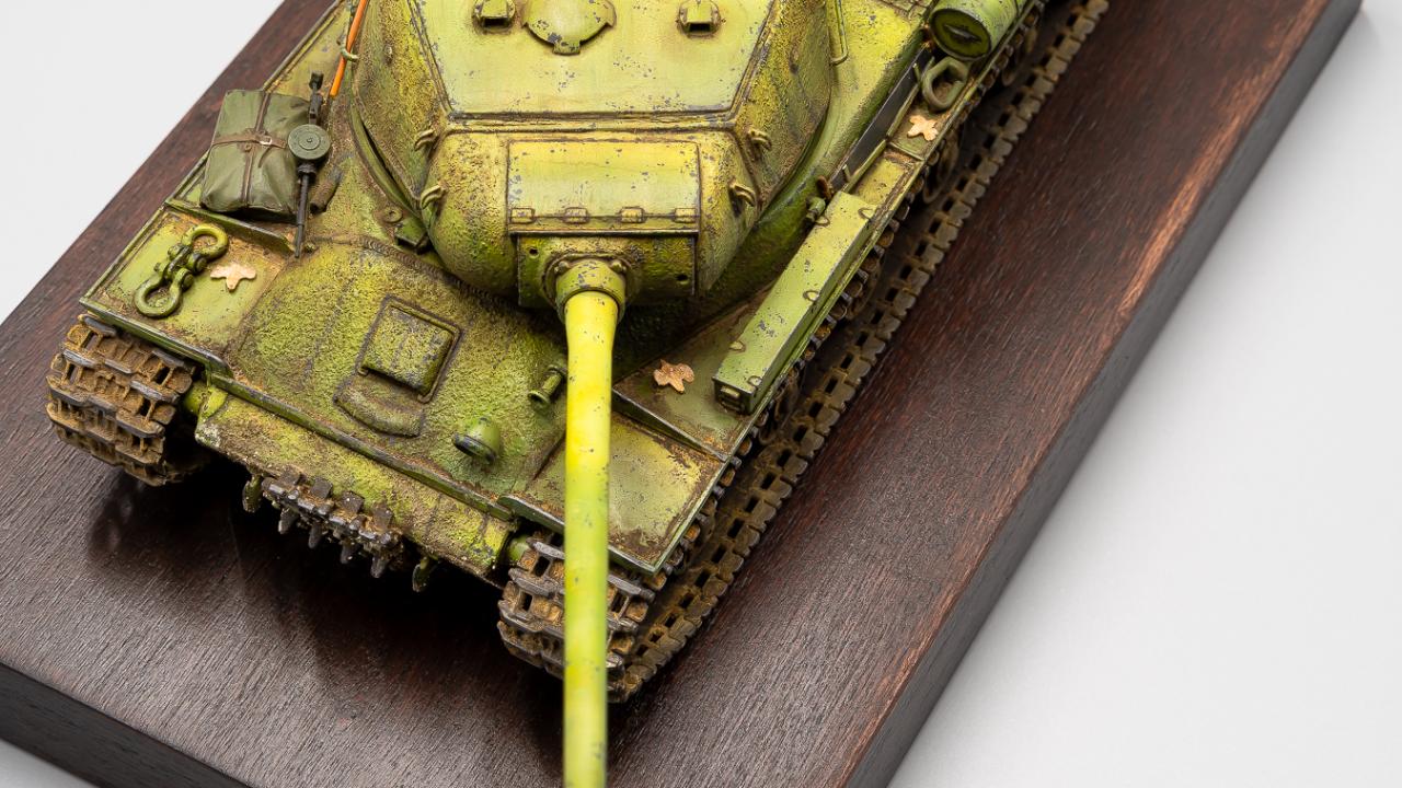 학생 때 만들다 말았던 드래곤의 구판 JS-2 단품을 다시 재도색 해본 것입니다. 다이소에 구입한 1천원짜리 오동나무 접시에 스테인을 먹여서 간단히 베이스로 삼아보았습니다.