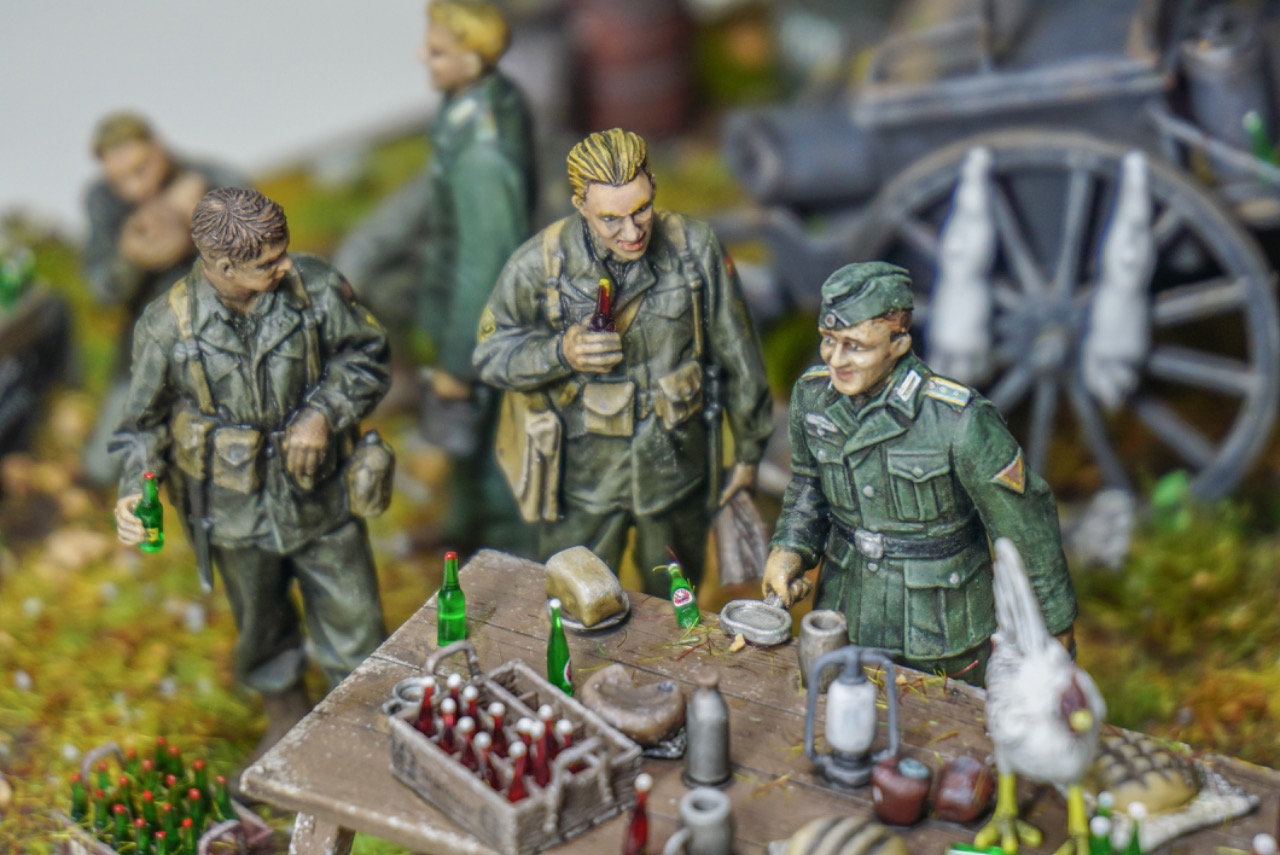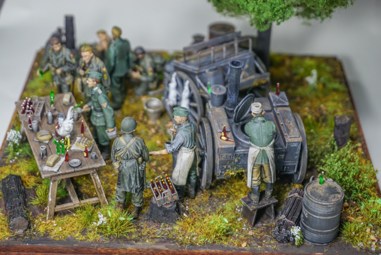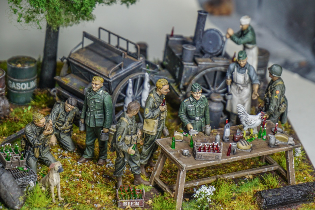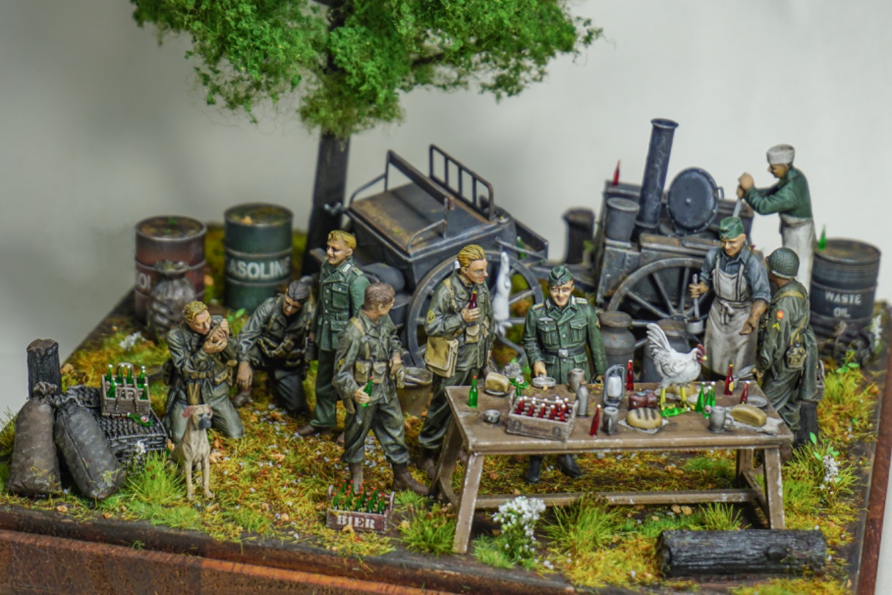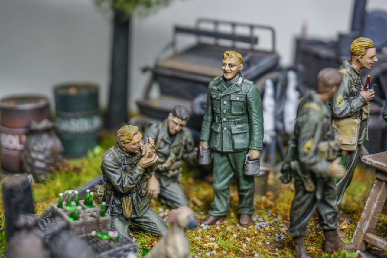 2차 세계대전 중 미군과 독일군이 서로 총을 겨누고 싸우지 않고 밥을 먹으며 평화롭게 대화를 나누는 장면을 표현해봤습니다. US Infantry Scout Set와 German Field Kitchen Scenery를 사용해 만들었습니다. 감사합니다.