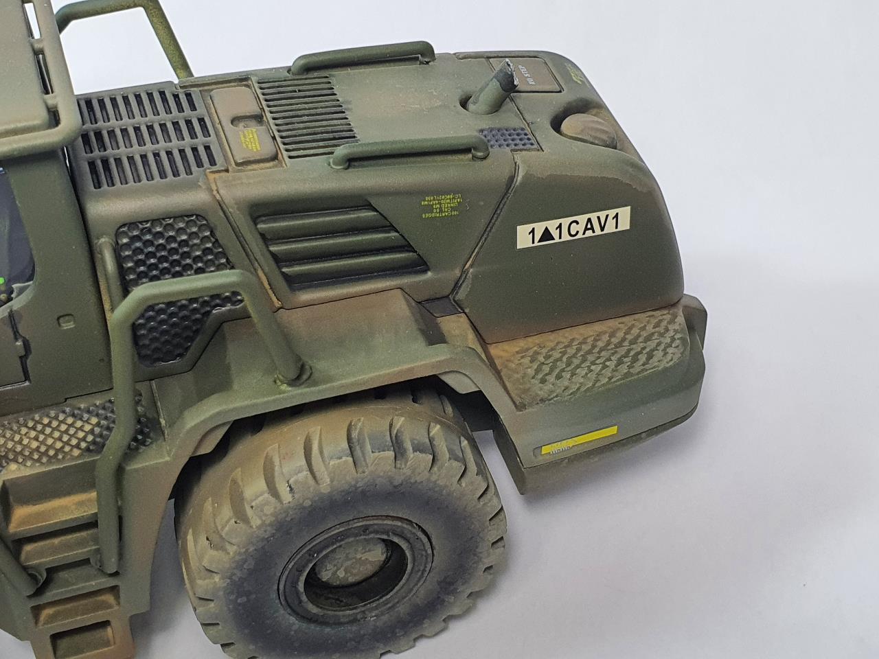 완성조립되어있는 황색의 (다이케스트+프라스틱) 차체에 메탈프라이머와 흰색 서페이서를 두툼하게 칠한다음 락카를 기본으로 에나멜류로 워싱 다크닝...등등을 해주었습니당.그리고( 마후라 구멍뚫기 정도만..)