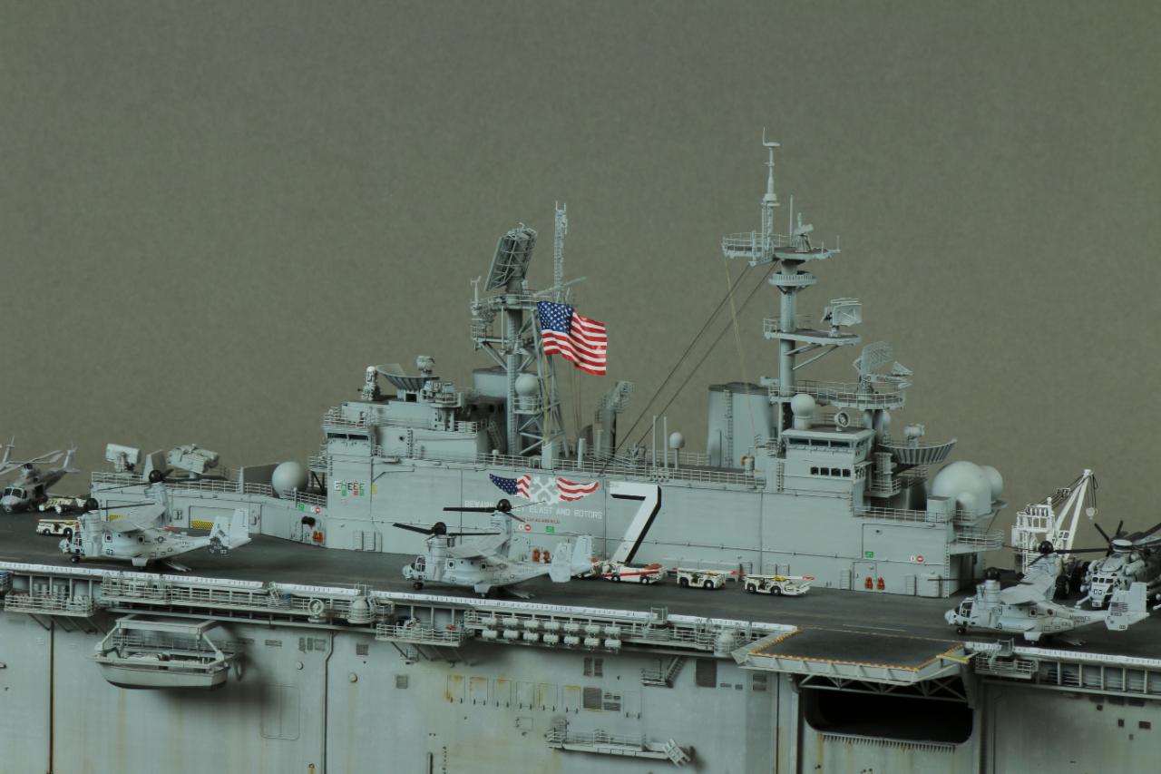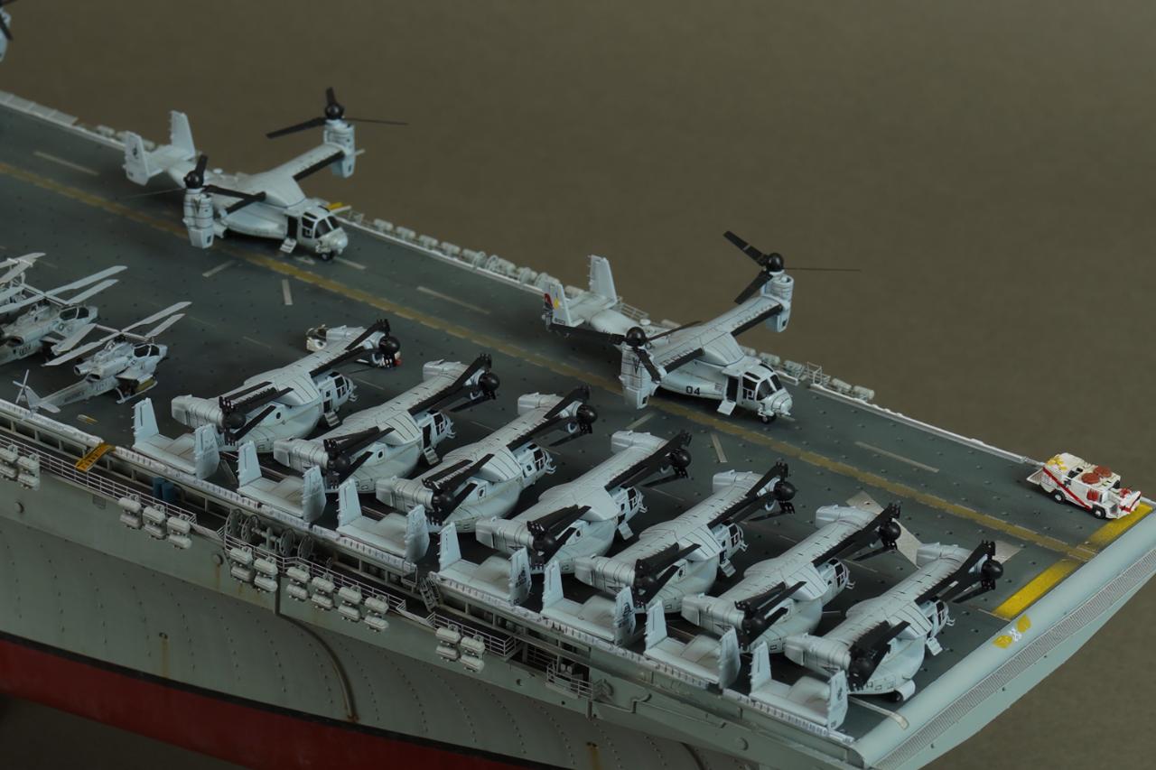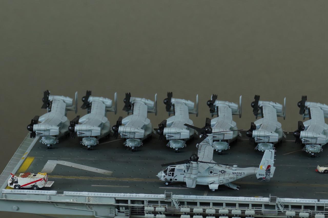 2년전에 배만 완성시켜놓고 질질끌다가 헬기랑 갑판차량을 올려주고 빨리 마무리했습니다. HS모델의 오스프리와 슈퍼스탤리온,갑판차량까지 모두 올려주었습니다.