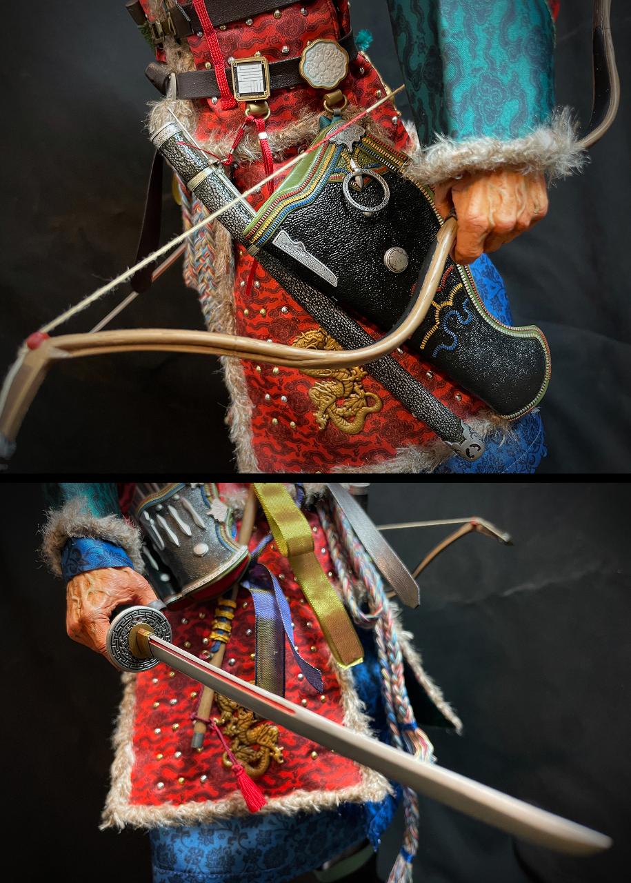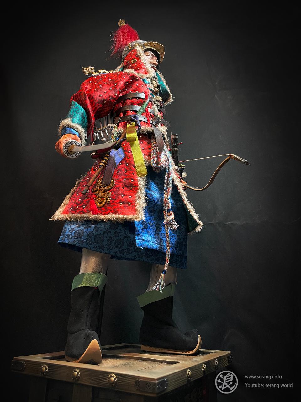 이 작품은 지난 수십년간 개인적으로 연구해 온 16세기 복식과 장비 고증을 철저히 바탕에 둔채, 기록이나 유물이 실재하지 않는 부분은 예술적 창작을 가미해 재현한 국내 최초의 16세기 임진왜란 당대 고증 작품입니다.