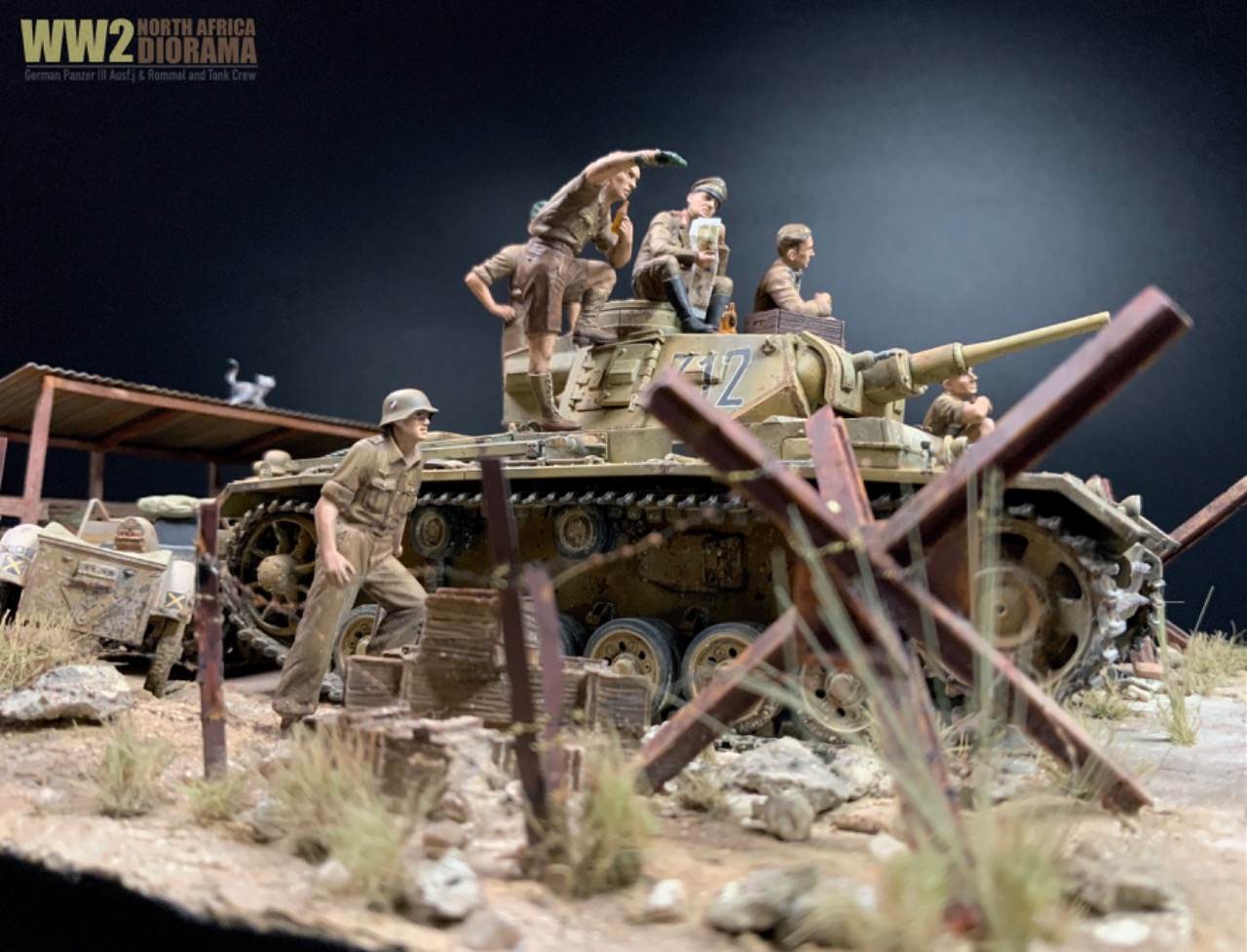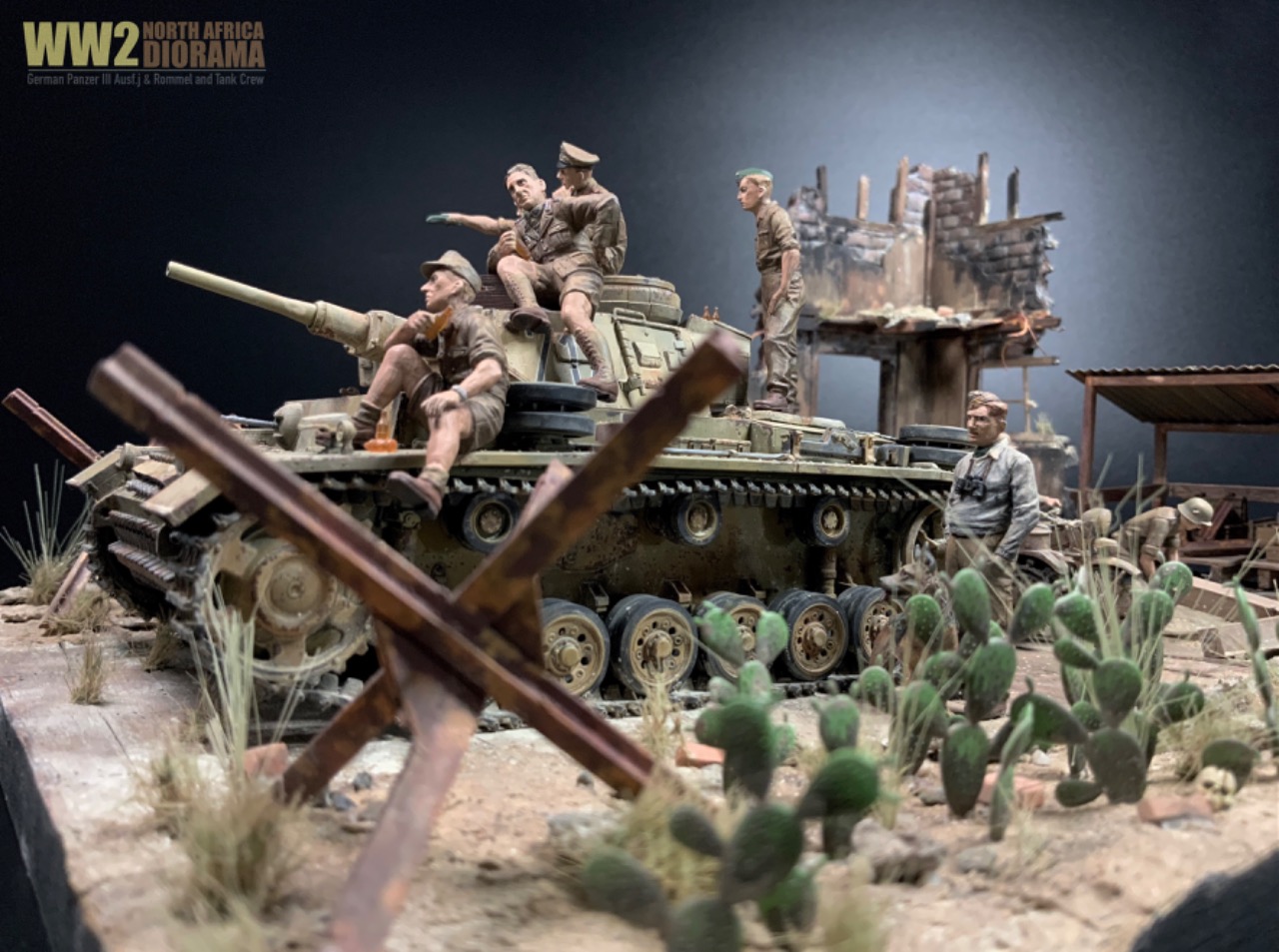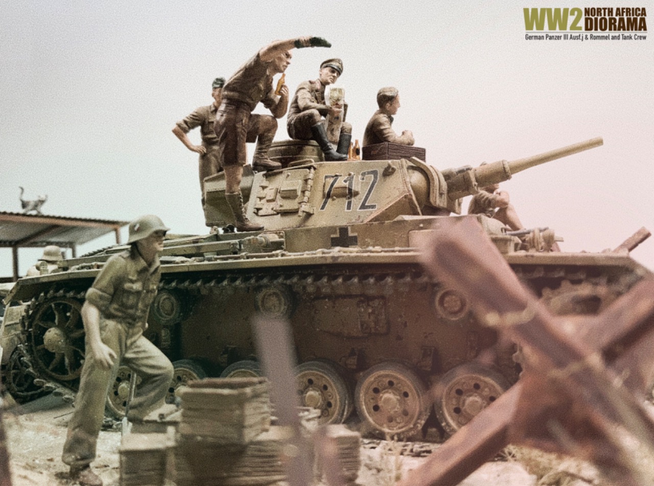 맥주한잔하며 내일 공격을 계획하는 롬멜장군과 탱크병 디오라마 입니다