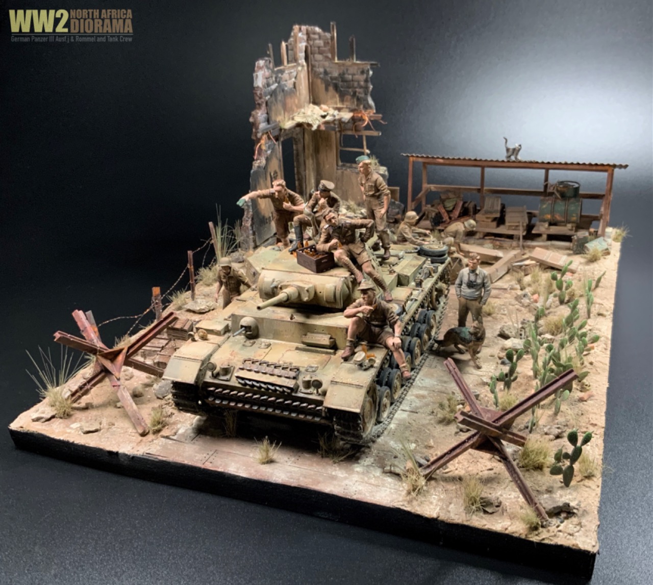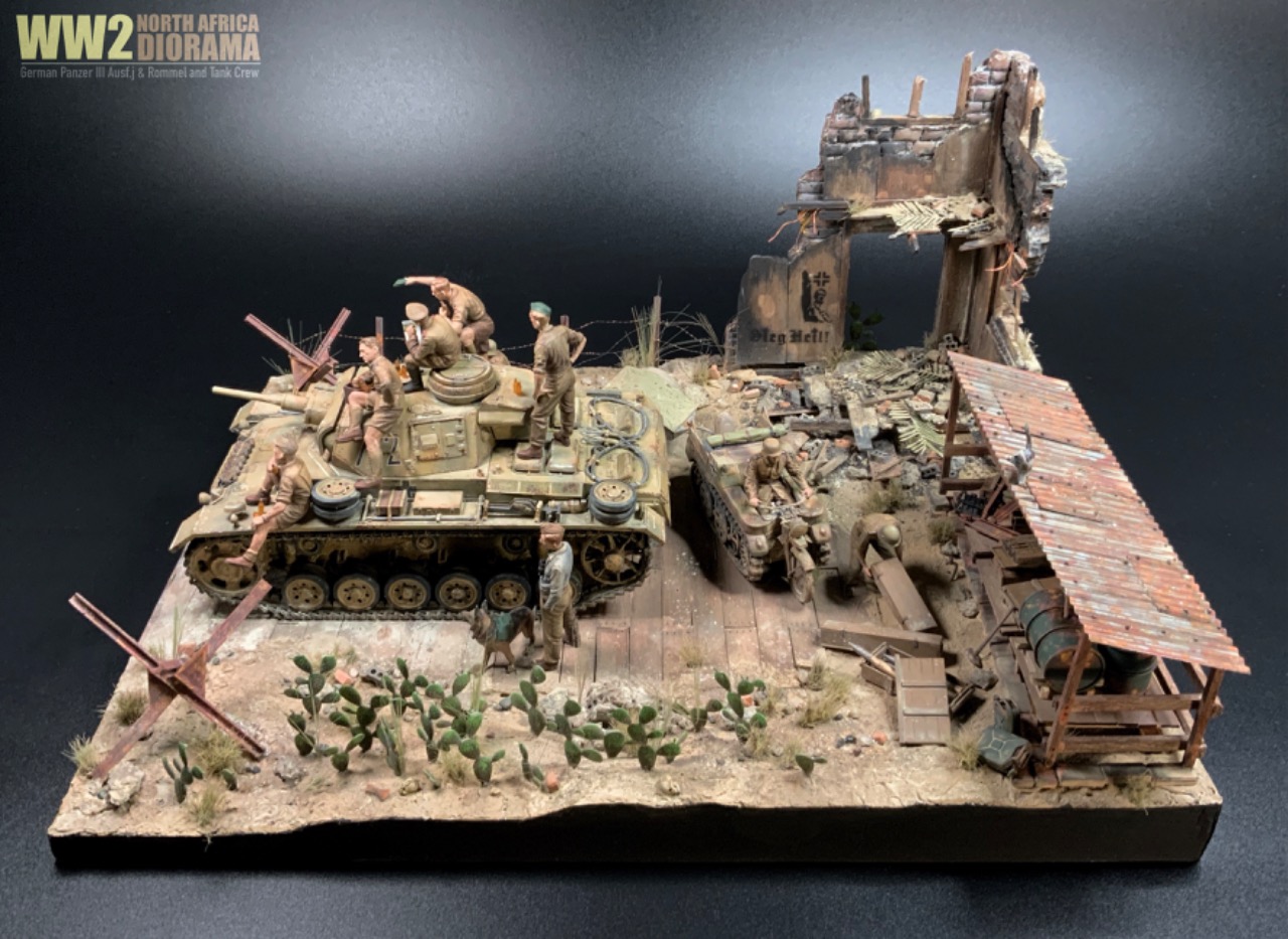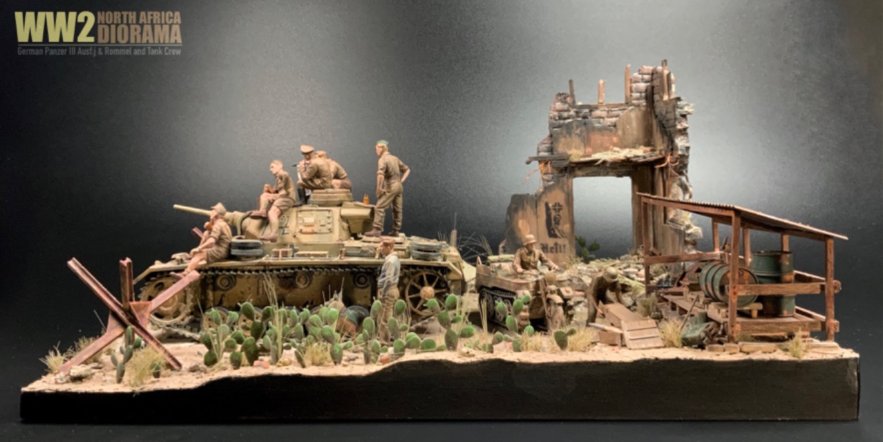 맥주한잔하며 내일 공격을 계획하는 롬멜장군과 탱크병 디오라마 입니다
