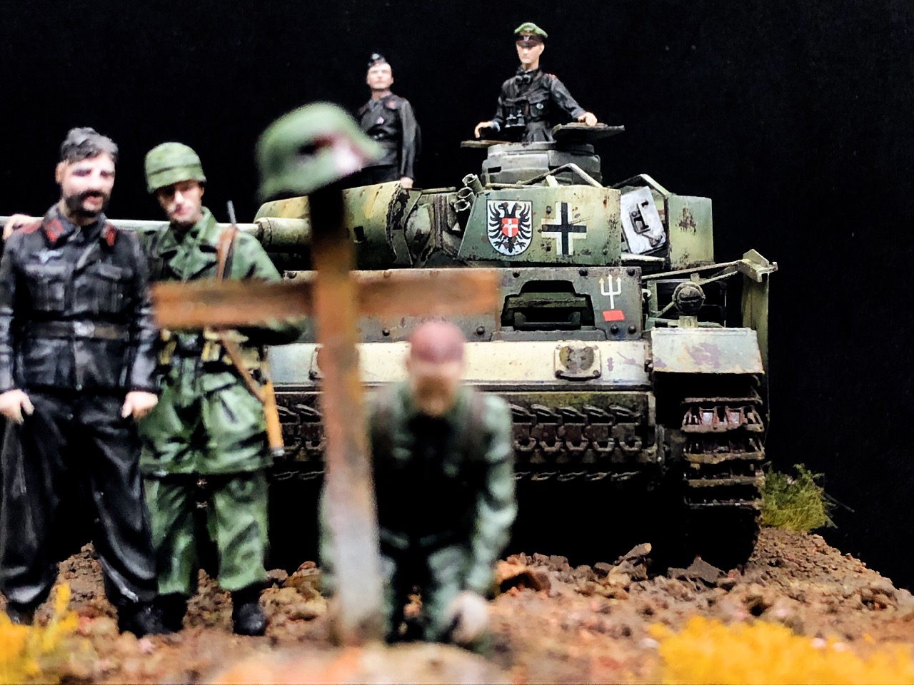 쿠르스크 전장 어디쯤 이라고 설정하고 작업하였네요. 자신의 실수로 목숨을 잃게된 소대원을 묻고 쉽게 돌아설수 없어하는 병사에게 전차장이 말합니다.