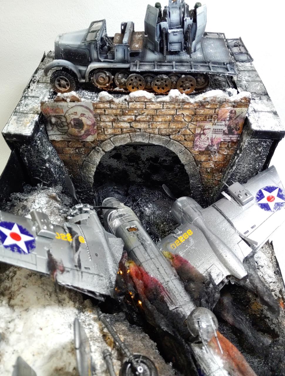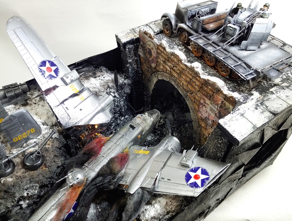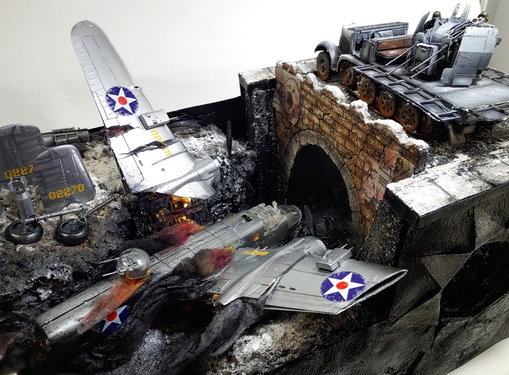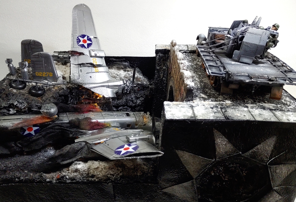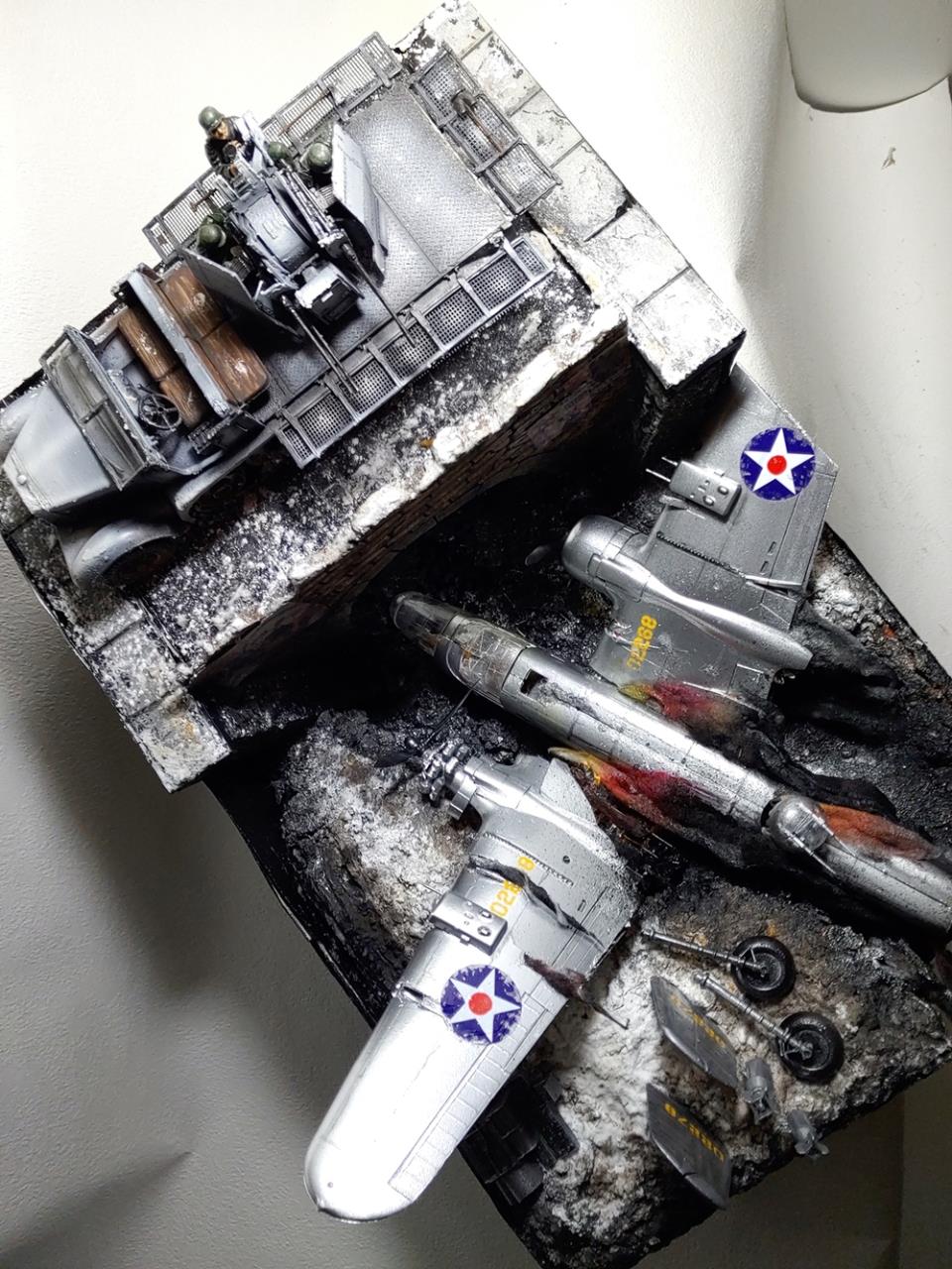 집에 남은 베이스를 재활용 하였습니다.b-25 폭격기는 아카데미 것이고 세미트랙은 아이디어 회관 제품입니다.설정은 8톤세미트랙이 b-25 폭격기를 사냥하는 설정입니다.고증과 맞는지 잘모르겠네여?