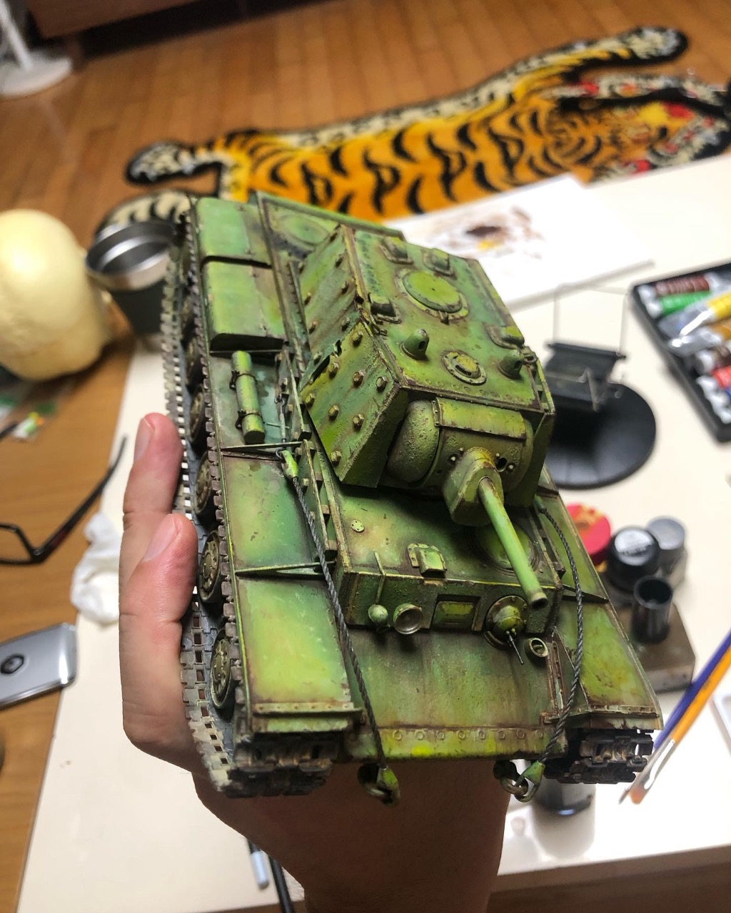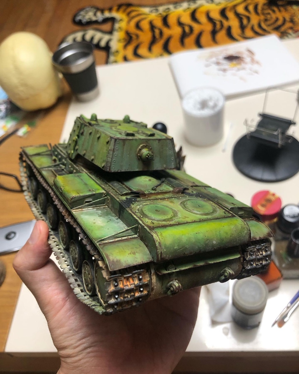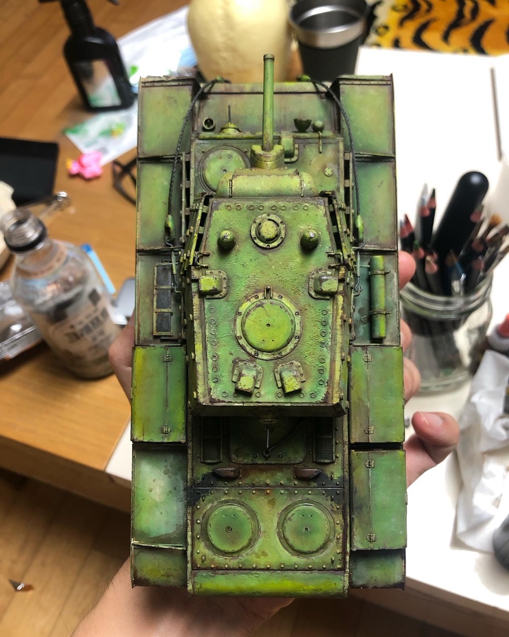 락카 기본색 뿌리고 유화로 쉐이딩 하고