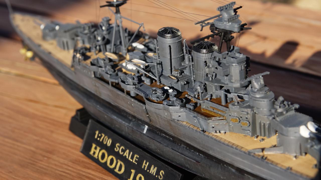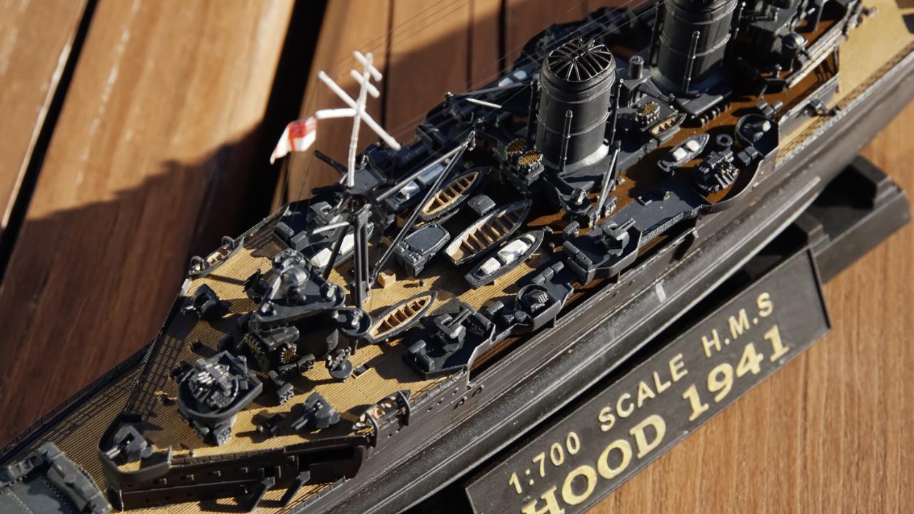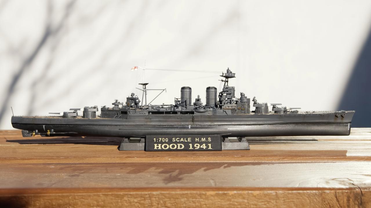 일본 제국이 야마토 전함을 건조하기 전까지는 세계 최대 크기를 자랑하는 군함이였으며 당시 기준으로 전함을 포함해 누구보다 빠르며 비록 15인치지만 이미 성능이 입증된 주포이자 당시엔 16인치 전함이 일본의 나가토급(2척), 미국의 콜로라도급(워싱턴의 건조 취소로 3척), 자국의 넬슨급(2척)으로 많지 않았던 시절이였고, 세상에 등장했을땐 최고 속도가 무려 31노트로 어디든지 자신이 필요한곳으로 달려 갈 수 있으며 기존의 순양전함과 달리 방어력도 기대할 수 있는 존재 자체만으로 가치가 있는 순양전함입니다. 모형으로서의 모습... 그중 제가 만든건 후드의 최후인 비스마르크 추격전 당시 모습이지만 그래도 그 특유의 아름다운 모습을 볼 수 있습니다.