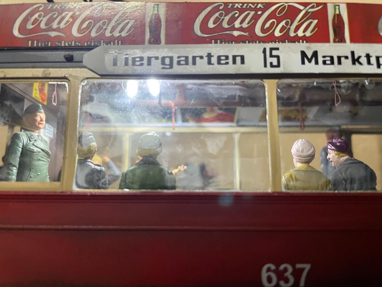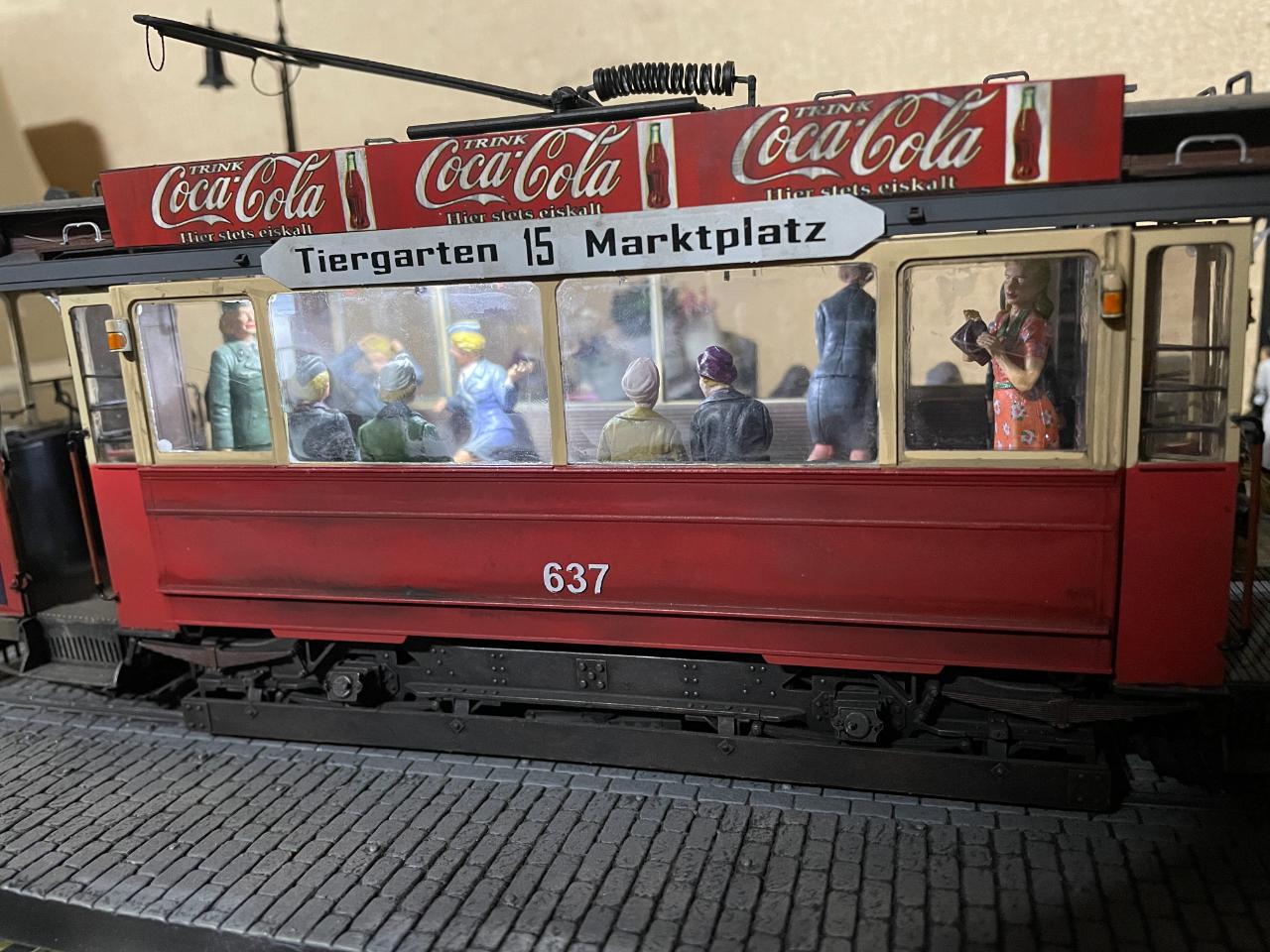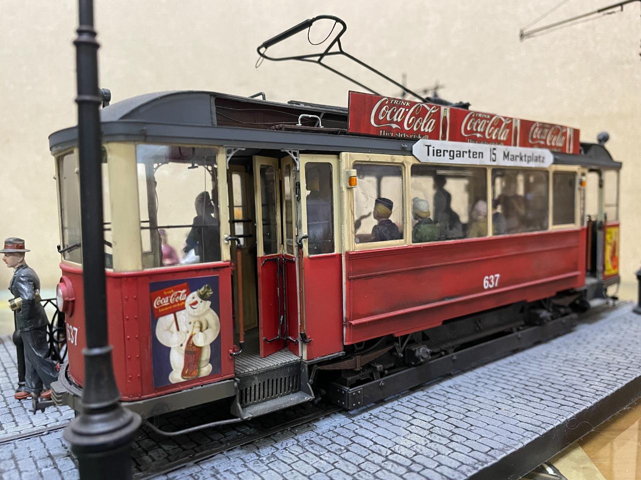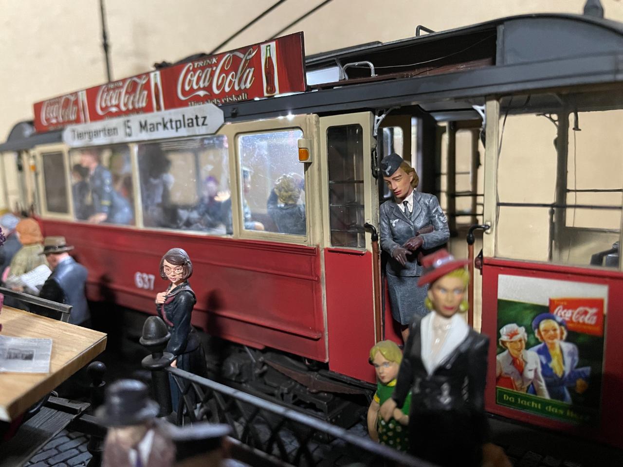 몇 년 전 만들어놓고 계속 미루다 오늘 꺼내서 사진 남겨봤습니다. 미니아트의 트램을 이용한 작품이구요, 각종 메이커의 인형들을 사용했습니다. 중간의 꽃 파는 수레가 파워소스로, 트램 내부조명과 헤드라이트를 작동시킵니다. 가로등 불도 들어왔었는데 나갔나봅니다..