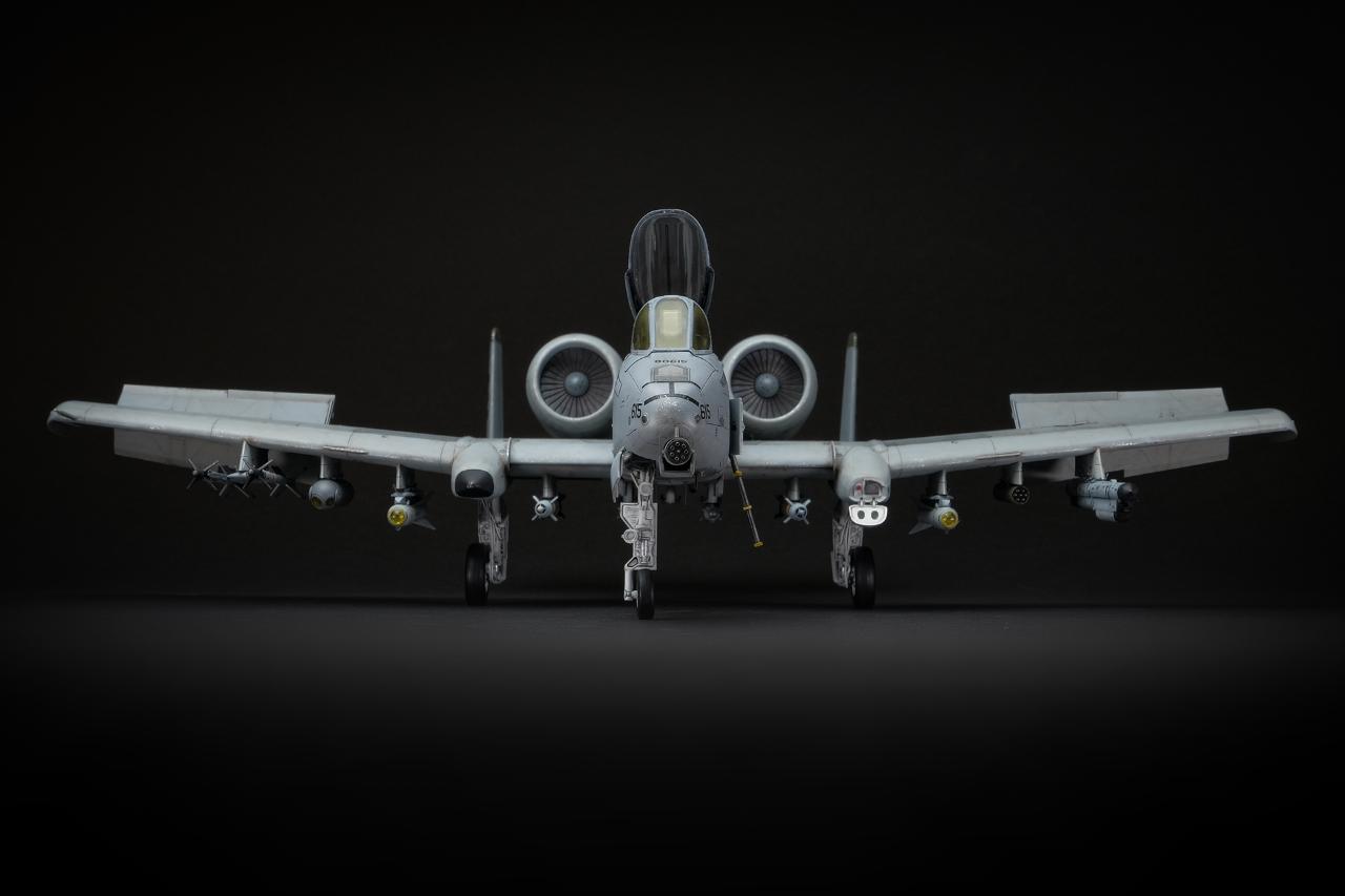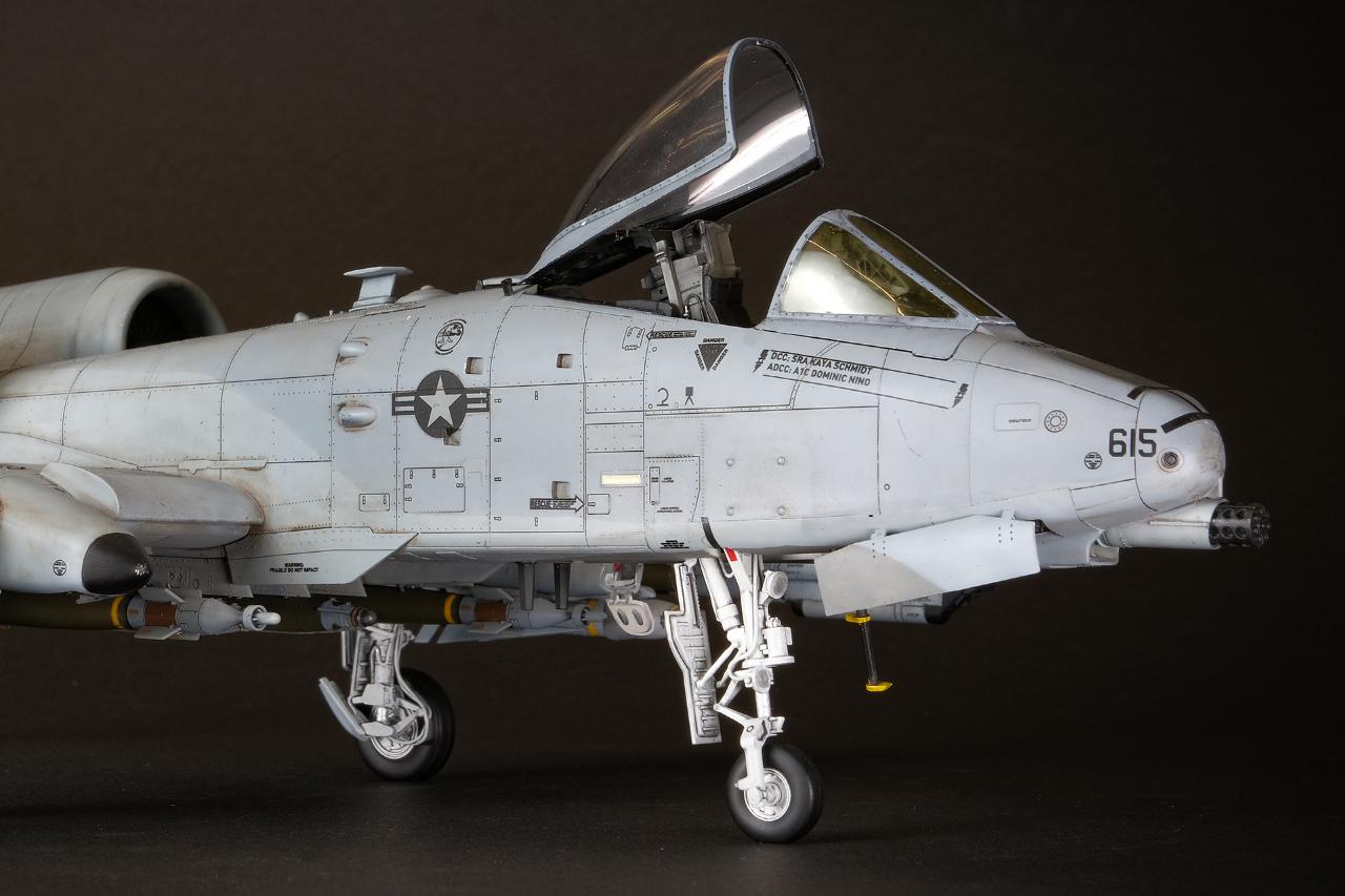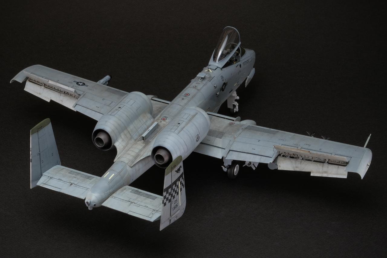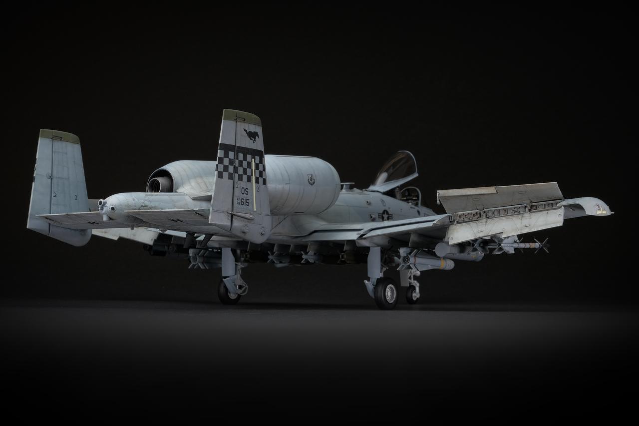 전체적인 실루엣은 우리가 알고 있는 A-10C의 형태 그대로 더 할 나위 없이 훌륭한 모습을 보여줍니다. 디테일을 살리기 위해 엔진베이와 콕핏 뒤쪽 거대한 동체를 통짜로 슬라이드 금형을 사용하는 과감한 시도에 찬사를 아끼고 싶지 않습니다. 다만, 실기의 기수는 조금 복잡한 삼각뿔의 실루엣이 있는데 이것이 표현되지 않아 조금 아쉽습니다.