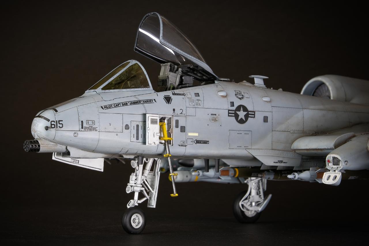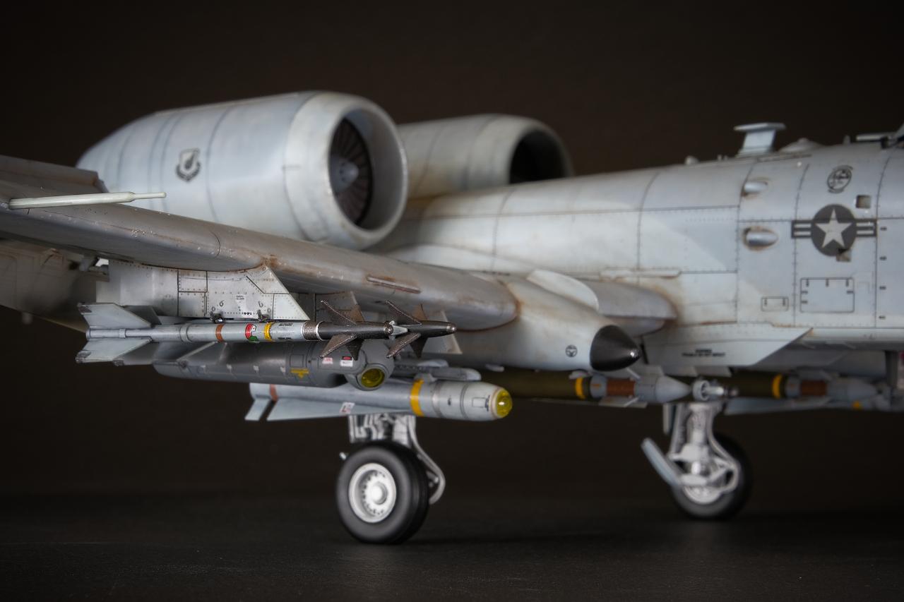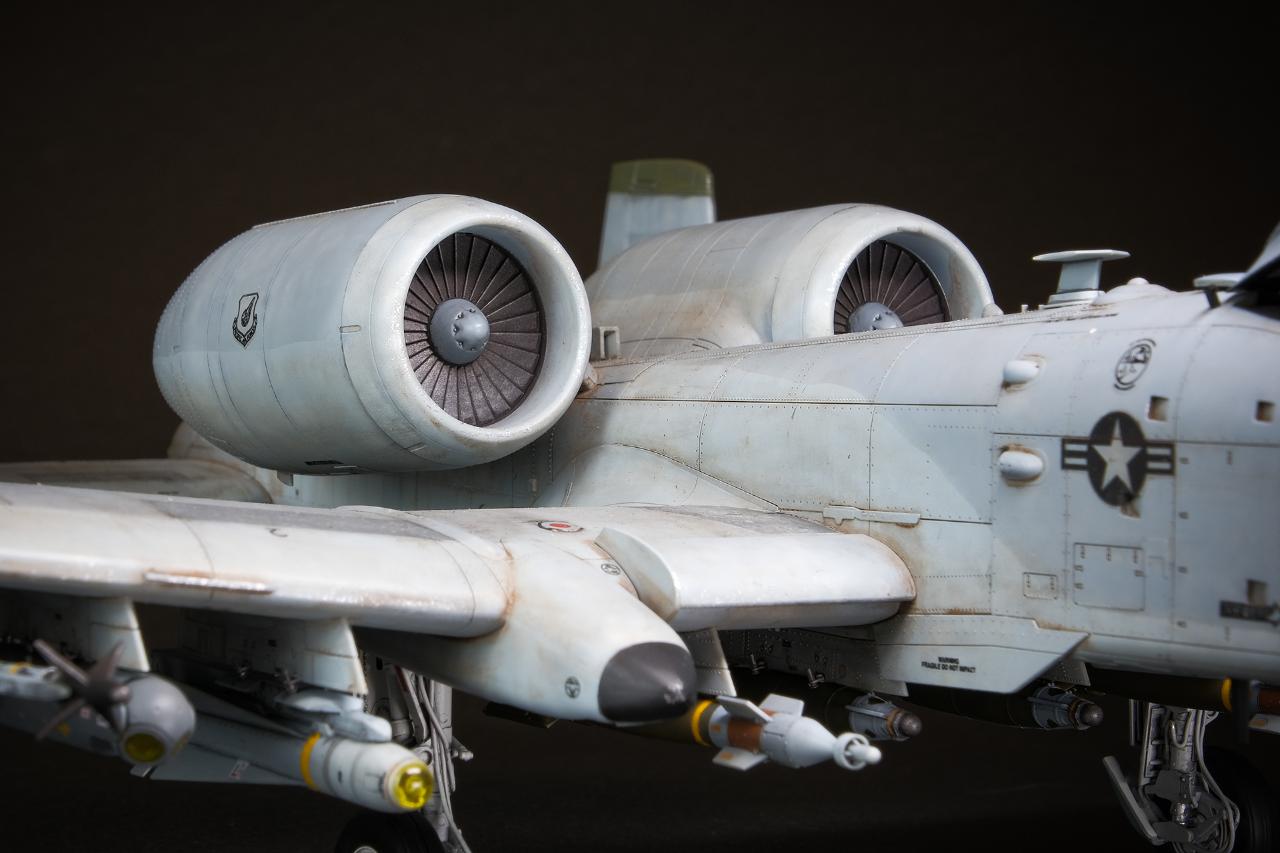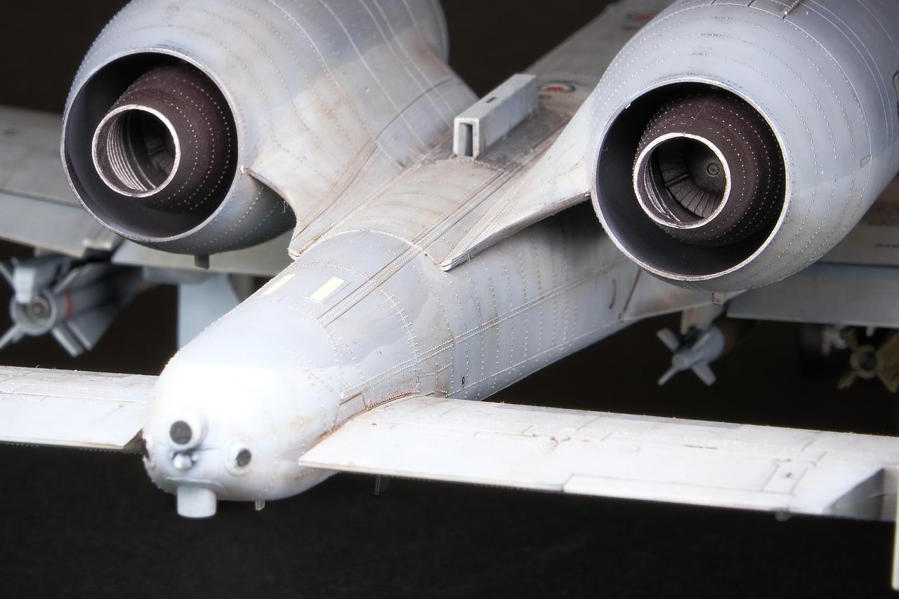 A-10 특유의 둥근머리 리벳 표현이 동체에 섬세하게 표현되어 있어 그 터프한 공격기의 감각을 잘 살려주고 있습니다. 사실 조립을 하다보면 최근 타미야 에어로 제품처럼 완벽하게 들어맞는 느낌은 아니라서 퍼티와 사포질로 디테일을 날리는 불상사를 피하기 위해서는 신중하게 조립할 필요가 있습니다.