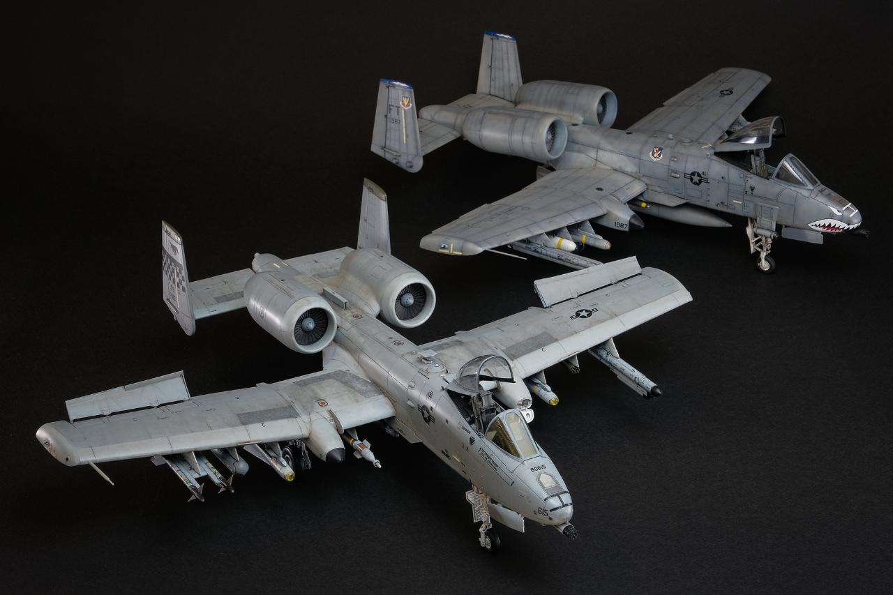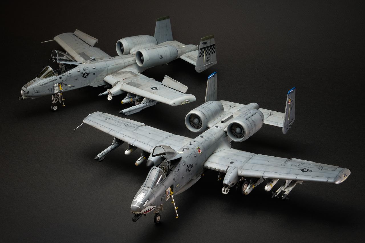 이전에 제작했던 하비보스 A-10A와 같이 촬영해 봤습니다. 상대적으로 기체의 엣지부분이 사프하게 만들어졌고 디테일이 워낙 선명하게 표현되어 있다보니 기존 A-10제품들의 육중하고 투박한 느낌과 차별화된, 현재의 핀포인트 타격 방식의 탱크킬러 이미지를 잘 살린 것 같습니다.