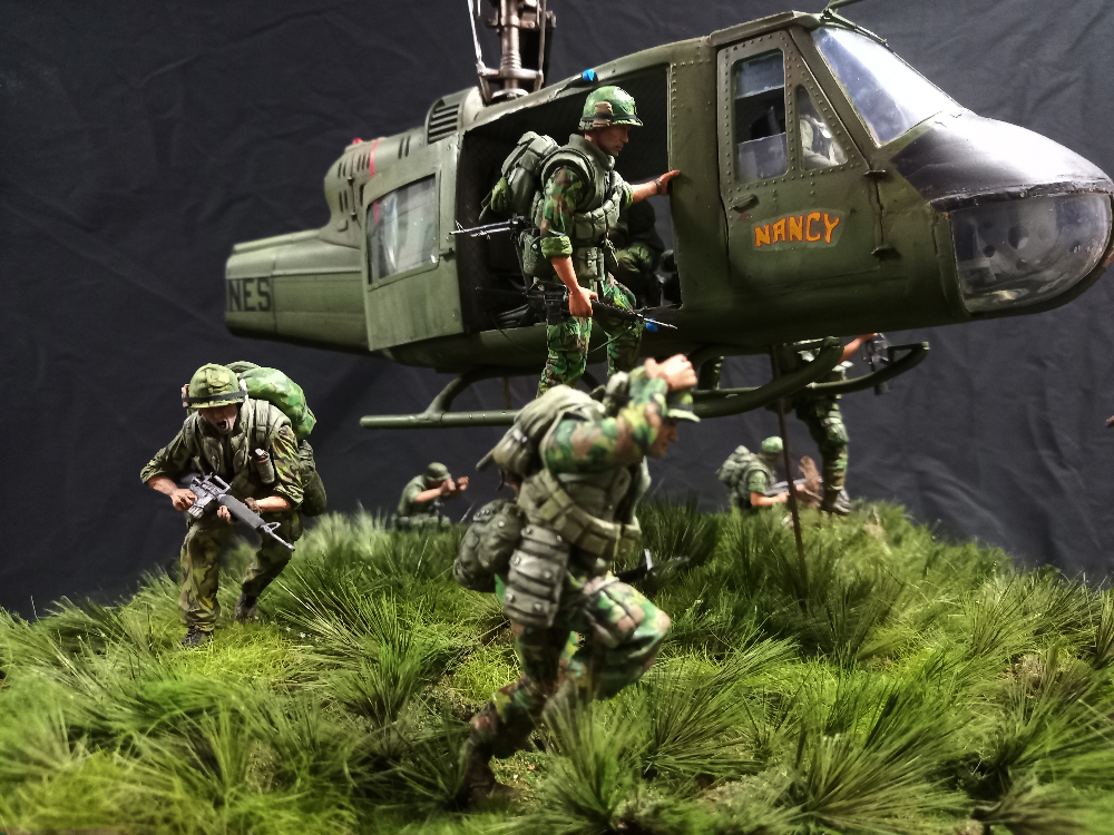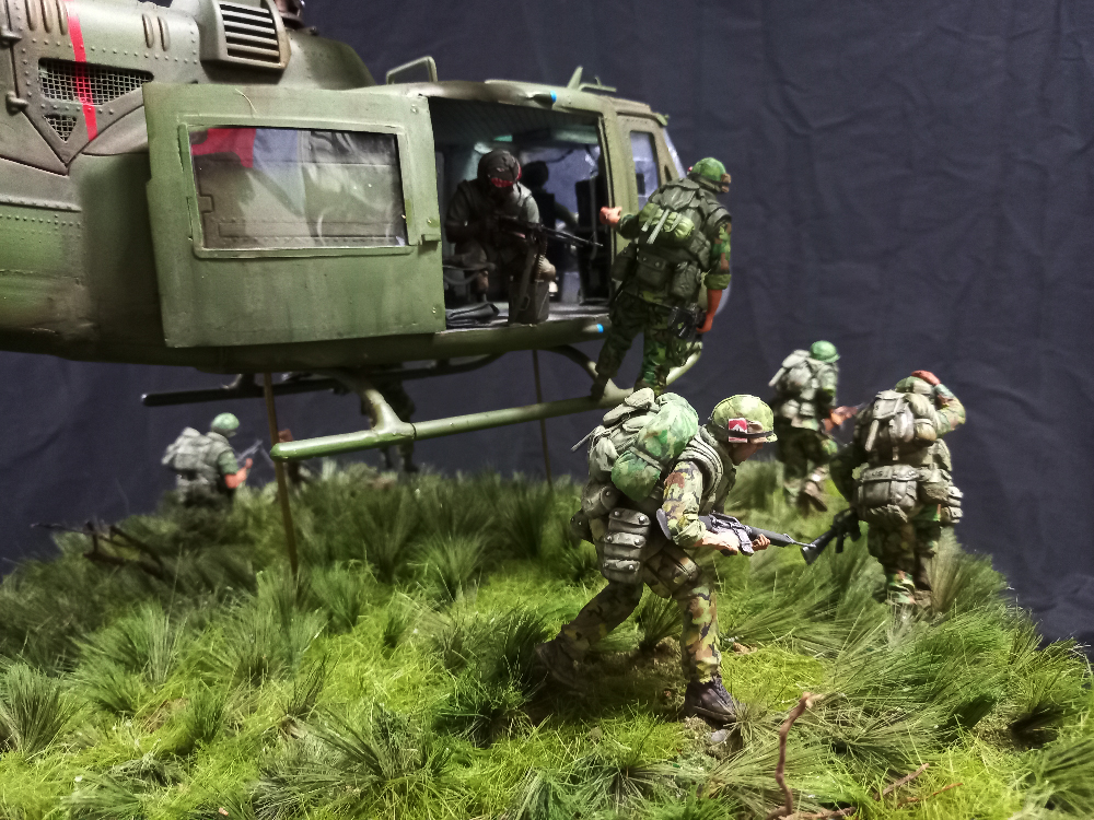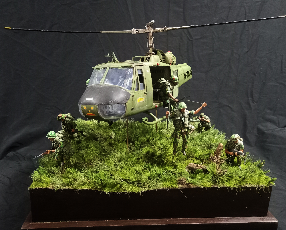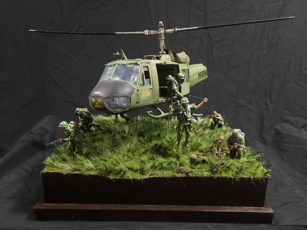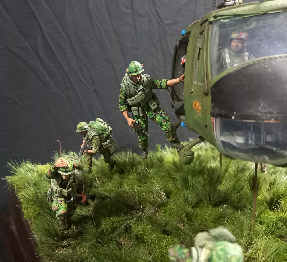 예전부터 구상했던 벳남 디오라마 ...의외로 베트남전의 상징이던 헬기 랜딩 장면을 구상만 했을 뿐 만들어본 기억이 없네요 ,,이 장면을 막상 하려면 생각보다 멋지게 나오지 않고..피규어 경우 몇몇 회사에서 인형들도 나오긴 했지만 고증 오류가 대부분...그래서..기왕 만들거 크게 만들어 보자는 생각으로 1/16 스케일로 작업을 했습니다