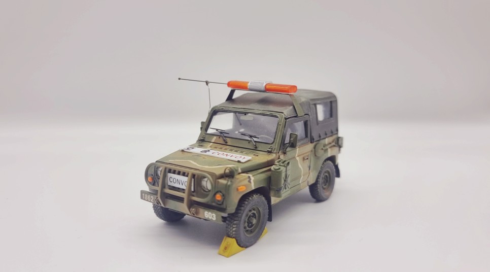 DEF MODEL의 K-131 레토나(군토나)를 베이스로하여, 자사 별매품인 안테나와 헌병대 경광등 악세사리를 구매하여 작업하였습니다.