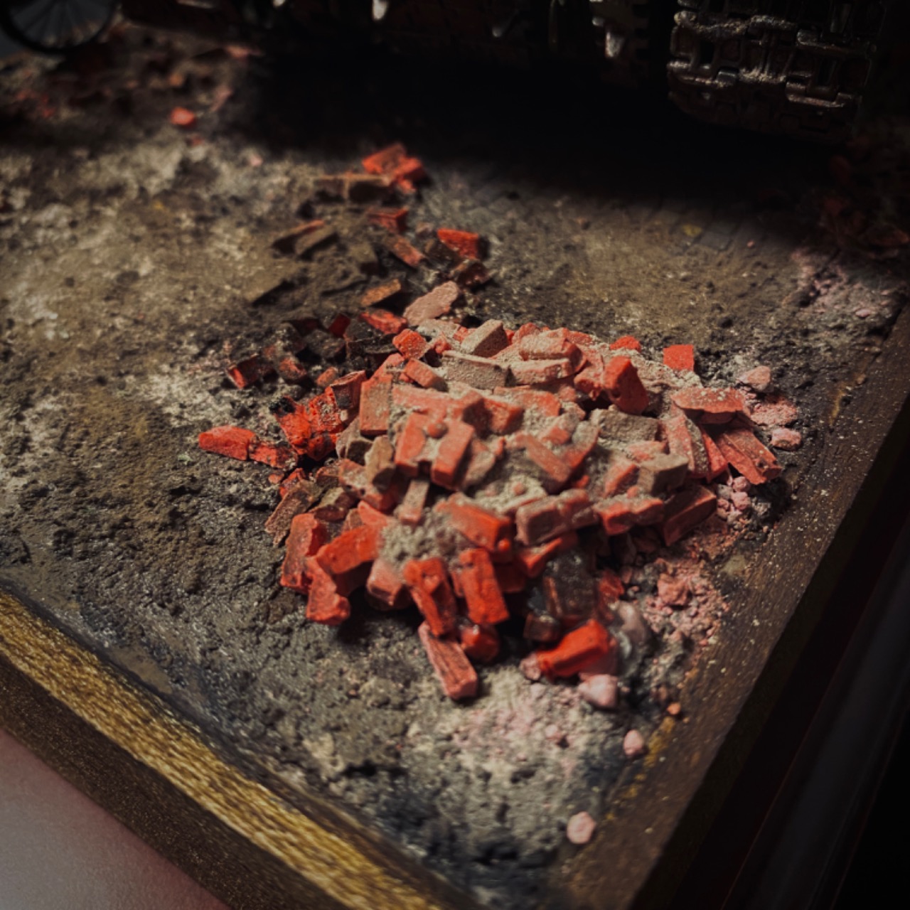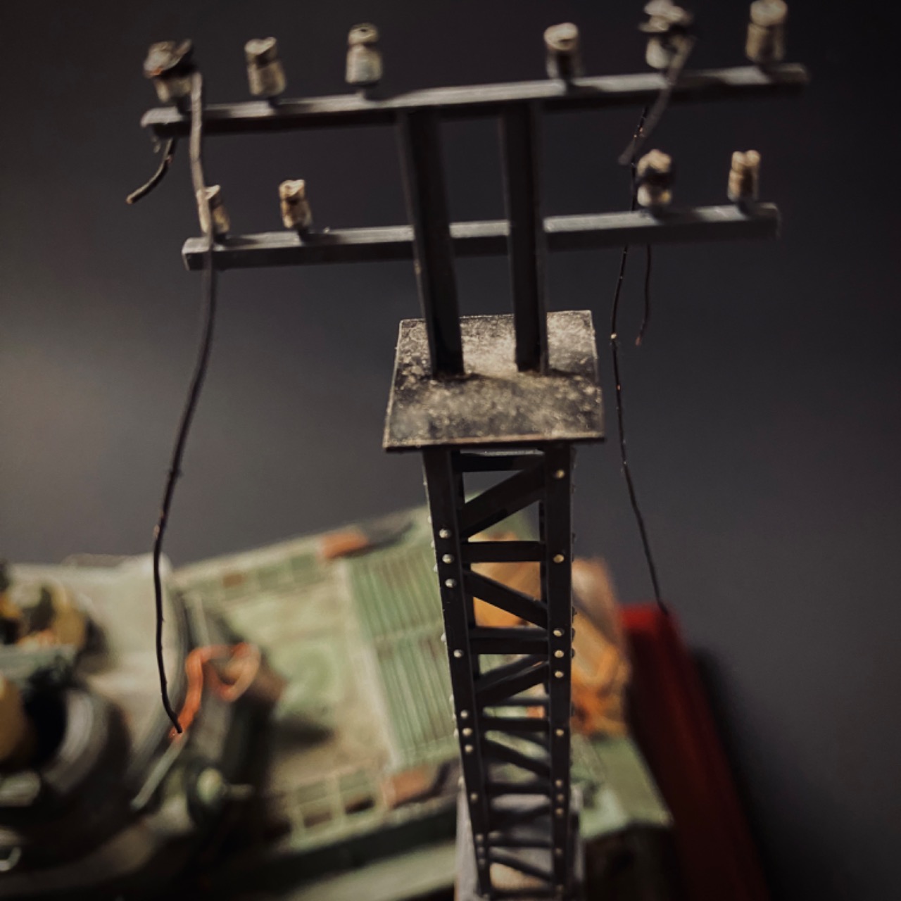 예전에 구매해놓고 펜트리 깊숙히 박혀있던 마스터박스사의 유럽시민과 미니아트사의 디오라마시리즈 중 길거리 베이스 제품에 있던 송전탑을 추가 완성하여 구도를 잡고 바로 베이스 작업을 하였습니다.