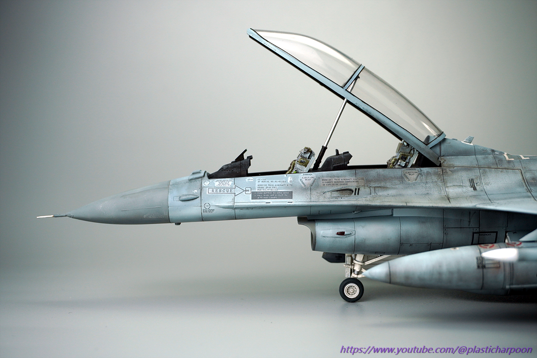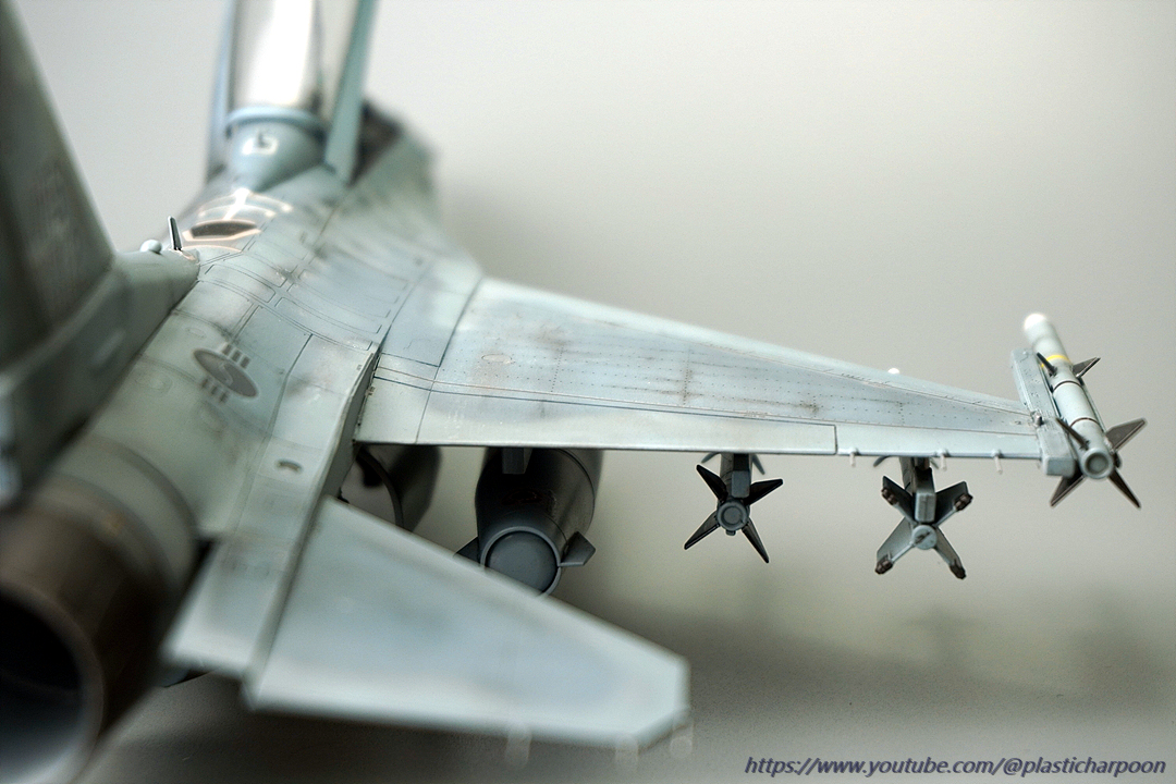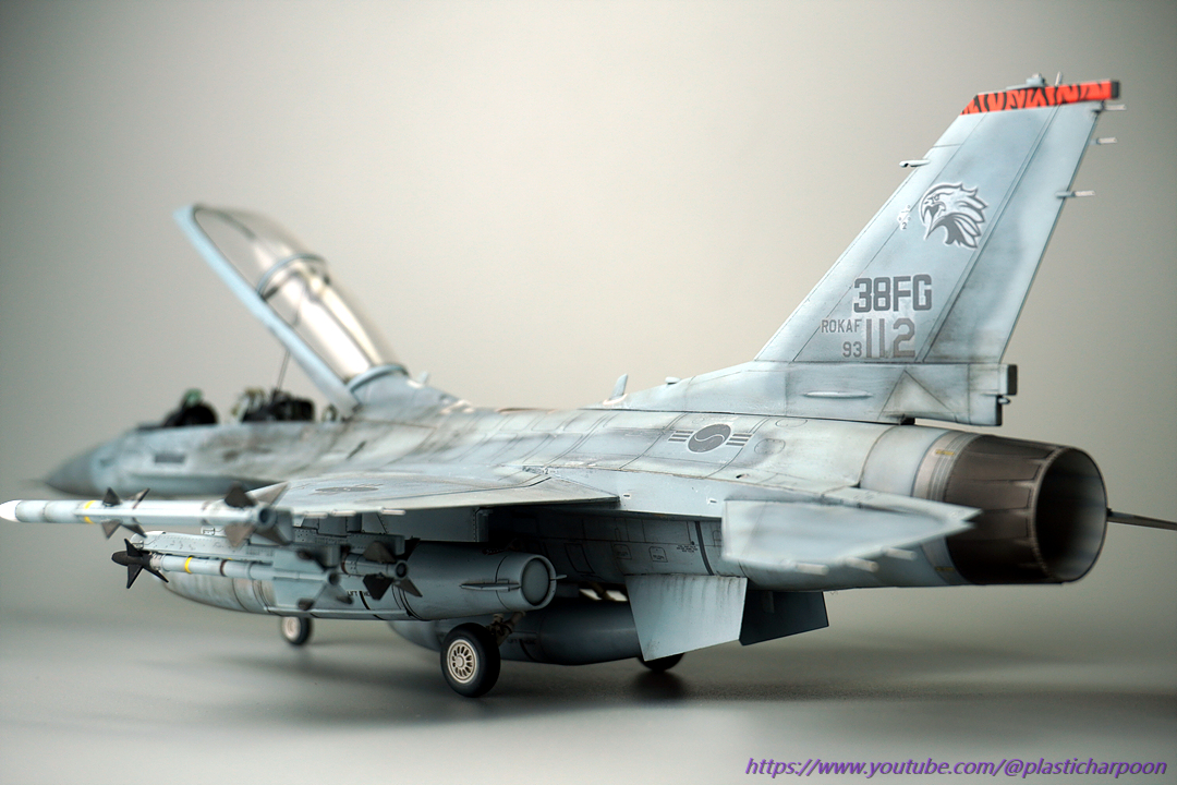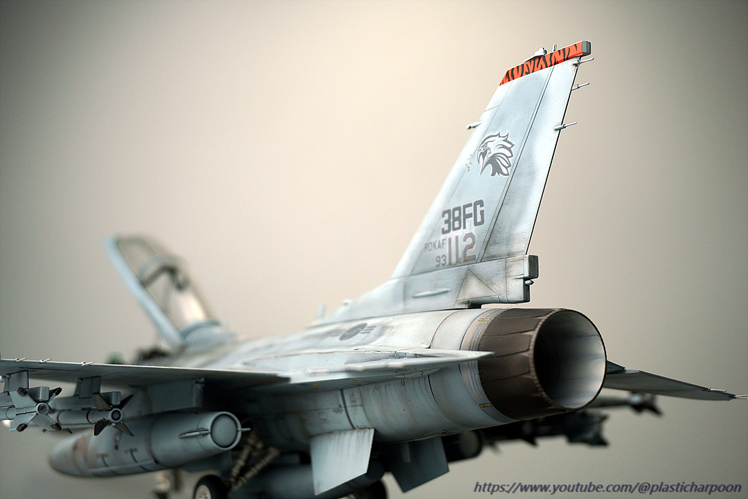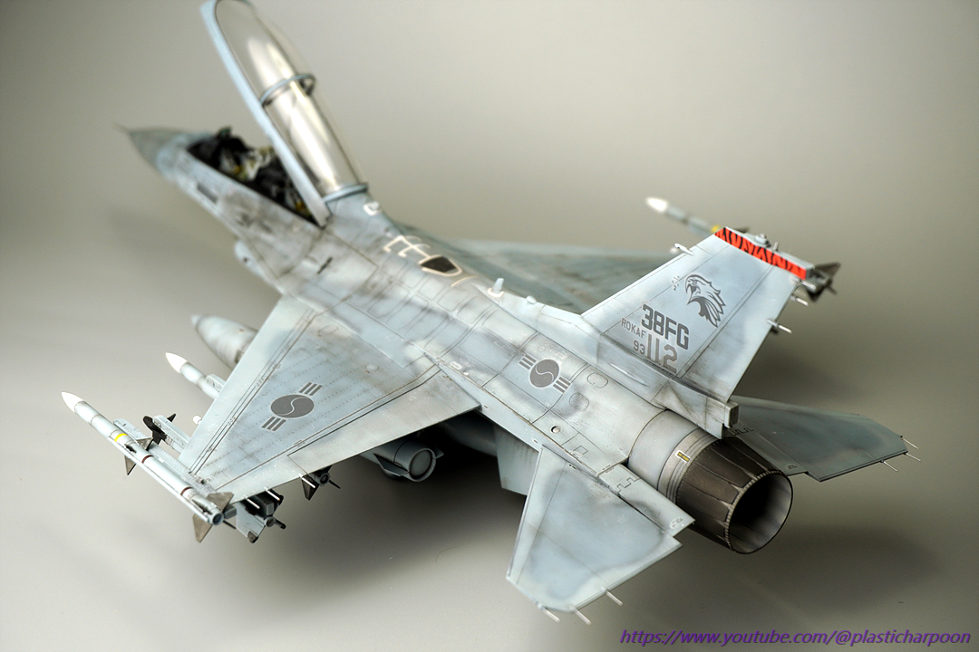 하세가와의 1/48 KF-16D입니다. 작년 사천에어쇼에서 같은 비행단의 단좌기를 보고 너무 반해서 킷이 나오자 구입하고 작업을 시작을 했는데 중간에 코로나 걸려서 고생하고 이제서야 마무리를 했습니다. 그동안 여러 고수님들의 작품이 쭉 올라와서 웨더링의 방향에 고민을 많이 했는데 요즘 공군에서 올라오는 영상이나 사진을 보니 훈련 빡시게 하는 모습의 사진들이 태반이라 하드웨더링에 도전......마감재 올리다가 희석해둔걸 까먹고 신너를 더 넣어서 도색이 녹기도 했는데 적당히(?) 멈춰줘서 나름 더럽히는 효과를 얻어걸렸네요. 오랜만에 완성작을 올립니다. 유튜브 해본다고 도통 사진 찍지를 않아서 정말 오랜만에 인사를 드립니다. 제작기 제 유튜브채널에서 보실 수 있습니다.(https://www.youtube.com/@plasticharpoon) 감사합니다.