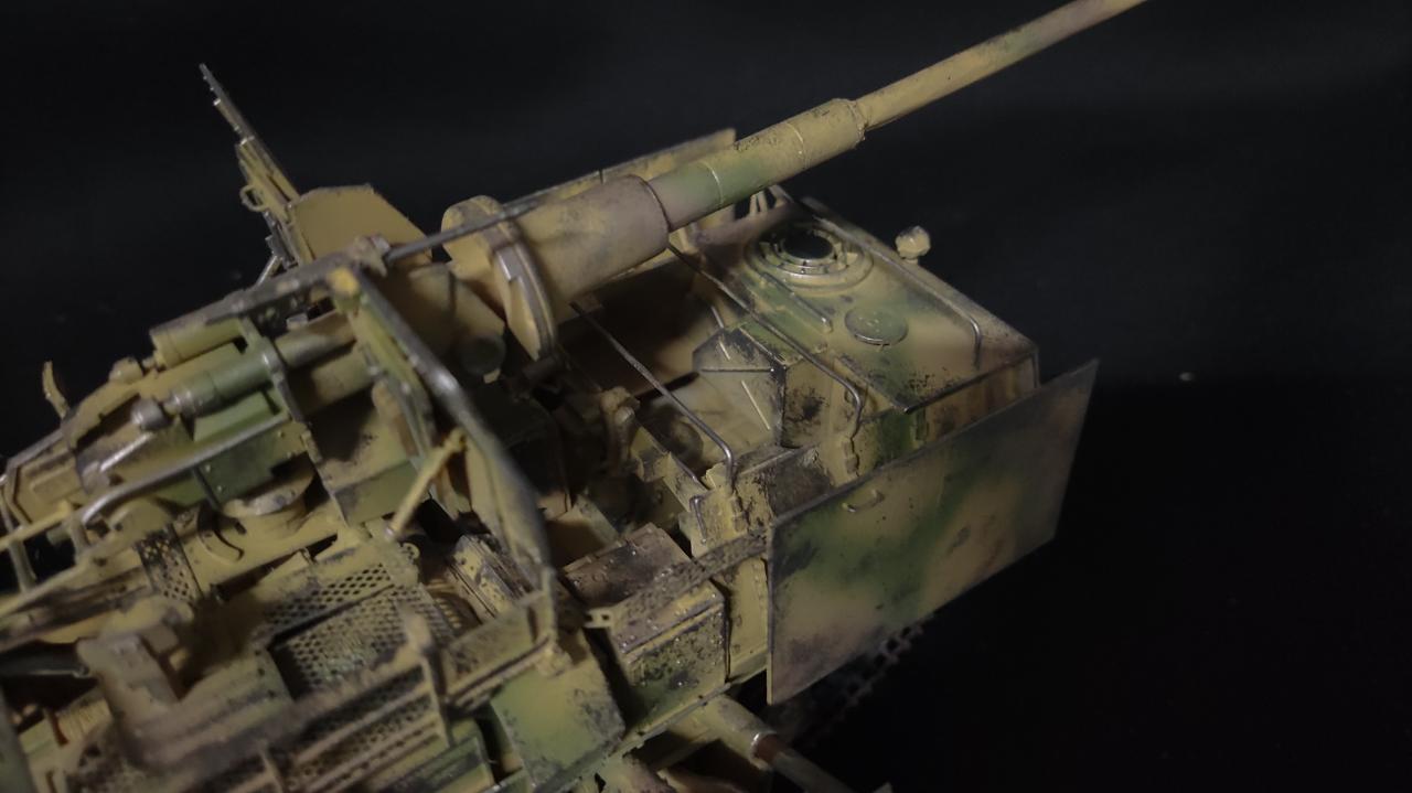 반동제어를 위해 차체 후방에 도저쇼벨이 놓여있고, 전투실 밑에 반동제어장치 또한 장치되어 있습니다.