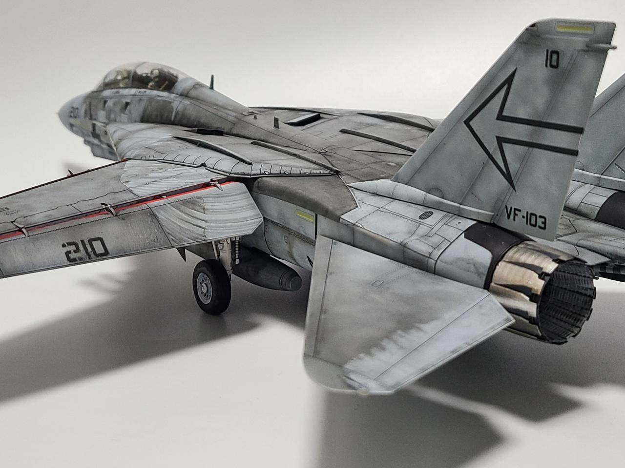 안녕하세요. 모두의 밀리터리 프라모델이라는 카카오톡 오픈채팅방과 초보의 프라모델 카페에서 활동중인 입문 2년차 뉴비 soap라고 합니다. 여기에는 처음으로 올려보는 완성작이네요. 제가 제일 좋아하는 비행대인 VF-103 Sluggers의 210번기의 사막의 폭풍 작전 당시 사양으로 타미야의 F-14A 후기형과 KA MODEL의 A+, B, D형용 별매 노즐을 이용하여 제작해주었습니다. 사진도 몇장 남아있지 않았지만, 꾸역꾸역 완성하고 나니 뿌듯하네요.