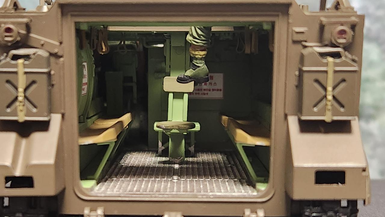 예전에 나왔던 내부 재현품을 구하지 못해서 여분의 M113내부 재현 키트와 여러가지 정크킷을 활용해서 최근 내부 사진을 바탕으로 느낌만 나게 만들어 봤습니다...