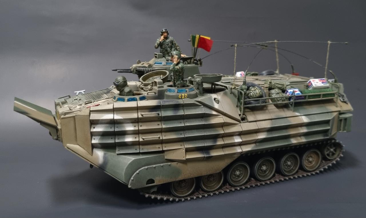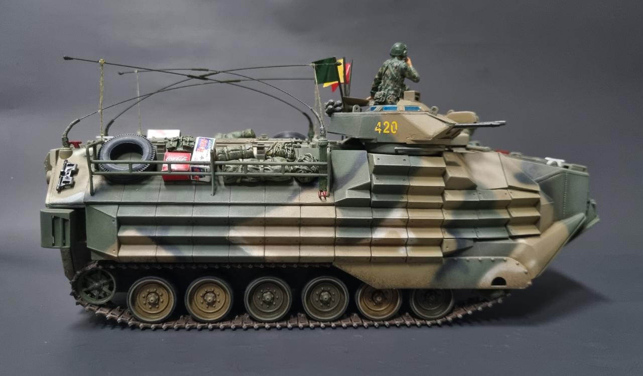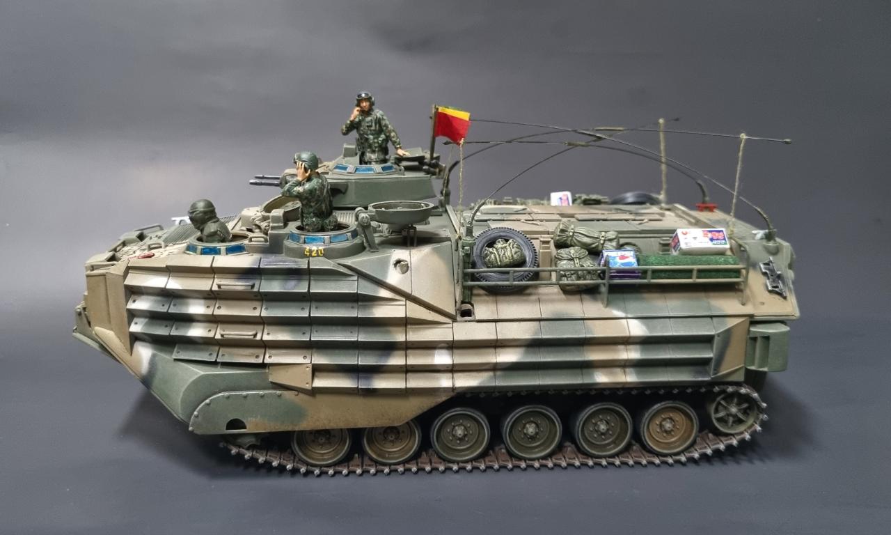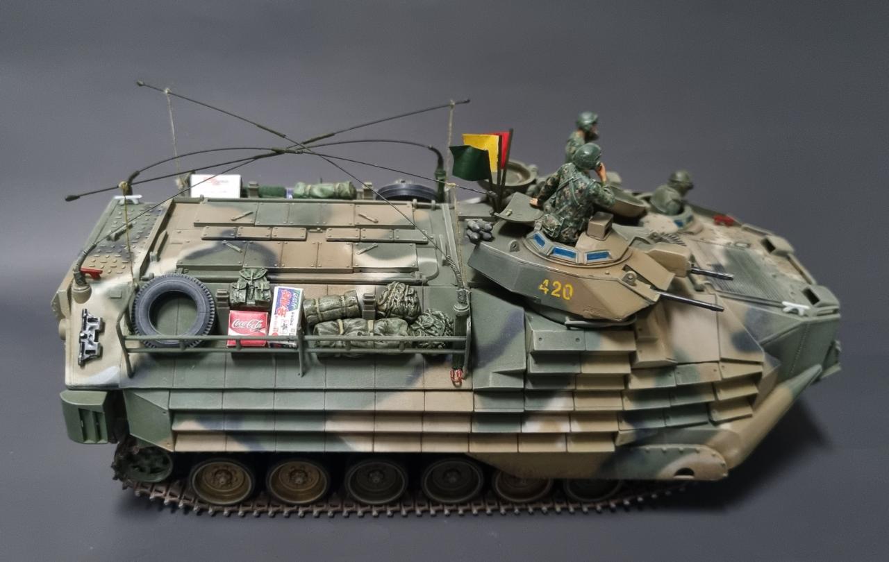 중국제 저가 AAV7A1을 한국 해병대용으로 만들어 보았습니다. 해병대가 상륙할때 보니 안테나를 교차해 접었기에 그걸 표현해주는데 중점을 맞추어보았습니다..