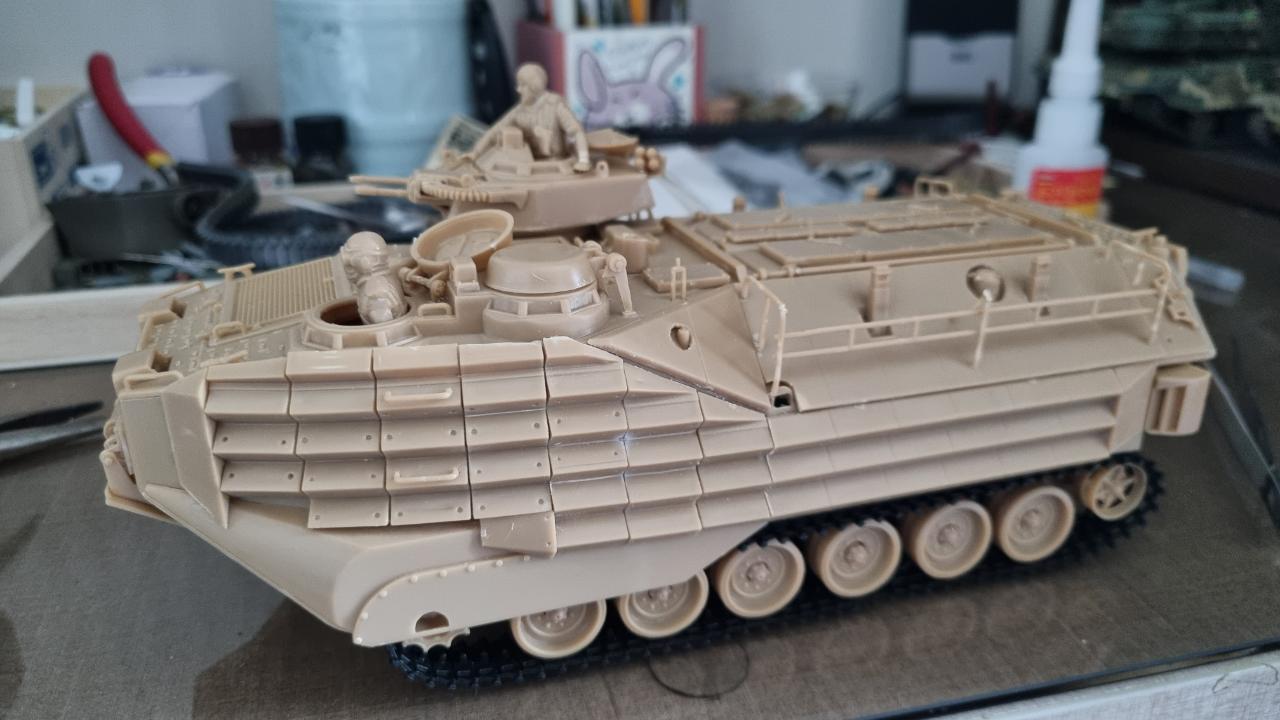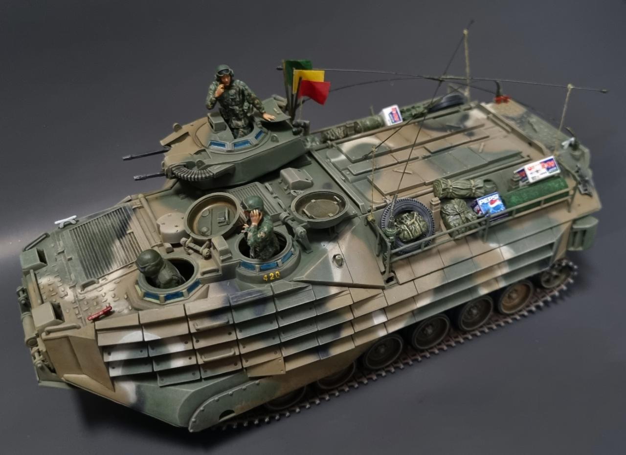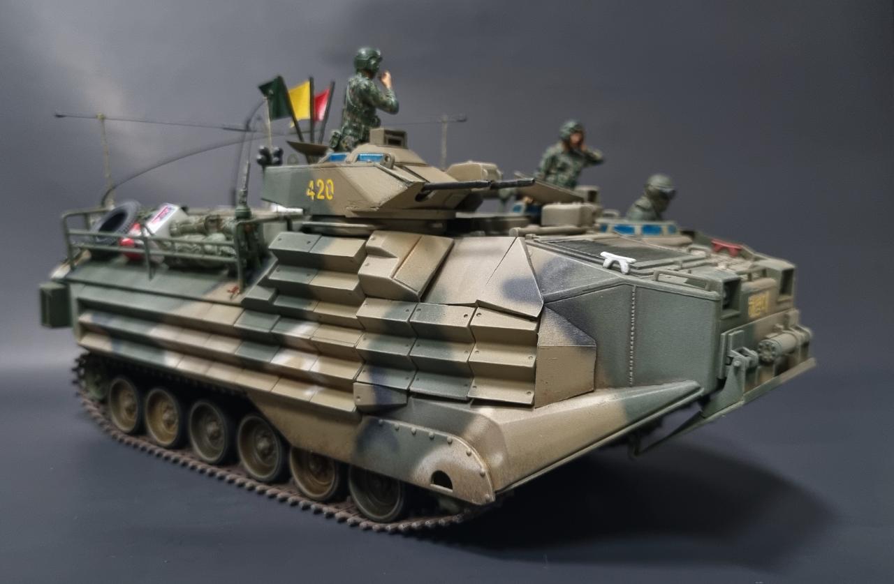 중국제 저가 AAV7A1을 한국 해병대용으로 만들어 보았습니다. 해병대가 상륙할때 보니 안테나를 교차해 접었기에 그걸 표현해주는데 중점을 맞추어보았습니다..
