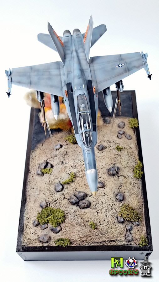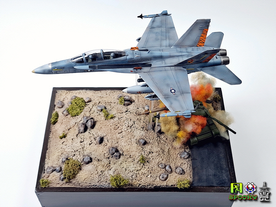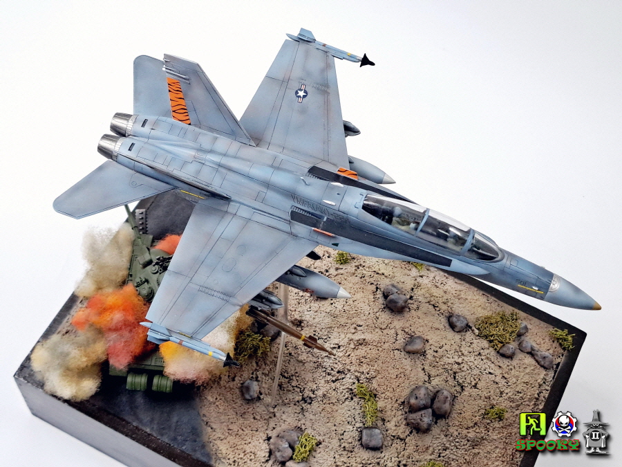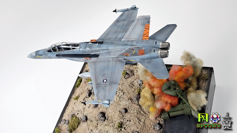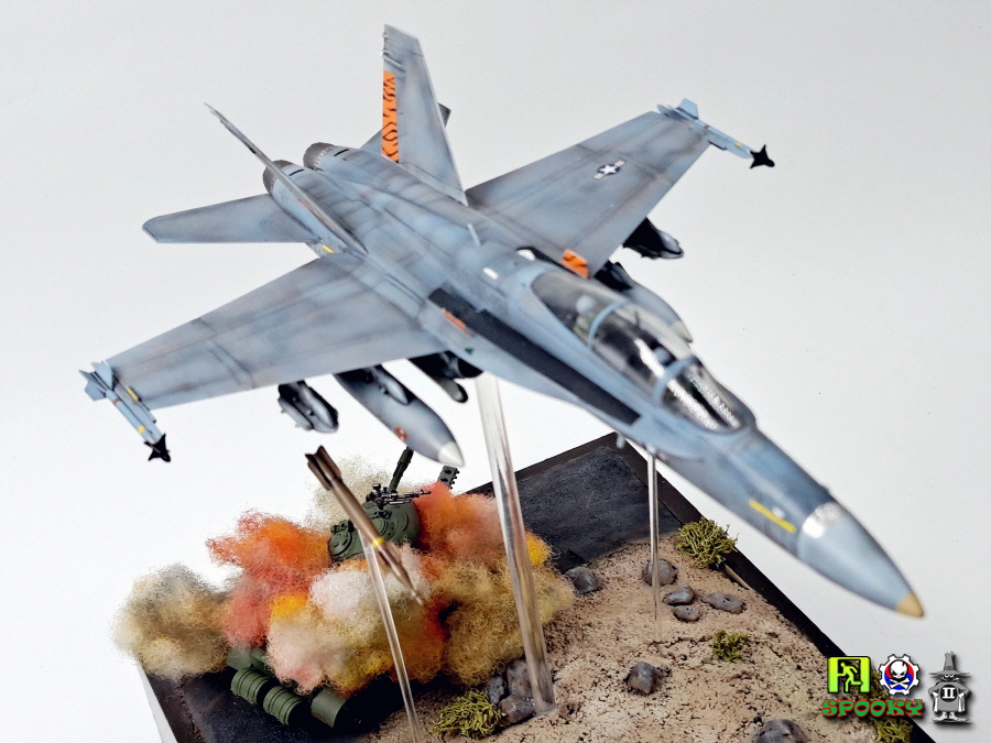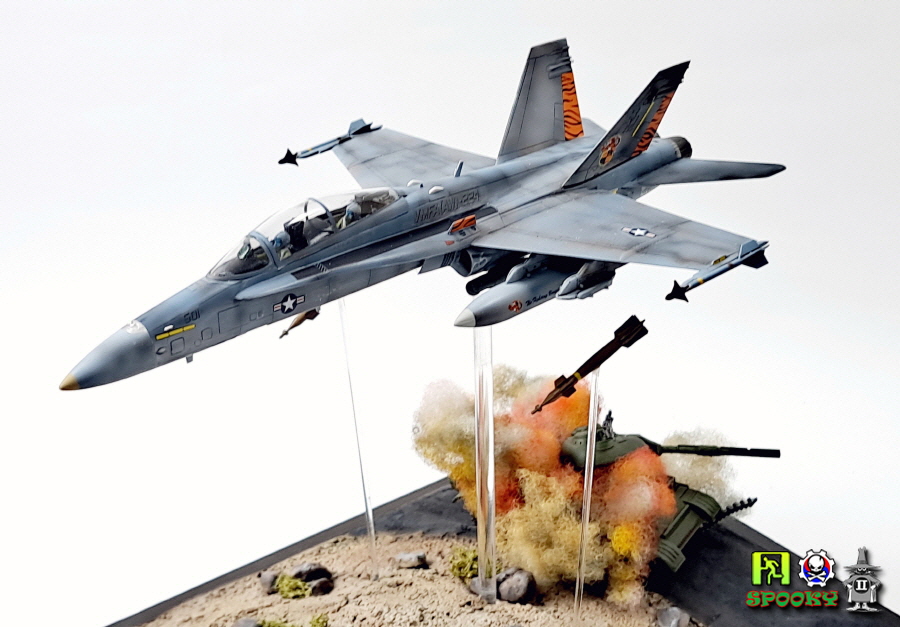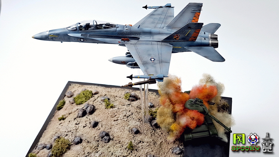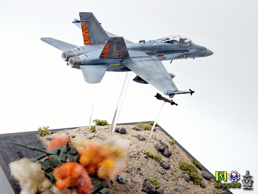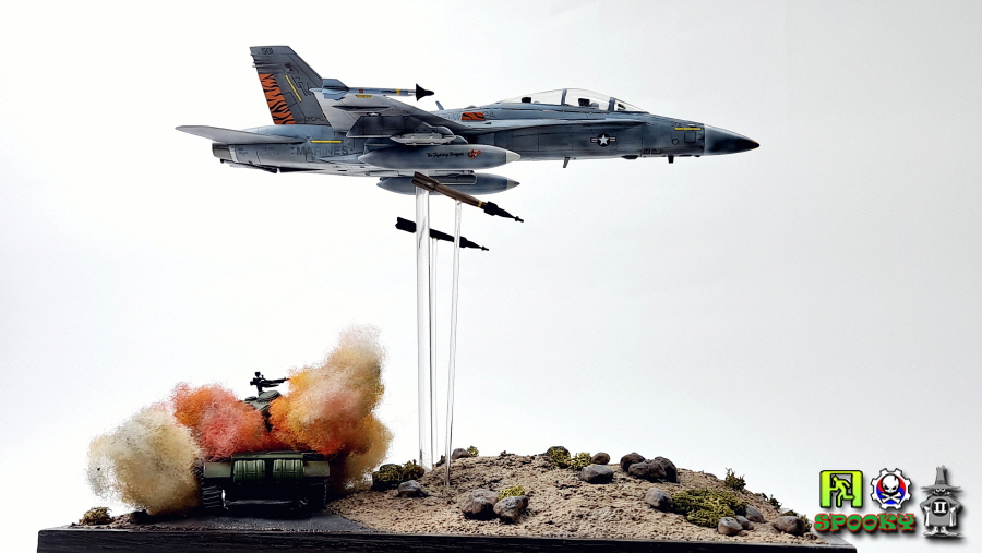 미해병대 F/A-18D가 레이저유도폭탄으로 적 전차 뚜껑을 따는 장면을 만들어보았습니다.