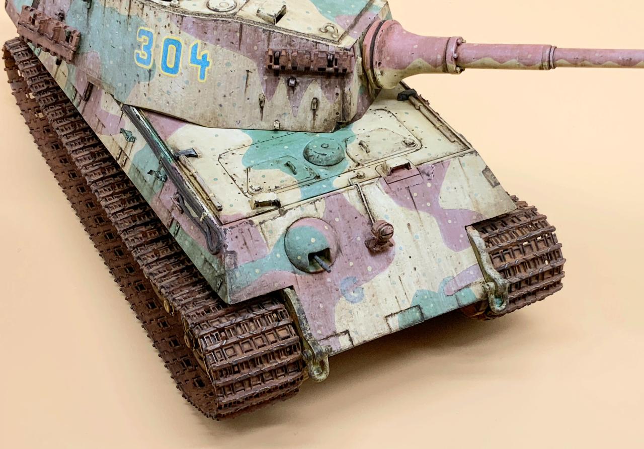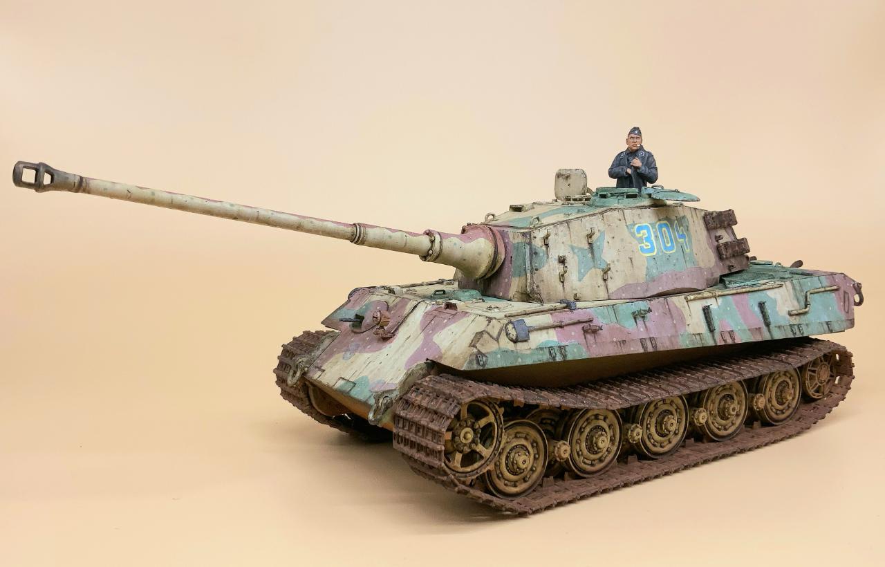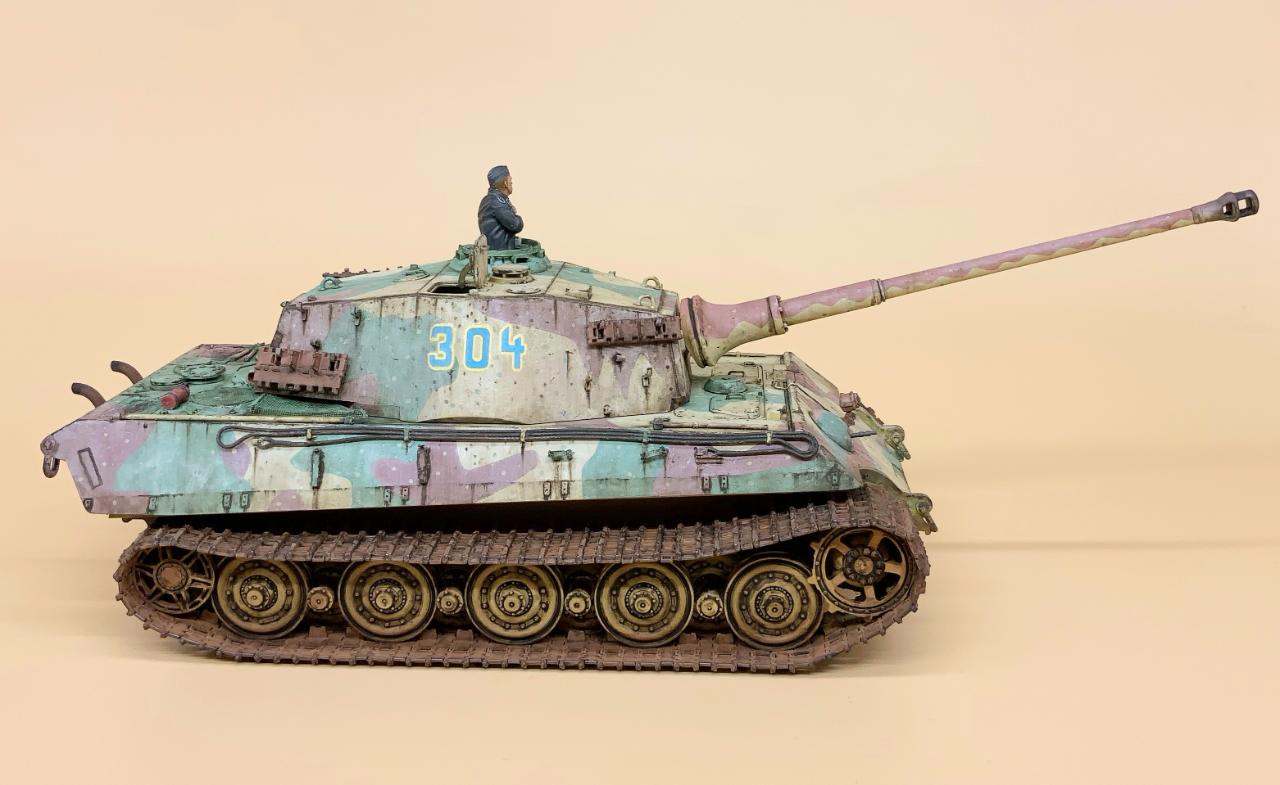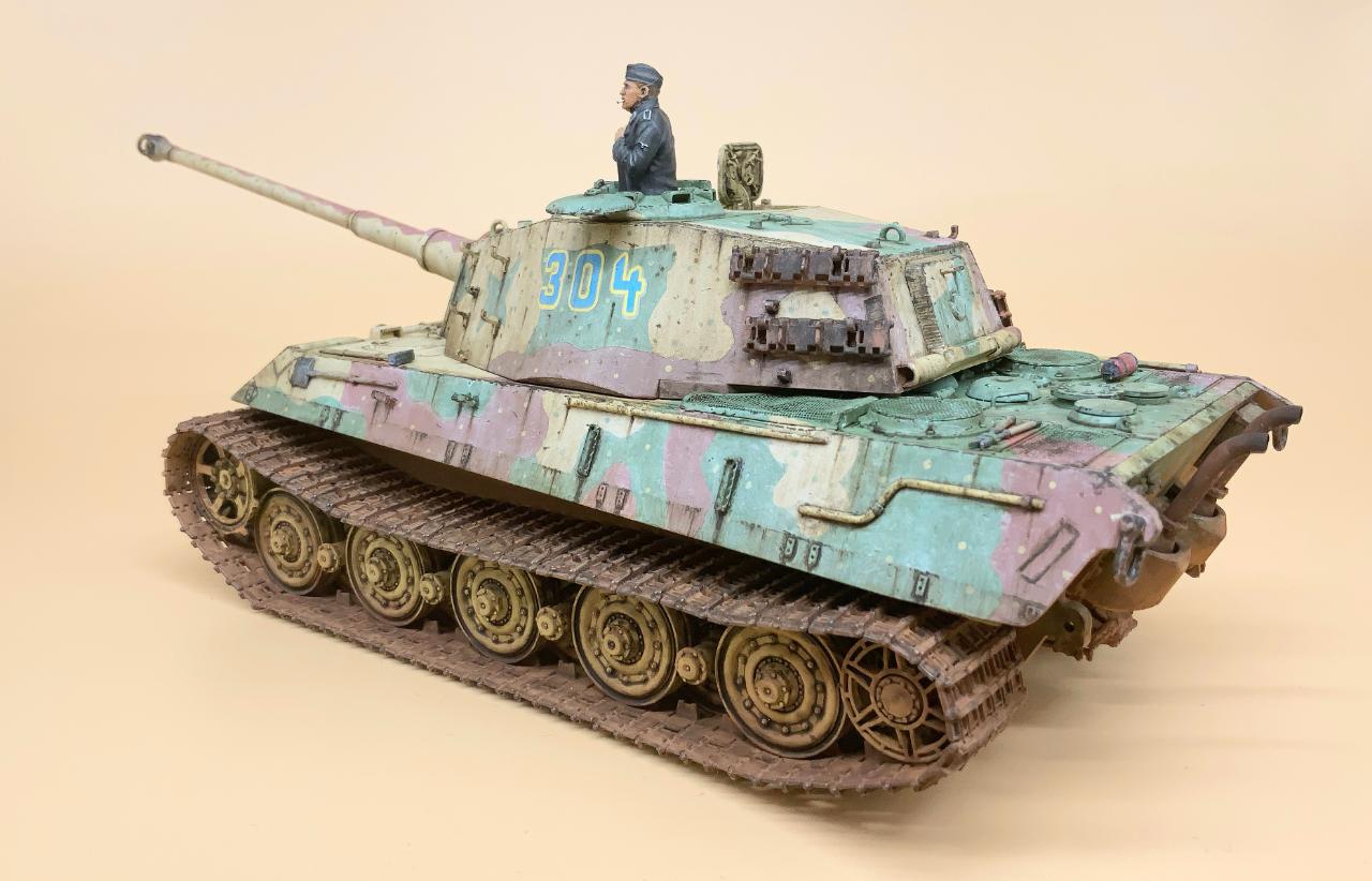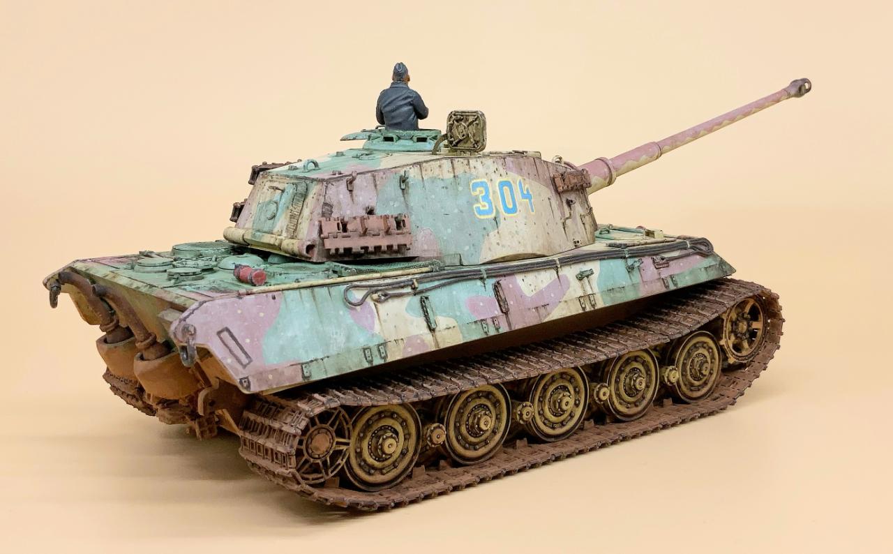 1998년 유로밀리테어에 선보이며 전차 웨더링에 대한 새로운 화두를 제시했던 Mirko Bayerl의 작품을 모티브로 만들어 본 아르덴느 전선의 킹타이거입니다. 푸른 바다색의 마킹이 박힌 hard edge위장의 킹타이거를 꼭 만들어보고 싶었습니다.TAMIYA의 아르덴느 전선 킹타이거에 Aber에칭,타미야 별매궤도를 사용했습니다. 압연강판 표현때문에 드레멜도 샀네요...험브롤 기본도색 후 탈색느낌을 주기위해 유화물감으로 수차례 white fading을 시행하였습니다. 작품 만드는 동안 퇴근만을 기다리던 즐거운 시간이었습니다. 즐겁게 감상해주시면 감사하겠습니다.