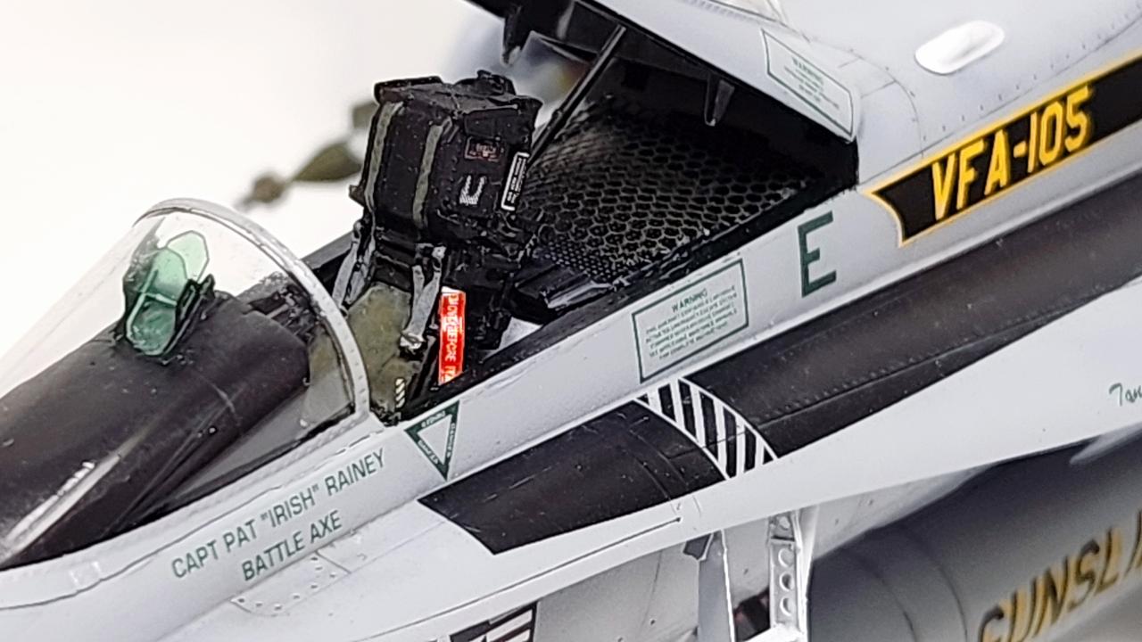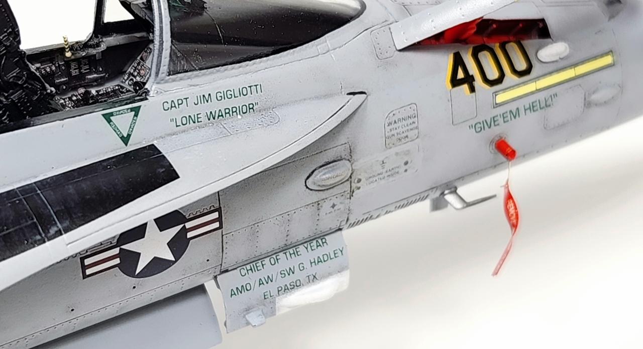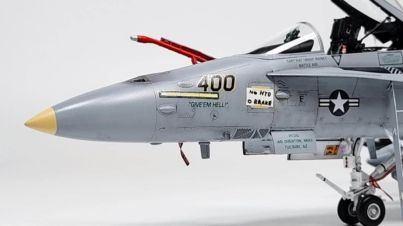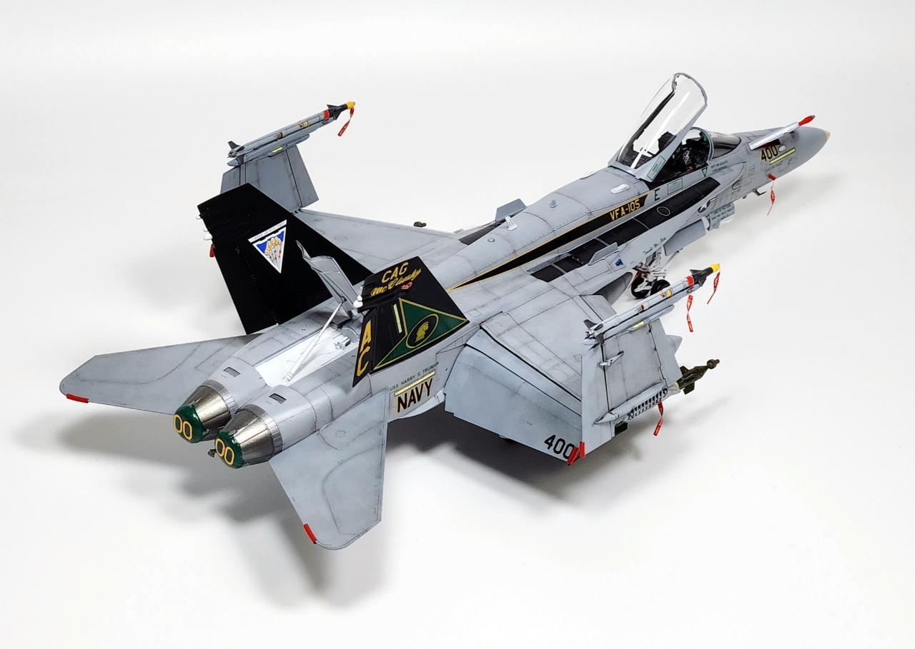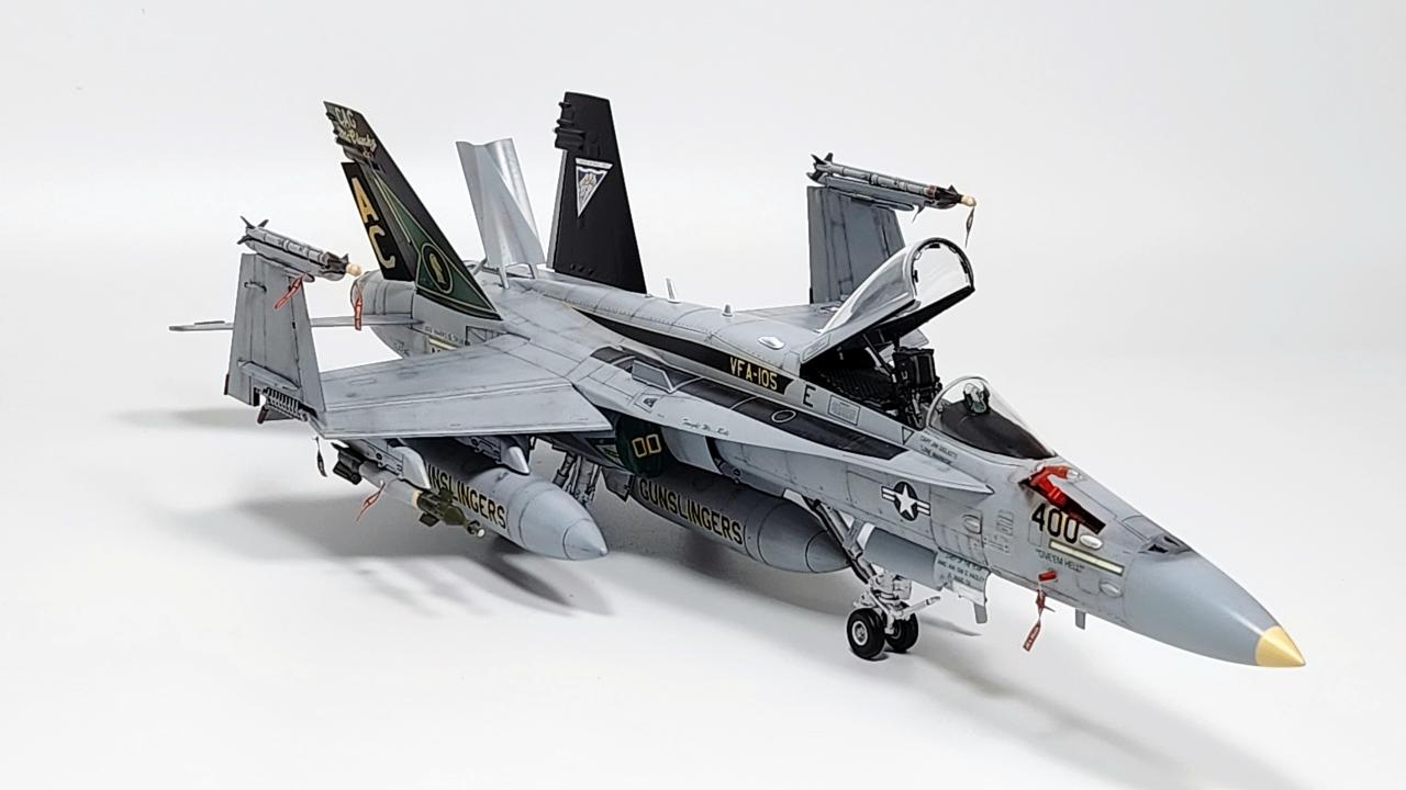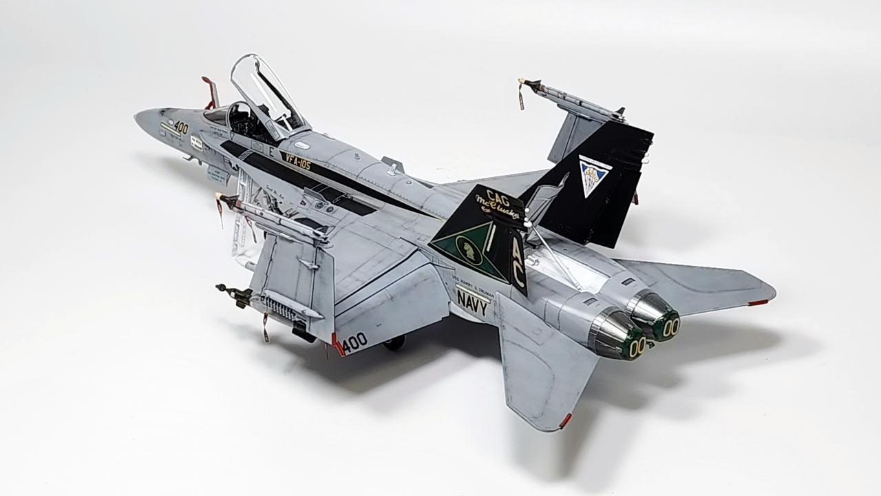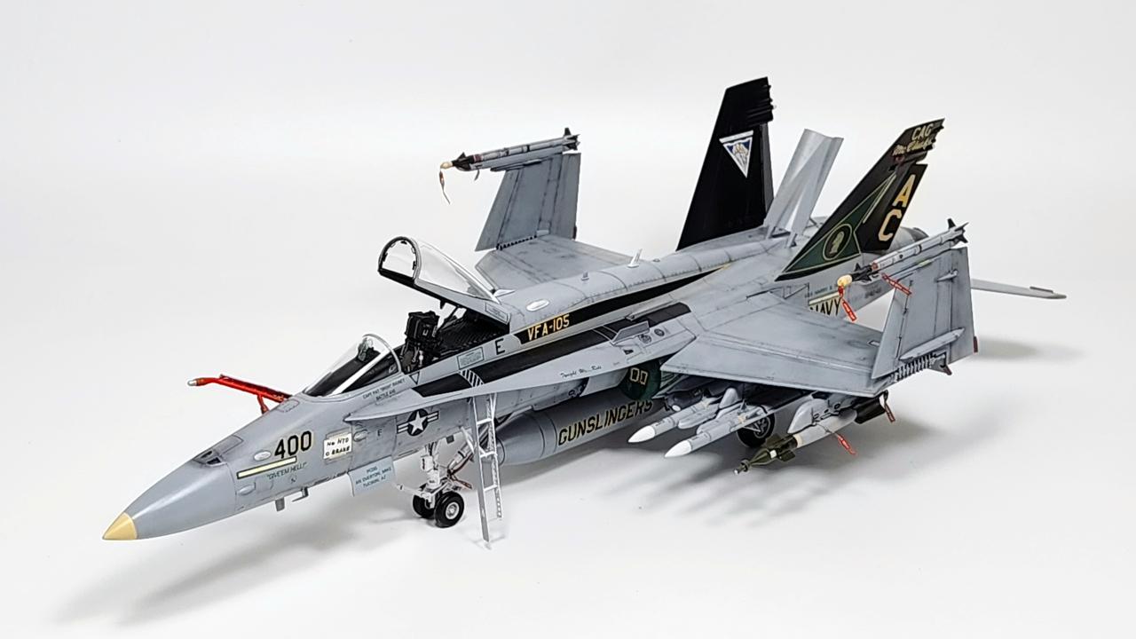 원래는 VFA-34 Blue Blasters의 2017년 Last Flight CAG로 제작하고 싶었으나 마땅한 데칼을 구하지 못해 VFA-105로 제작하였습니다. 인테이크/배기구 FOD는 별매를 사용했습니다.