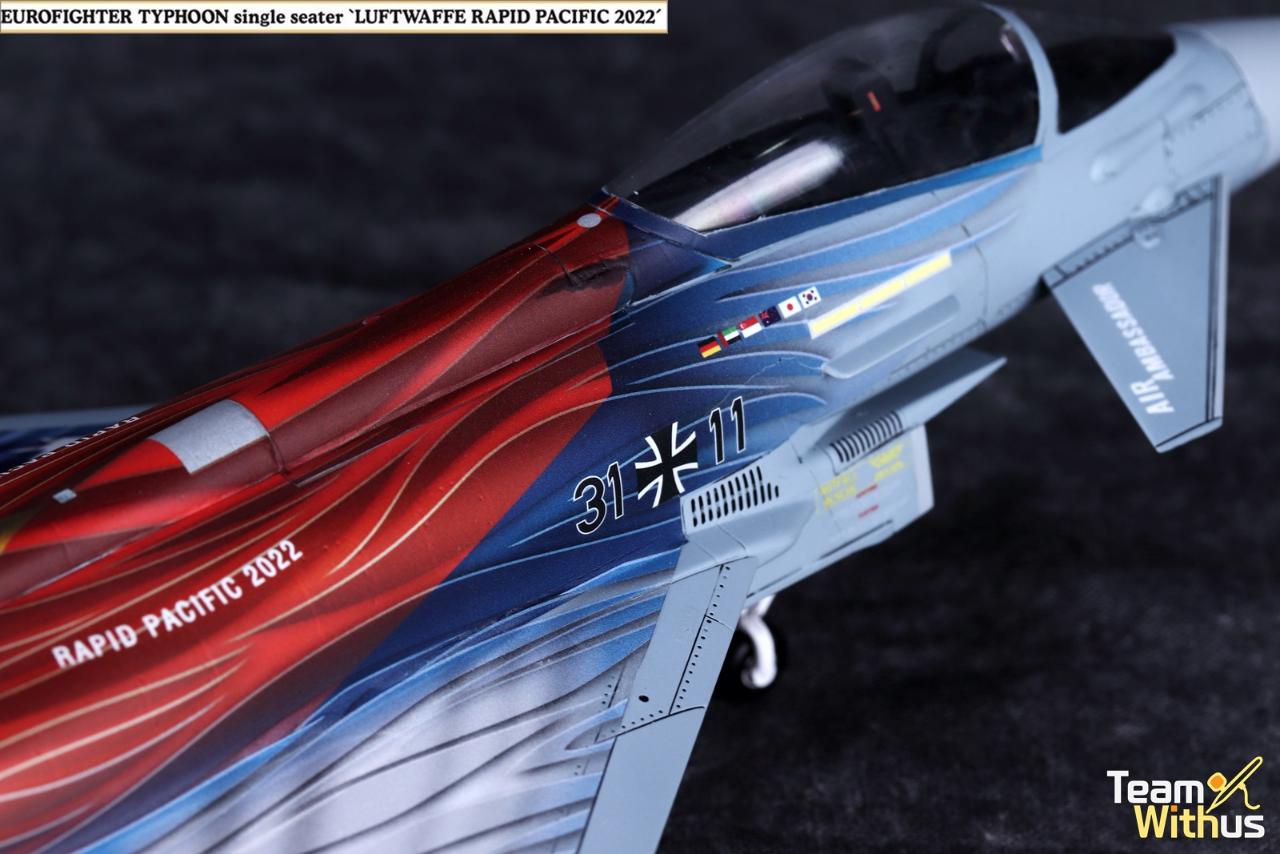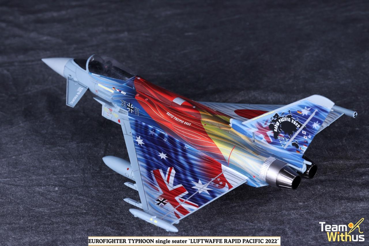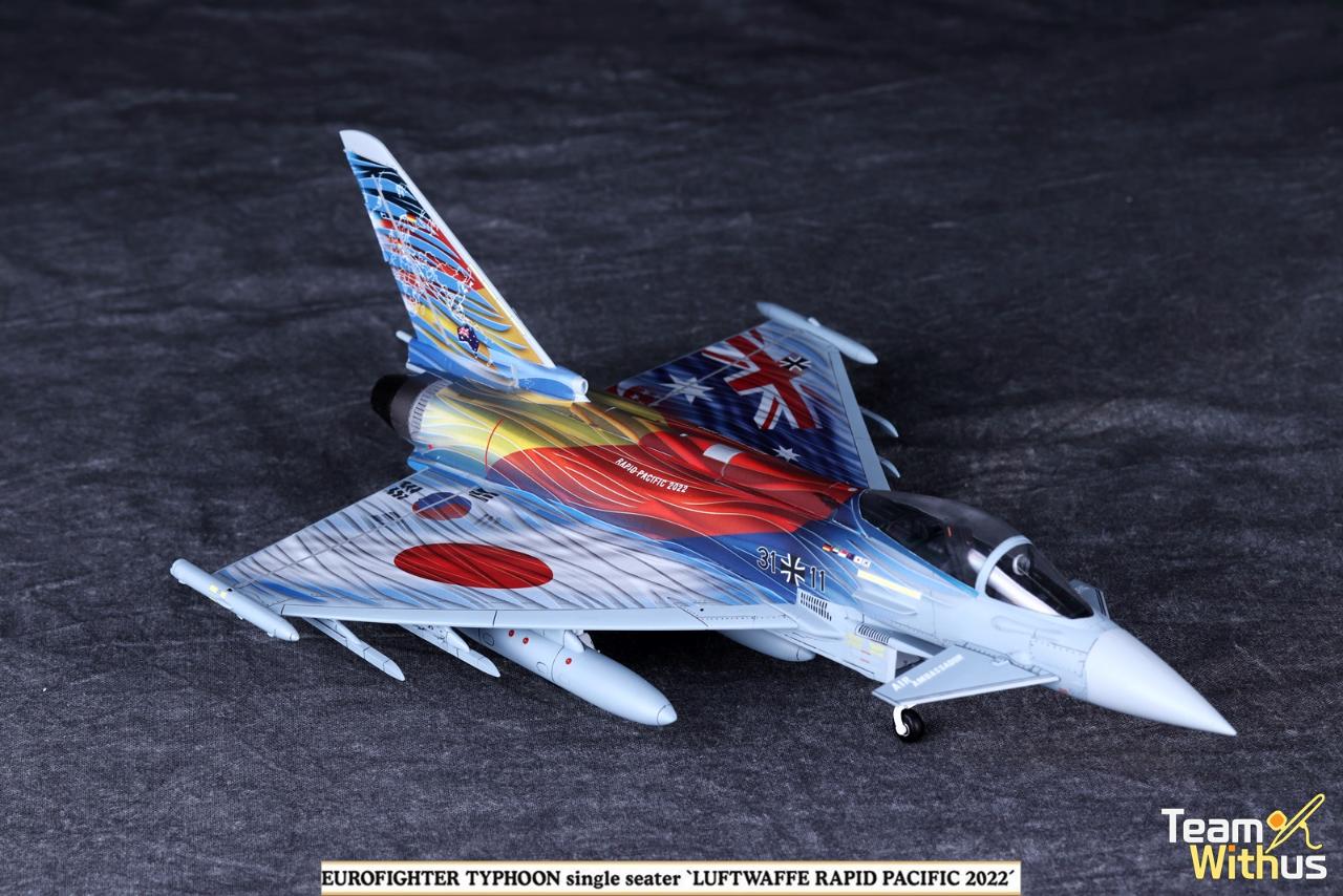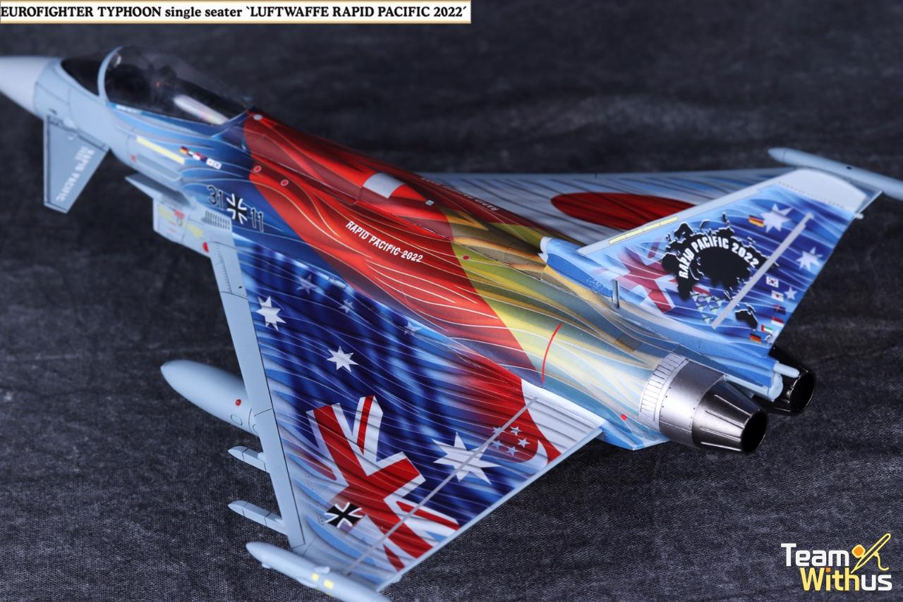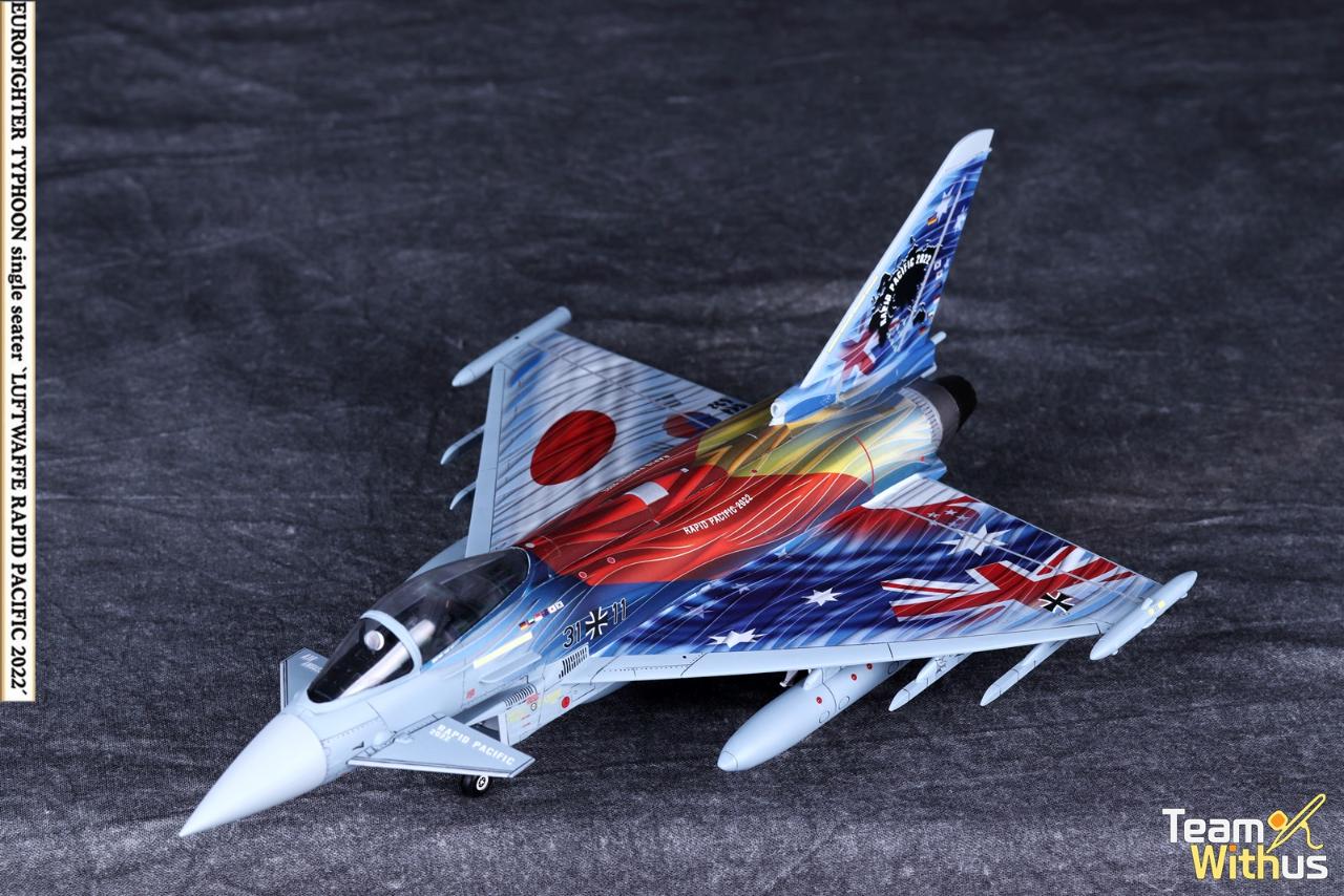 2022년 호주에서 실시된 연합 공군 훈련인 피치 블랙(Pitch Black)에 대한민국, 독일, 일본이 처음으로 참가했고 독일 공군(Luftwaffe)은 인도-태평양 지역에 전개하는 훈련인 「Rapid Pacific 2022」 훈련을 호주까지 전개했는데 그 때 참가한 유로파이터에 호주, 싱가폴, 일본, 대한민국 국기 마킹을 한 전투기를 하세가와에서 1/72 스케일로 최근에 발매해 주어 기쁜 마음으로 제작해 보았습니다.
