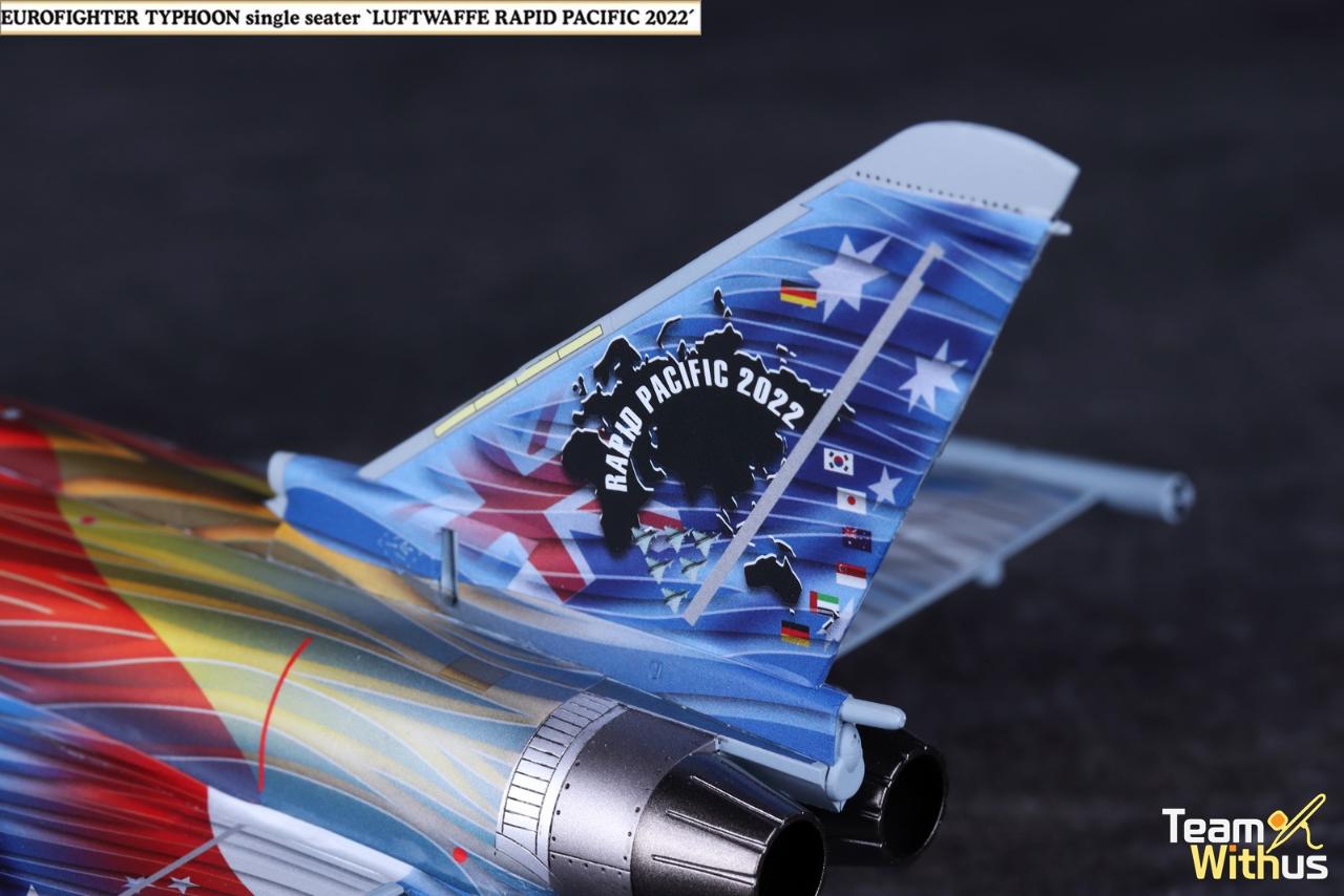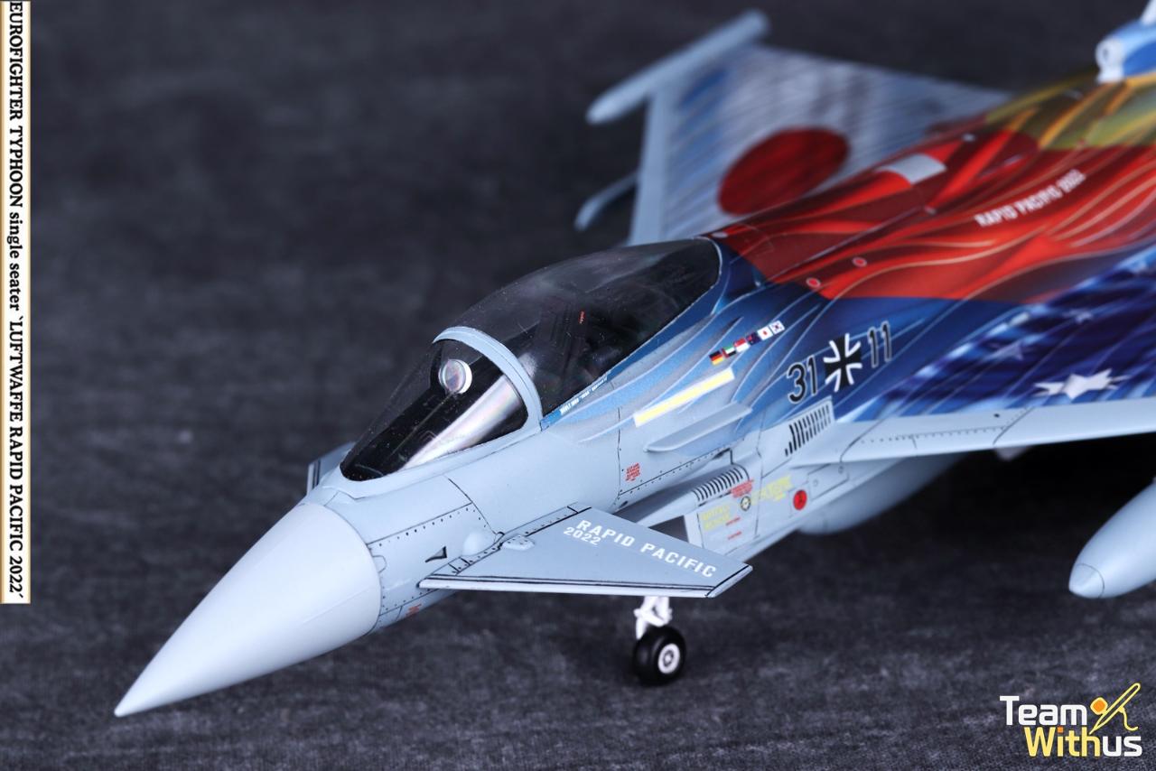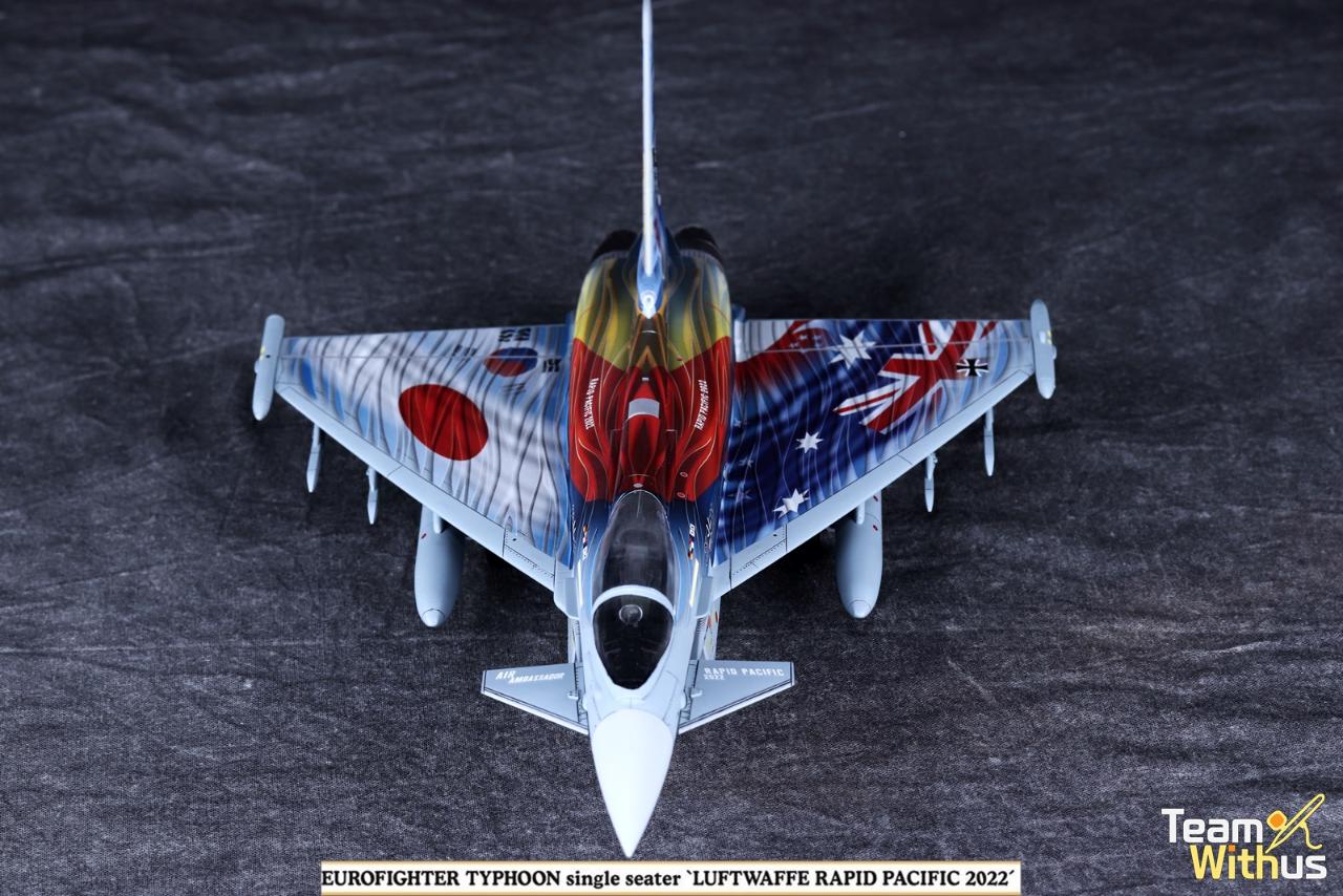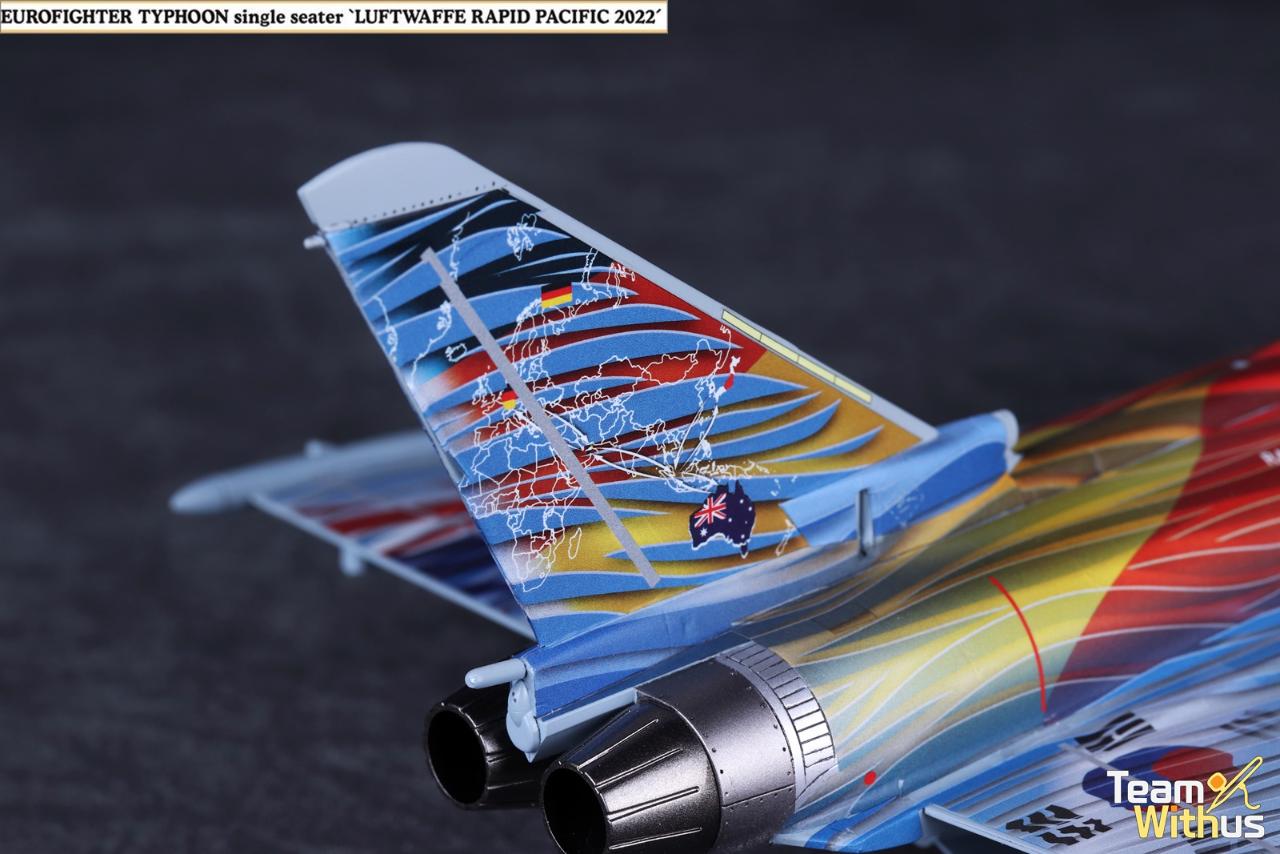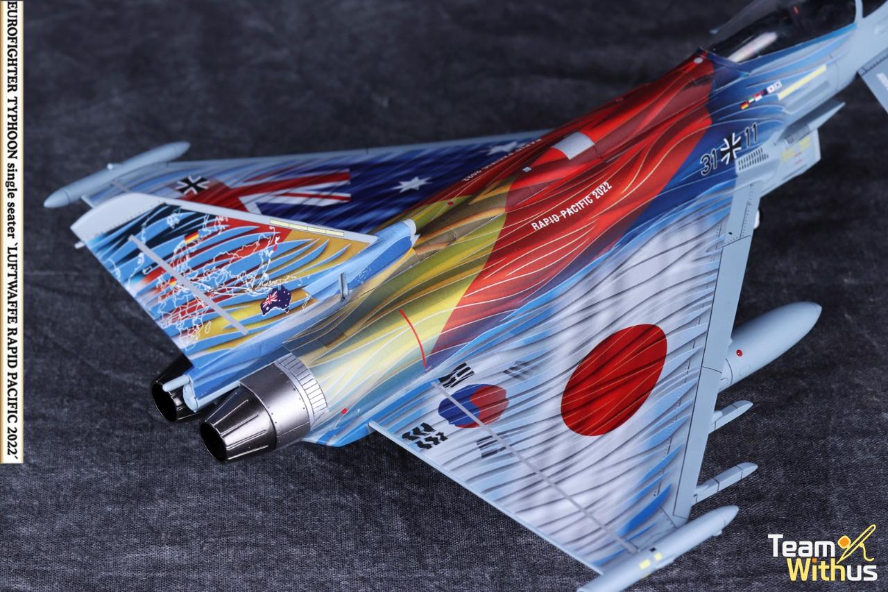 2022년 호주에서 실시된 연합 공군 훈련인 피치 블랙(Pitch Black)에 대한민국, 독일, 일본이 처음으로 참가했고 독일 공군(Luftwaffe)은 인도-태평양 지역에 전개하는 훈련인 「Rapid Pacific 2022」 훈련을 호주까지 전개했는데 그 때 참가한 유로파이터에 호주, 싱가폴, 일본, 대한민국 국기 마킹을 한 전투기를 하세가와에서 1/72 스케일로 최근에 발매해 주어 기쁜 마음으로 제작해 보았습니다.