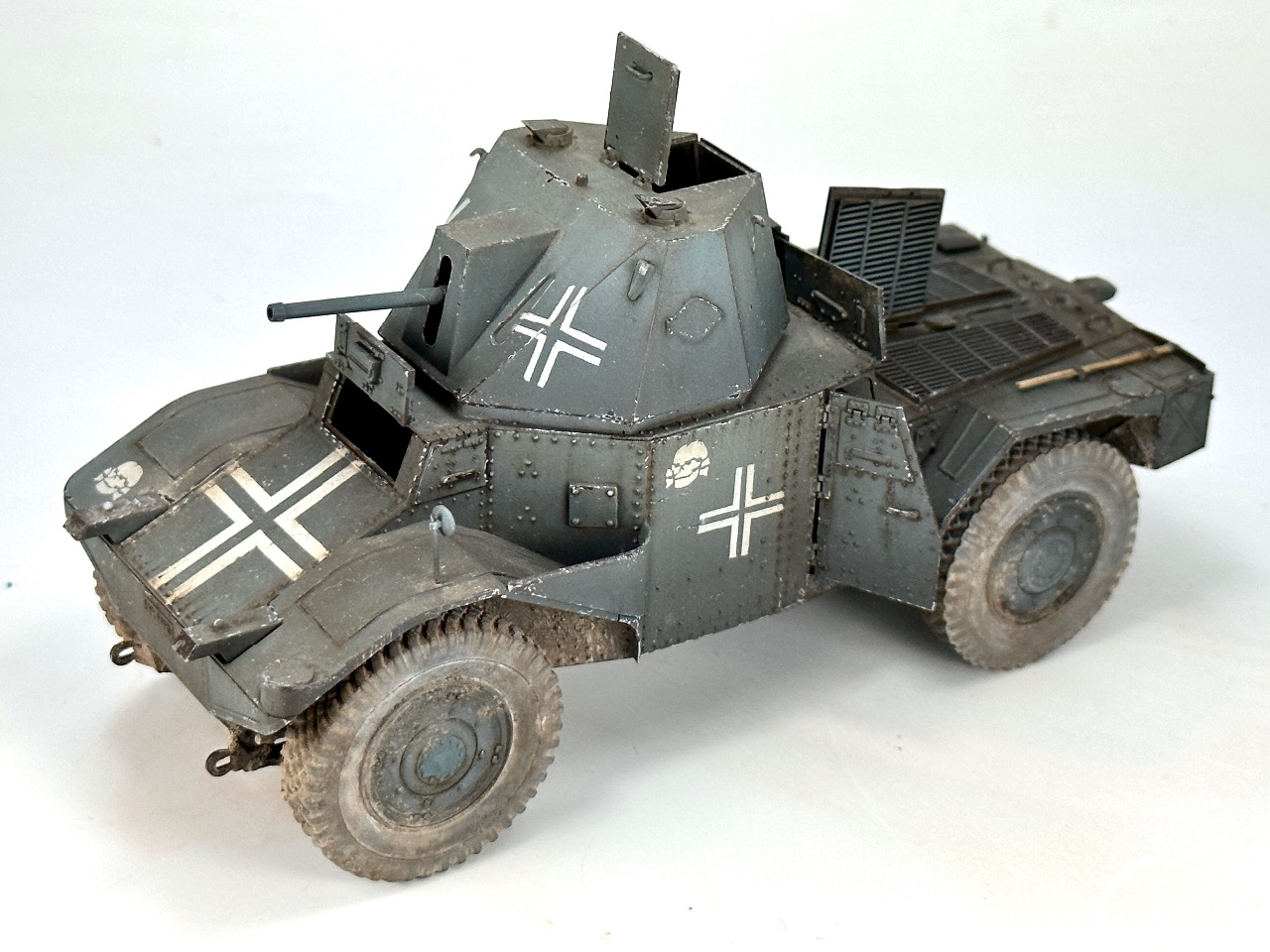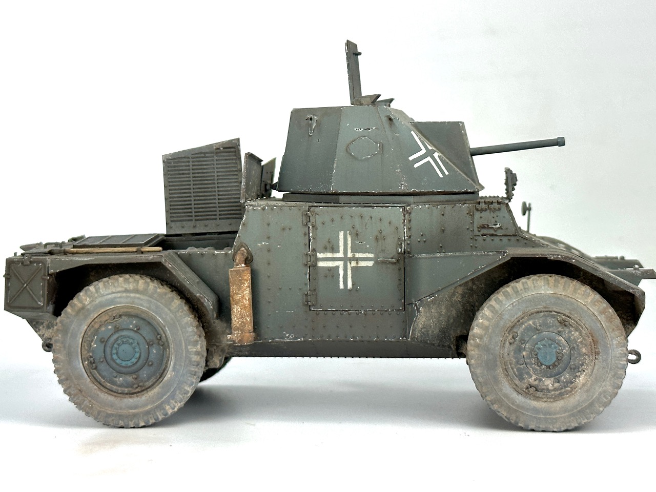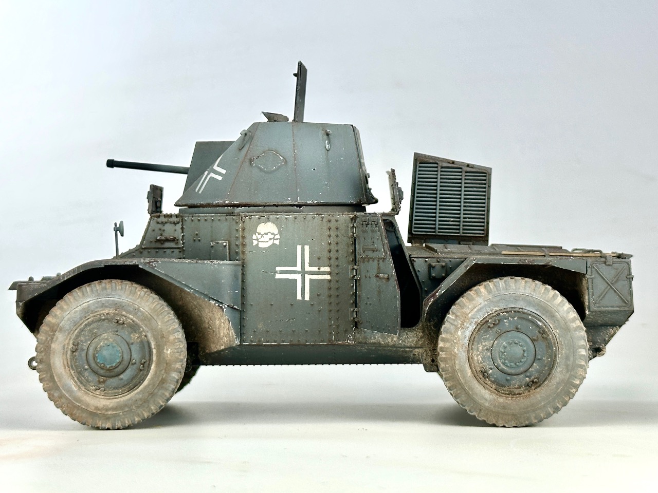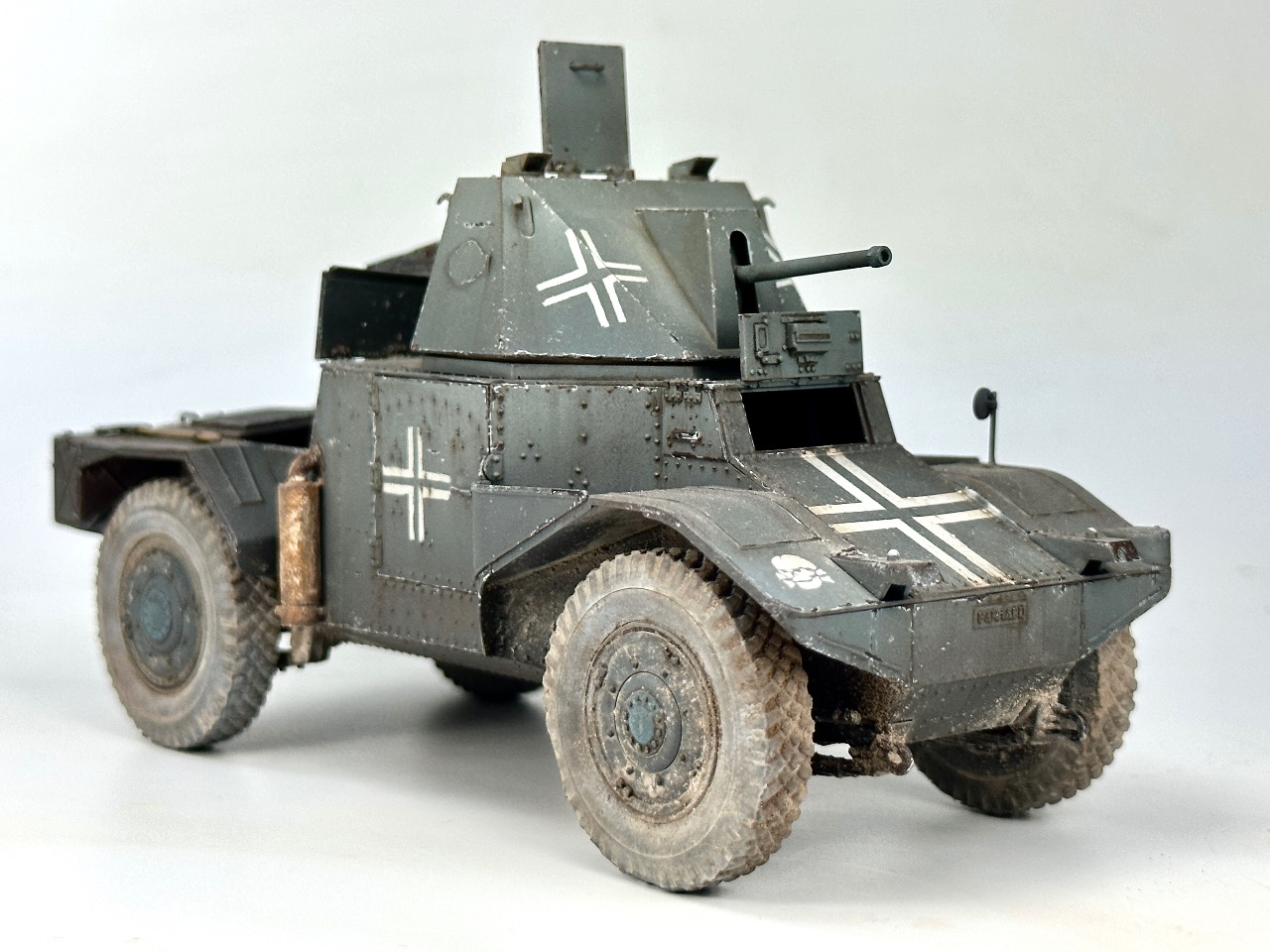 1/35 스케일 ICM의 파나르 장갑차 독일군 버전입니다 마이너하게 CDM 포탑이 올라간 버전으로 만들었고 급조하여 노획마킹을 진행한 상태로 만들어서 라이센스 플레이트도 넣지 않았습니다 (실사진에서 이렇게 급하게 피아식별 하기 위해 국적마킹을 크게 그려넣는 경우가 많더라구요)