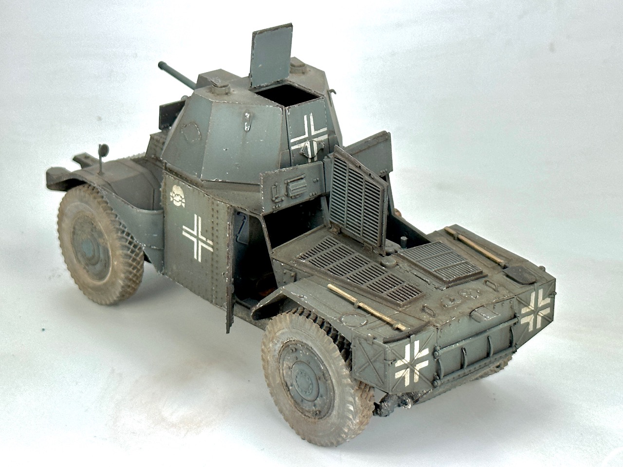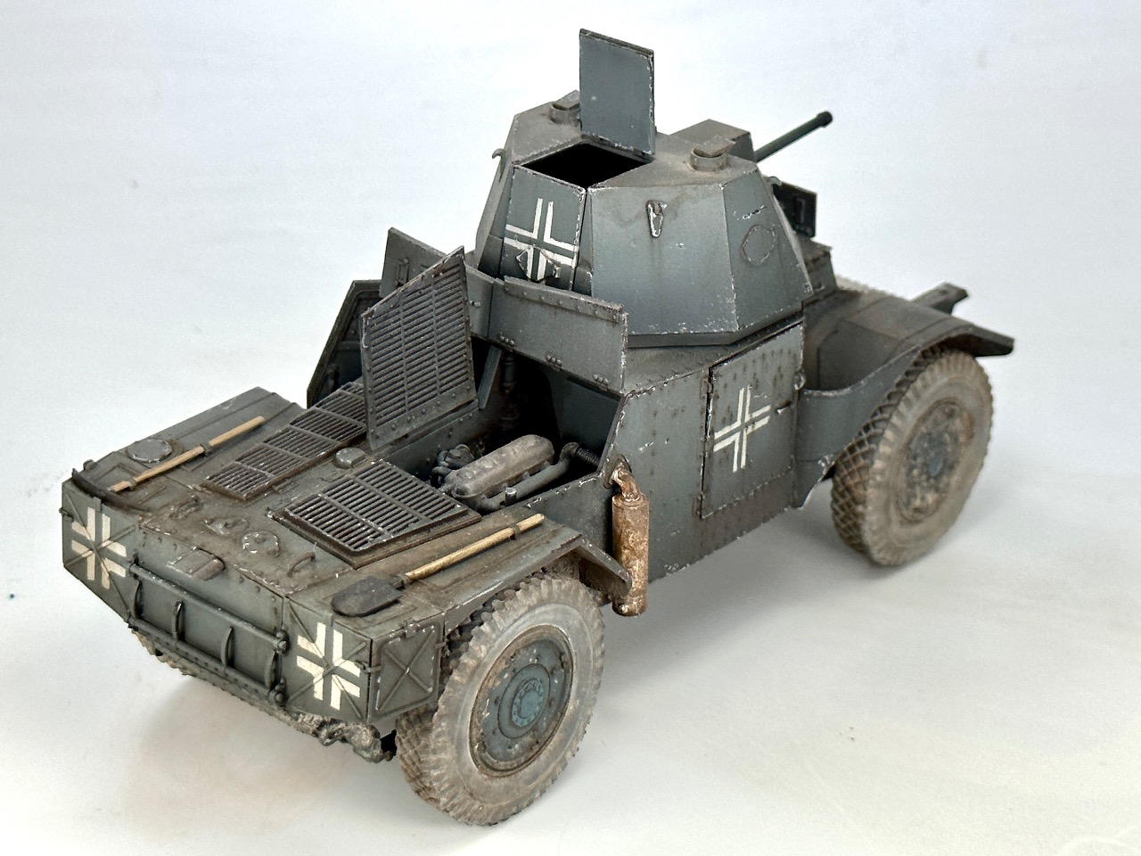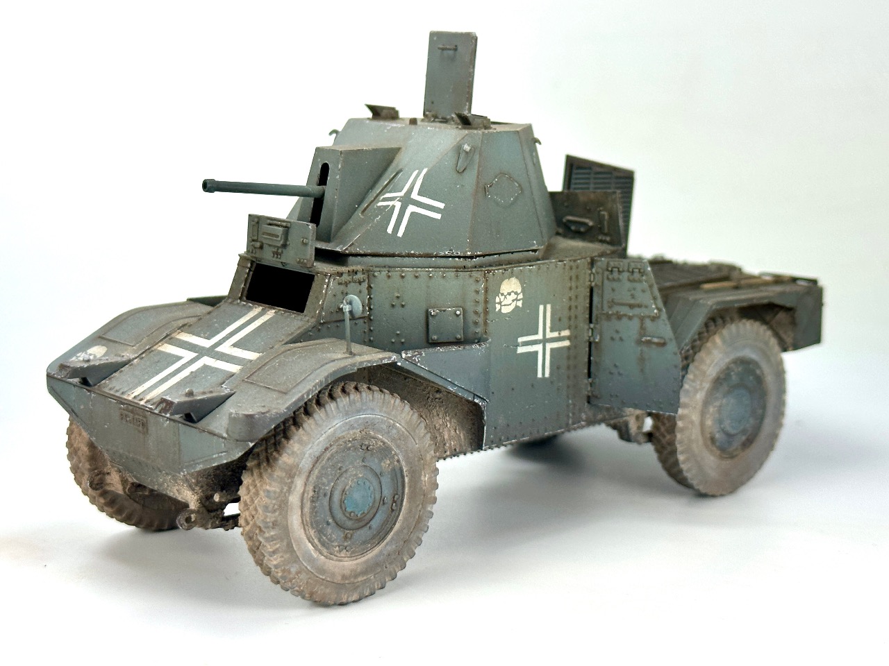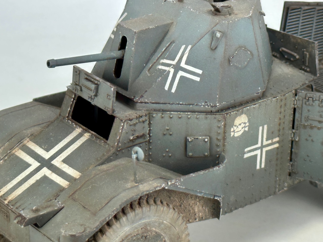 1/35 스케일 ICM의 파나르 장갑차 독일군 버전입니다 마이너하게 CDM 포탑이 올라간 버전으로 만들었고 급조하여 노획마킹을 진행한 상태로 만들어서 라이센스 플레이트도 넣지 않았습니다 (실사진에서 이렇게 급하게 피아식별 하기 위해 국적마킹을 크게 그려넣는 경우가 많더라구요)