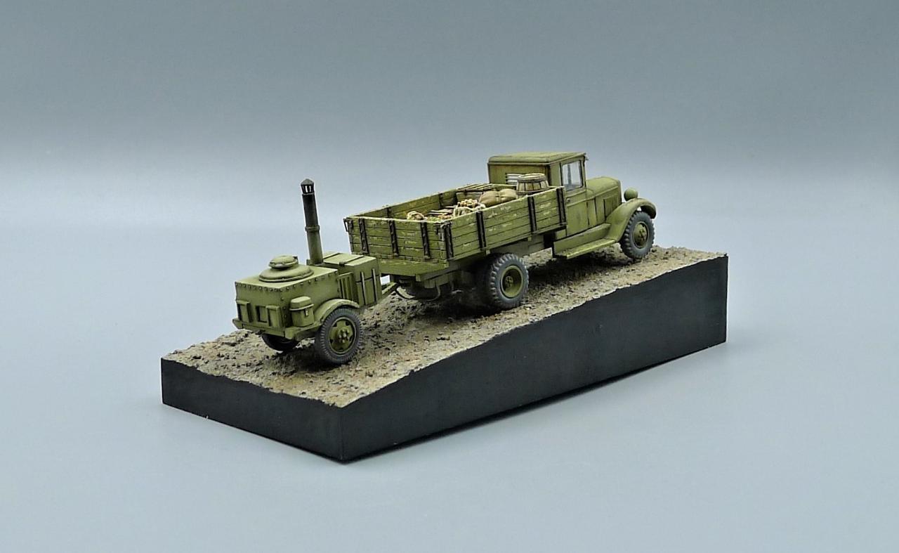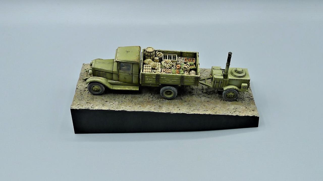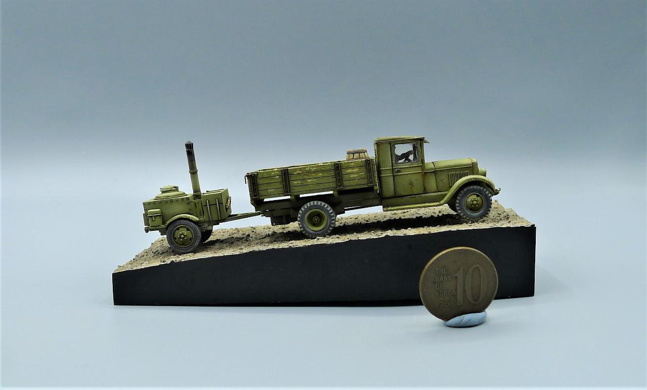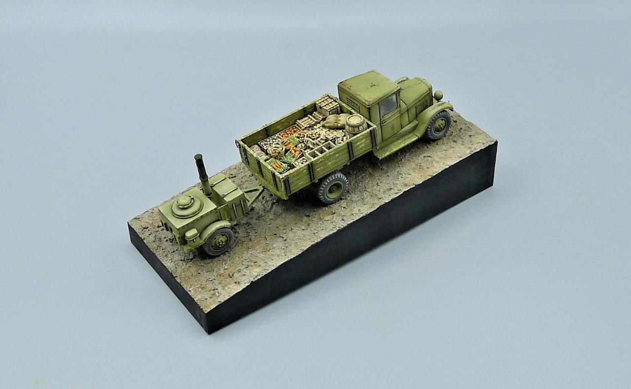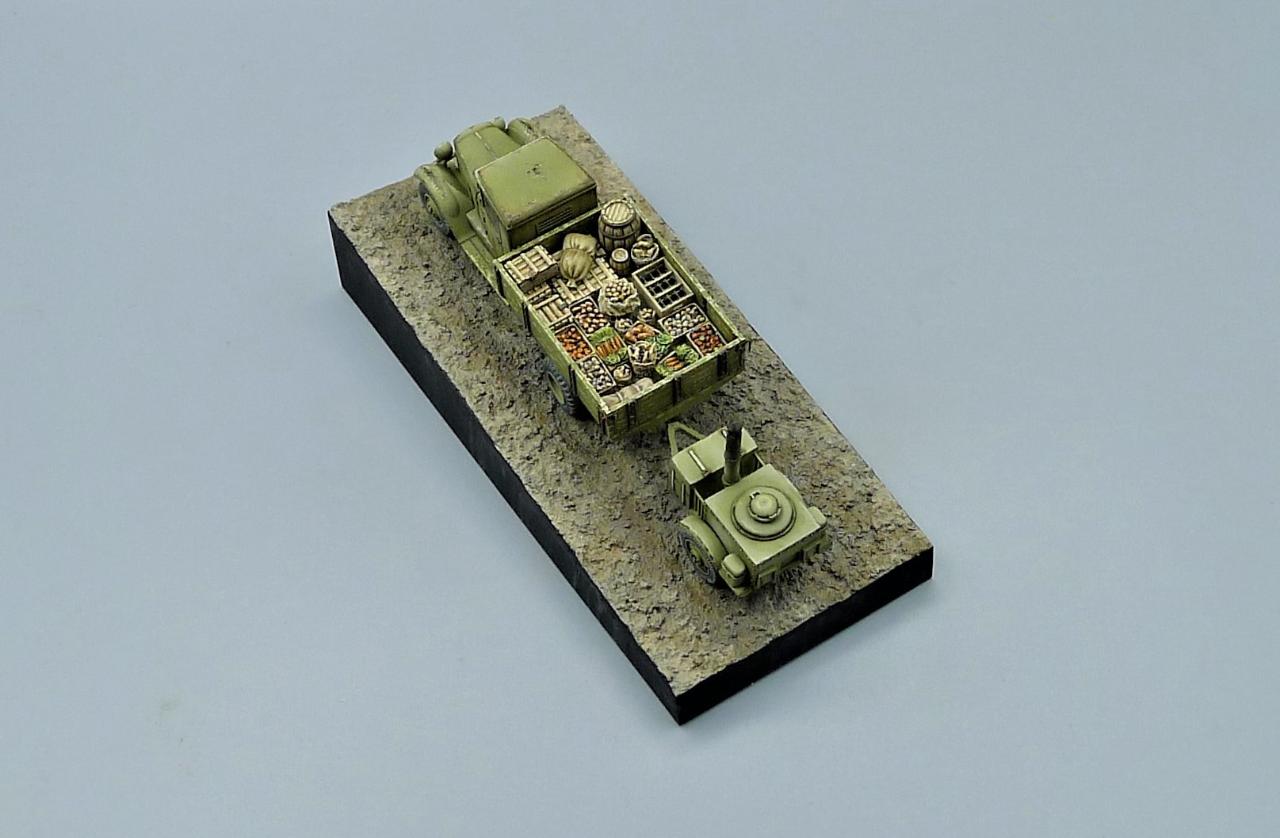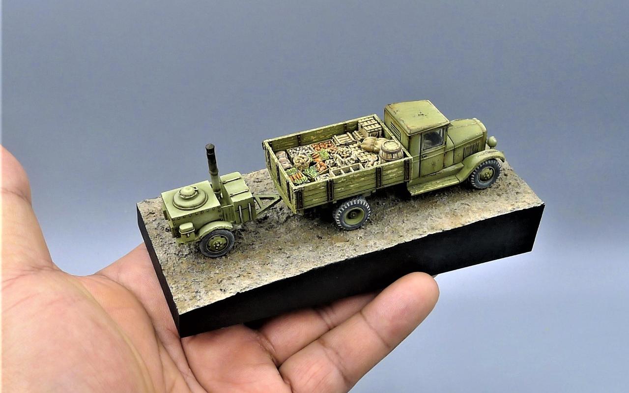오랜만에 인사드립니다.소련군 ZIS-5 트럭과 PK-43이라는 필드키친세트에 악세서리를 올려보았습니다. ZIS-5트럭은 PST제품이며 SG Modeling이라는 동구권 제조 에칭으로 일부 대체했으며 타이어의 무늬를 파주고 트럭적재함부분을 나뭇결무늬로 긁어주는 등 부족한 부분을 표현해주었고 PK-43필드키친은 Military Wheels제품으로 워낙 극악의 품질이라 사진자료를 보고 거의 고쳐주고 두개의 바퀴는 UM사의 휠을 가져왔습니다. 그 외 모아두었던 식자재,박스 나무드럼통따위의 악세사리를 배치해주었고 사진상으로는 안 보이는데 3D프린팅 운전수 인형을 넣었습니다. 봐주셔서 감사합니다~!