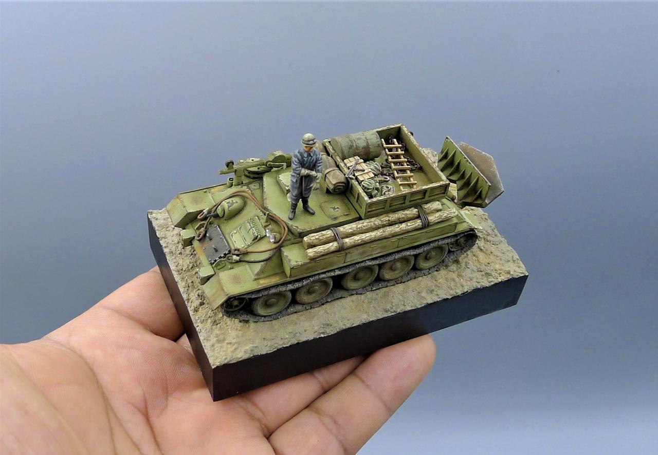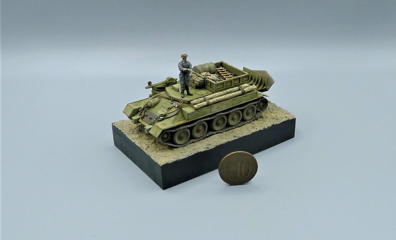 안녕하세요. 2000년대 초중반 쯤 국내에 수입되었던 극악의 밀리터리 휠즈 제품을 가지고 레벨T-34의 차체를 이용해 만들었습니다. 꽤 오래기간 장기숙성하던건데 졸작이나마 이렇게 털어낼 수 있어서 좋네요. 여기저기 따온 악세사리와 프레이저 인형하나 추가했습니다. 요즘 색칠에 큰 벽을 느끼고 있네요. 봐주셔서 감사합니다~!