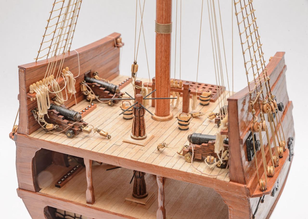 소감은 목범선 선체 제작시 가장 쉬운 부분만 잘라놨기에, 그냥 쌓아올리기만 해도 쉽게 완성할 수 있어서 누구나 1주일 남짓이면 완성할 수 있습니다. 또한, 가격은 싸지만 1/50 로 상당히 큰 제품이라, 동일 가격대의 입문용 키트에 비해 부속품의 종류와 디테일이 좋아서 배의 구조를 더 잘 파악할 수 있습니다.