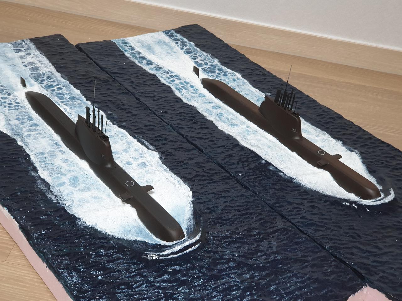 바다베이스는 지점토로 모양을 내고 아크릴 물감으로 붓칠 했습니다.