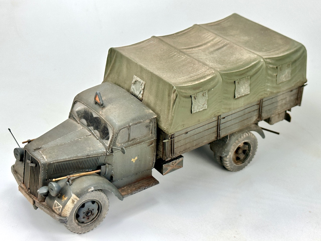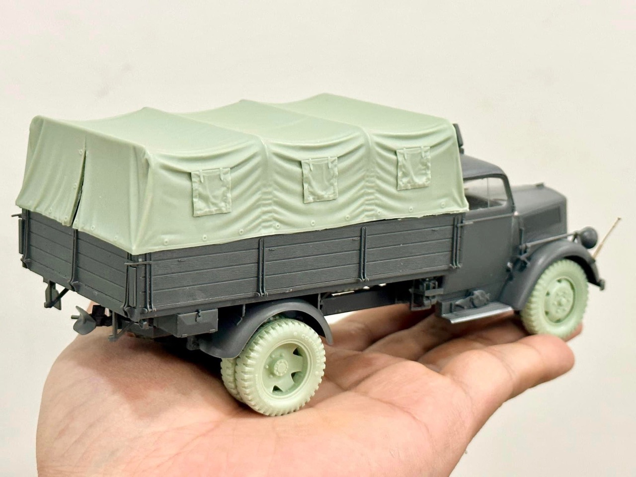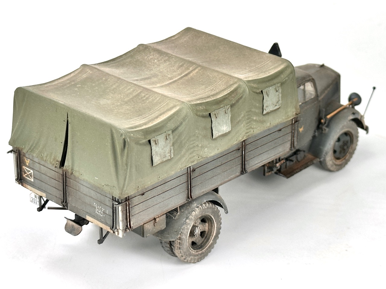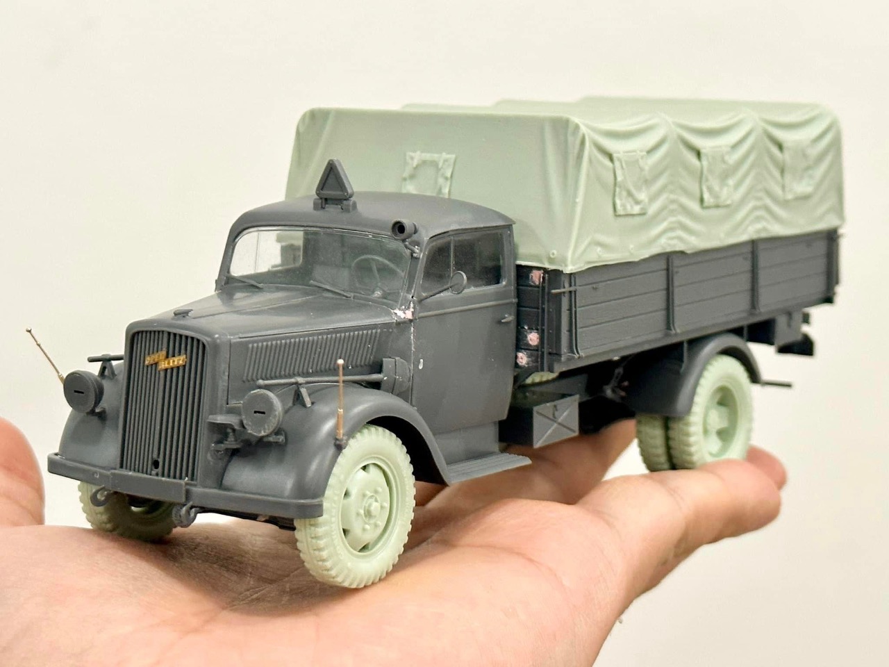 타미야 1/35 스케일 오펠트럭에 데프제약 캔버스팁과 휠을 적용하였습니다 밀리터리는 확실히 메트한 느낌만 팍 살려도 좋은 거 같습니다^^