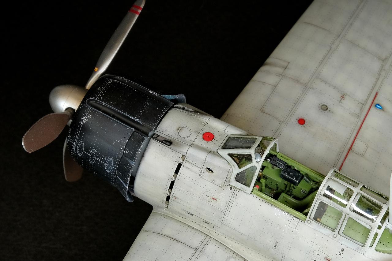 이 키트의 가장 마음에 드는 부분이 기체 전체에 촘촘하면서도 깔끔한 리벤표현인데 곡선이 풍부한 기체 실루엣에 금속의 느낌을 강하게 주는 점이 조화로웠습니다. 최근 도르니에335 기체를 작업하면서 기체 전체에 리벳팅 작업으로 고생한 기억이 남아 있어서 그런지 더욱 큰 만족감을 주는 것 같습니다.