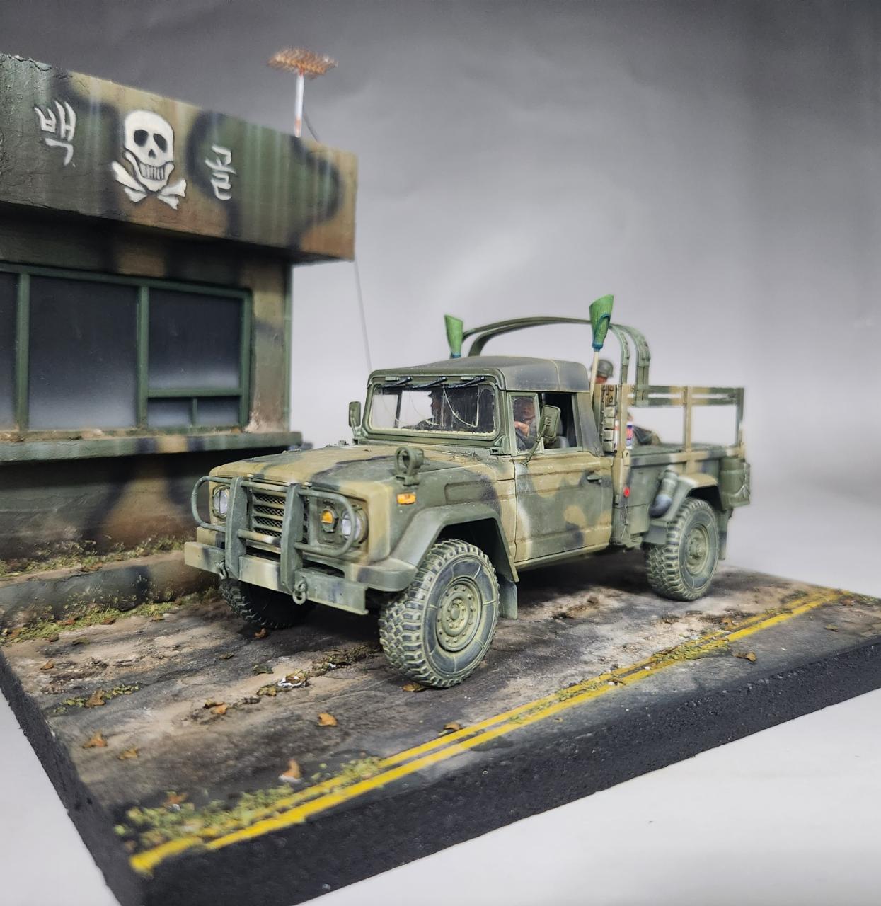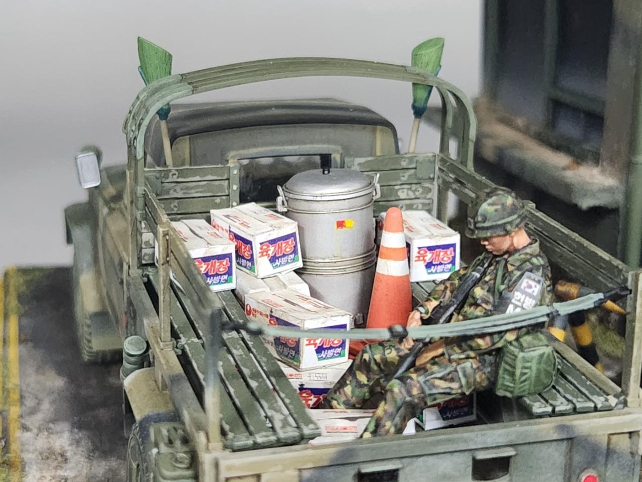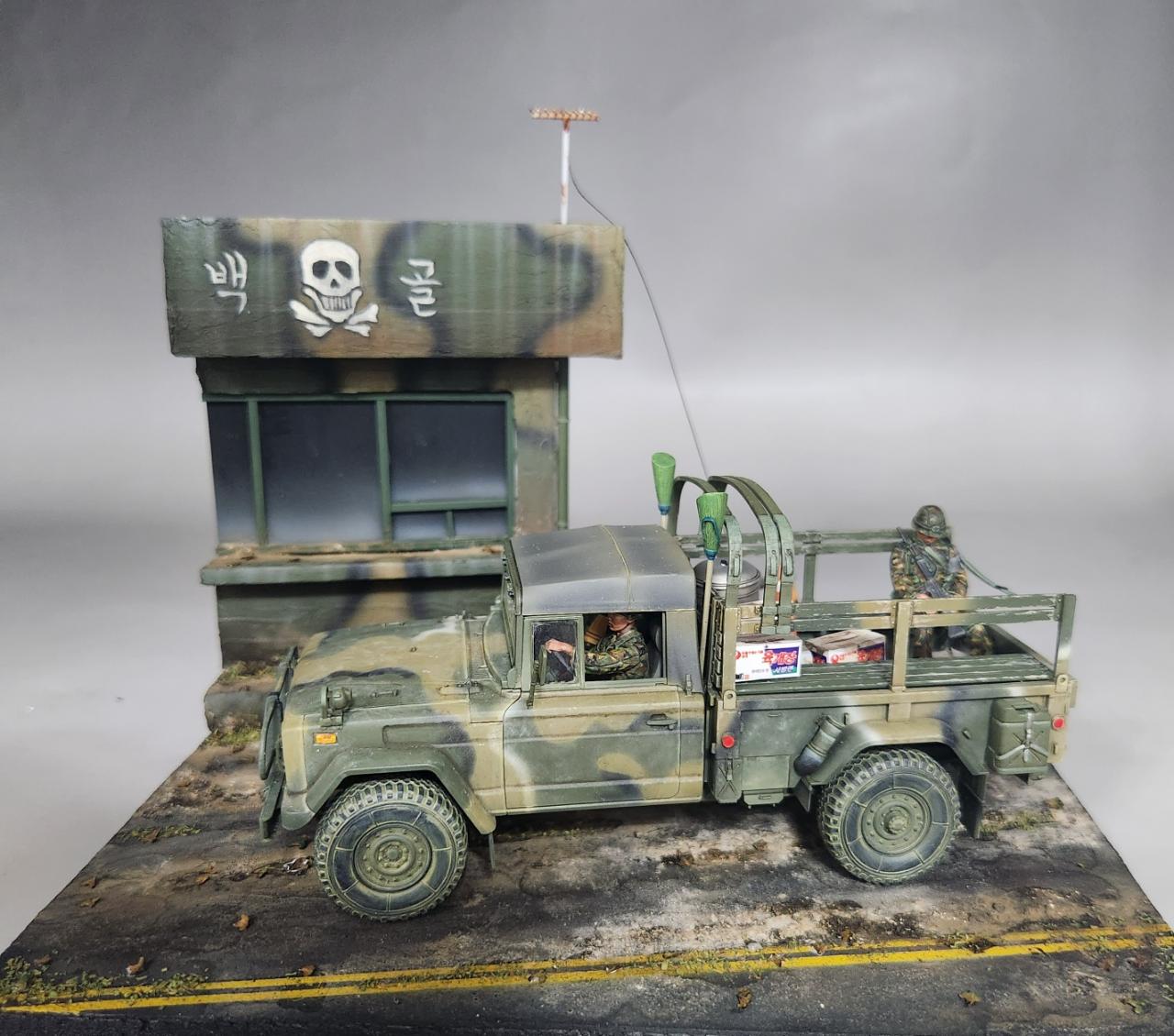 지난번에 완성한 아카데미 K311a1 차량과 H3인형을 이용하여 동원 훈련장 가는길을 한번 만들어 봤습니다