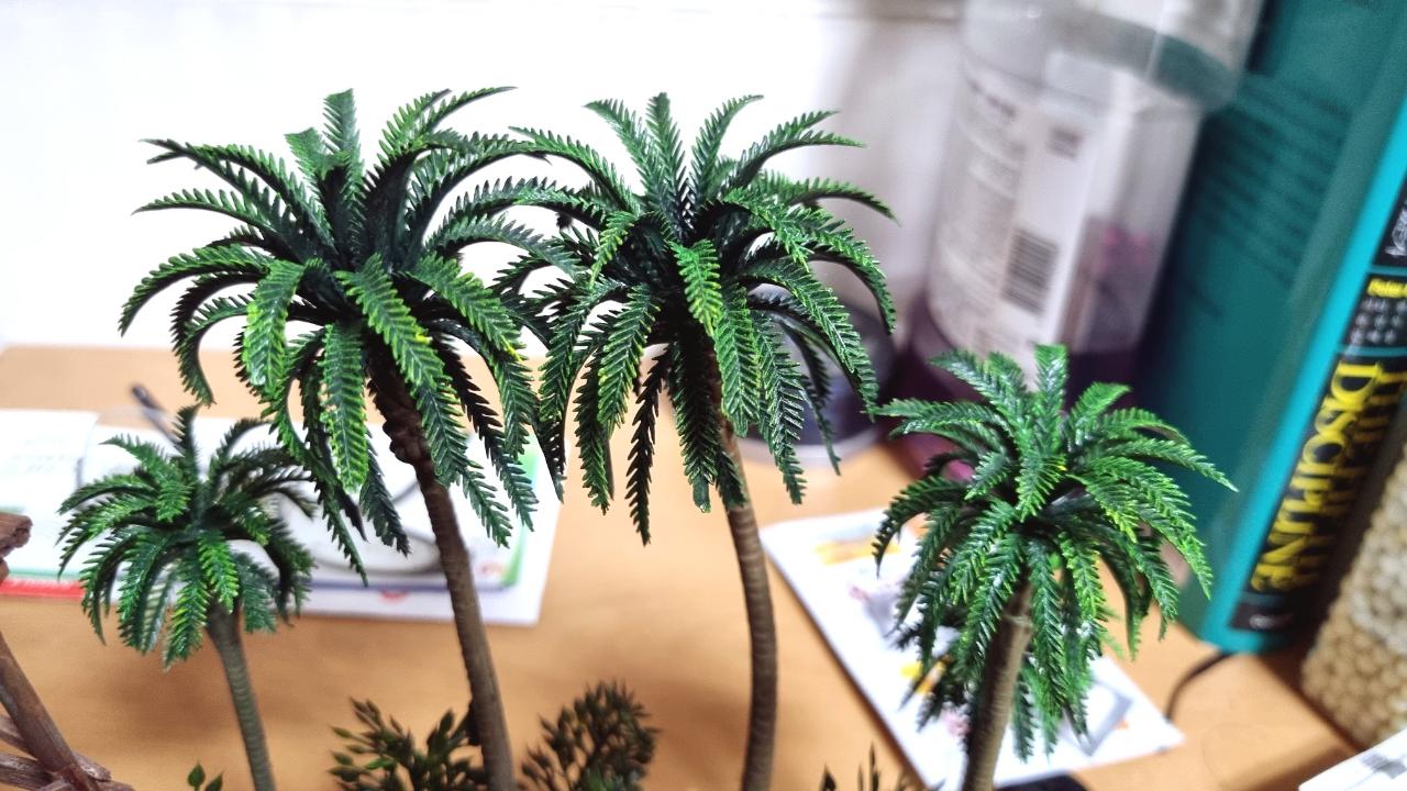 야자수는 JN그린 에나멜로 기본 칠한 위에 초록색과 노랑색 유화를 드라이 브러싱 하듯이 칠해주었더니 조금 더 파릇파릇해졌네요.