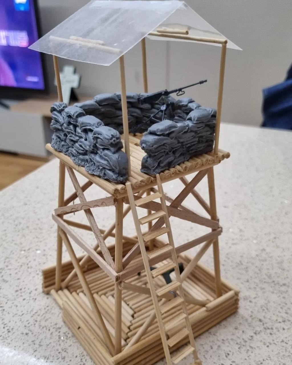 그리고 모아놓았던 너무 젓가락과 하겐다즈 아이스크림 스틱 및 샌드백 셋 그리고 클리어 파일로 실물사진을 참고로 하여 감시탑을 만들어줍니다.