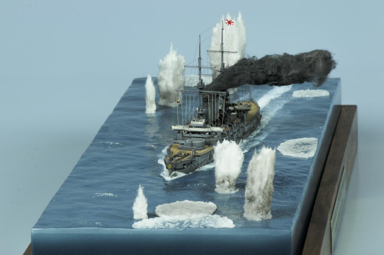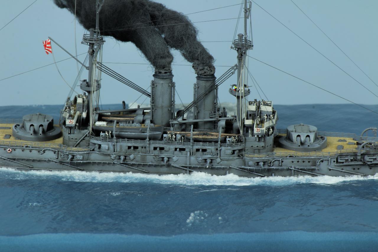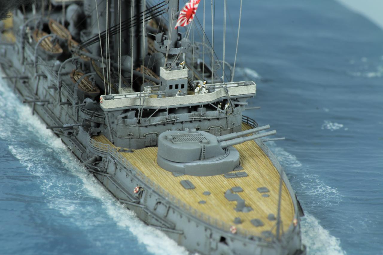 시대배경은 1905년 쓰시마해전이 열리기 1년전인 러시아함대와 처음 격돌했던 황해해전을 표현해봤는데요.굳이 황해해전을 표현한 이유는 전용에칭이 1904년 형식이어서입니다. 다른 깊은뜻은 없습니다.쓰시마해전때와는 약간의 구조물차이가 있더라고요.