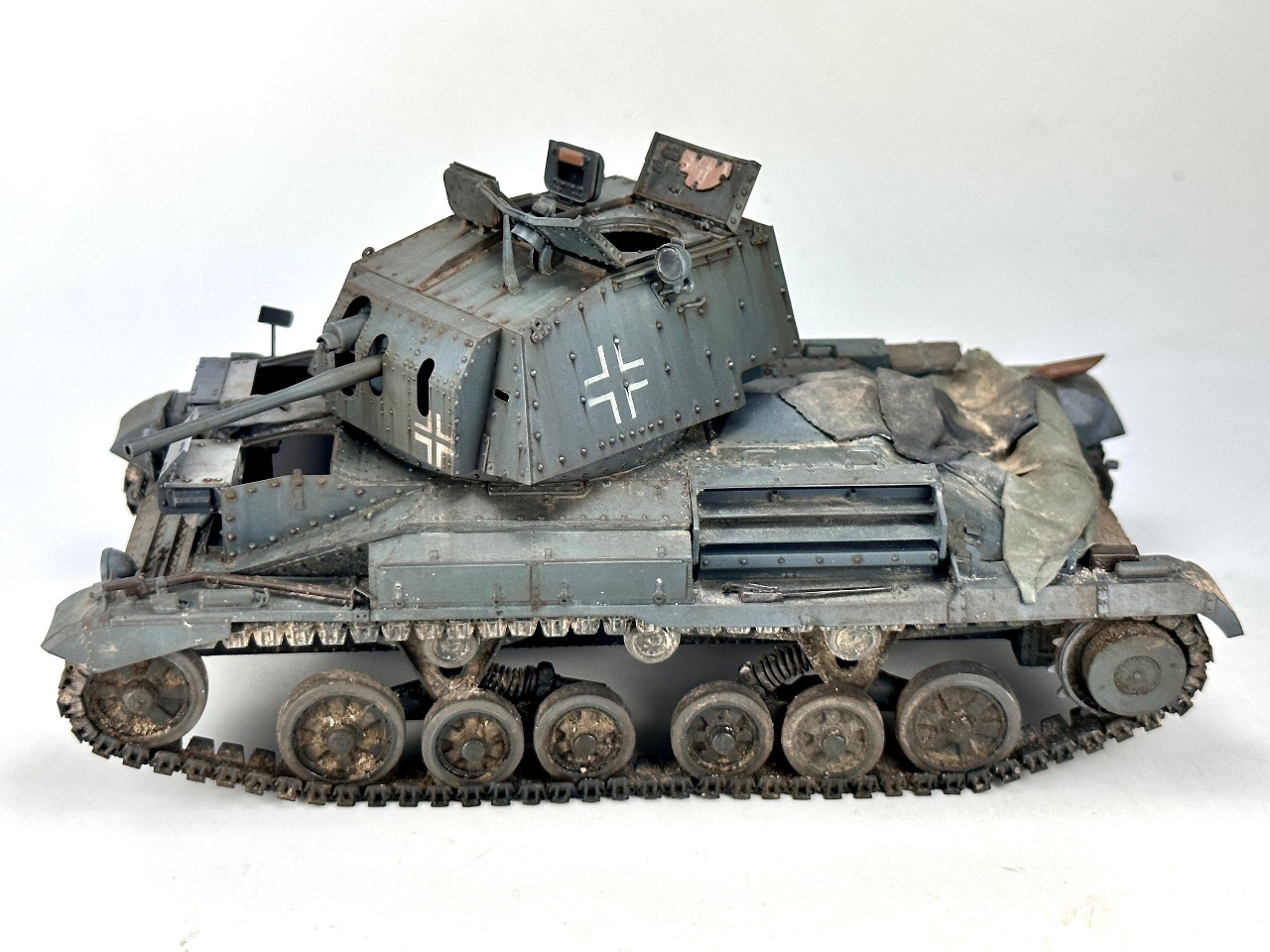 군제 서패이서 마호가니를 올려준 뒤, 타미야 아크릴 field blue를 올려주고 약간의 하이라이팅 뒤에 바로 웨더링을 하여 마무리 하였습니다 박스아트의 컨셉을 살리려 노력했는데 나름 괜찮은거 같네요